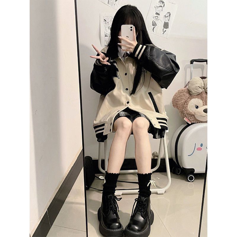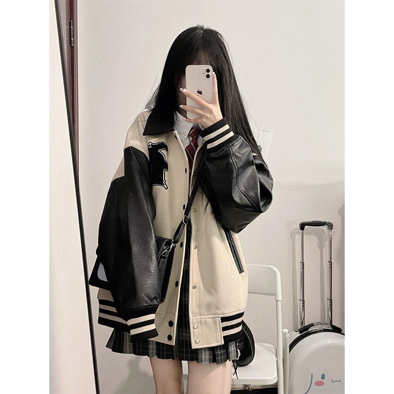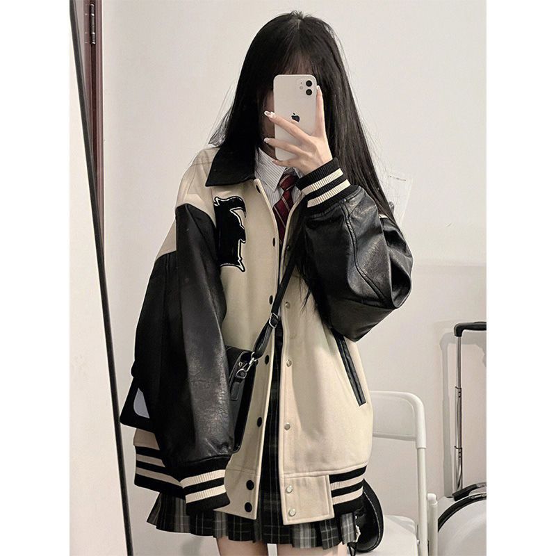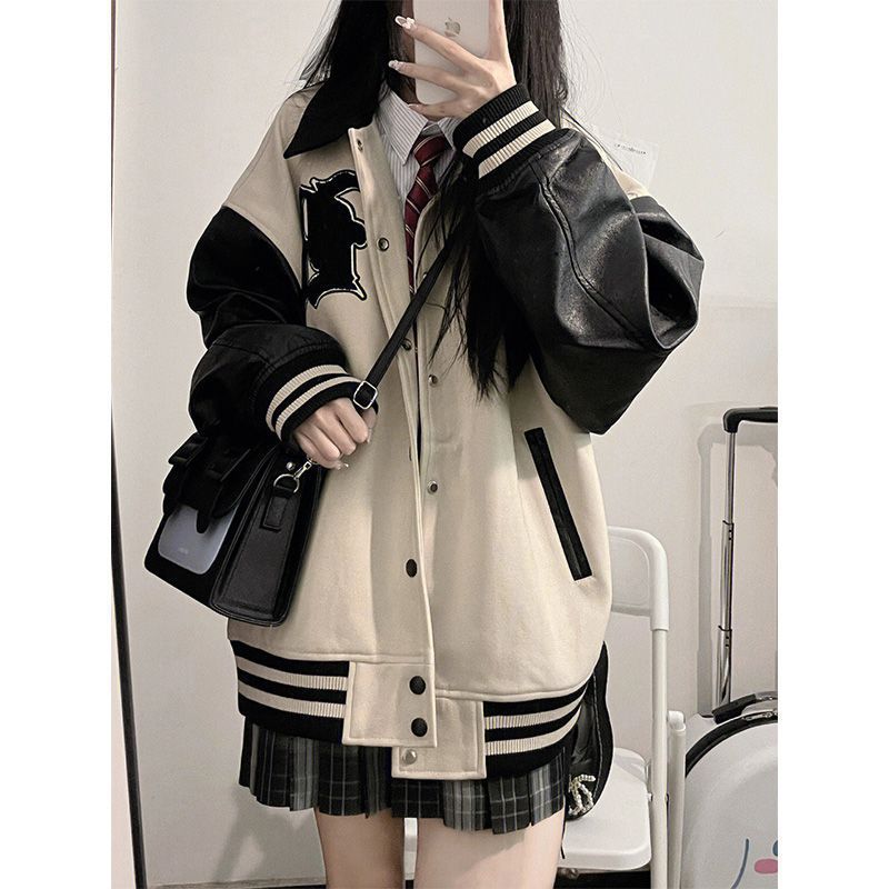 야구 세트 소녀 이른 봄과 가을 2023 새로운 중학교 고등학교 학생 미국 느슨한 캐주얼 조커 재킷스토어 가기