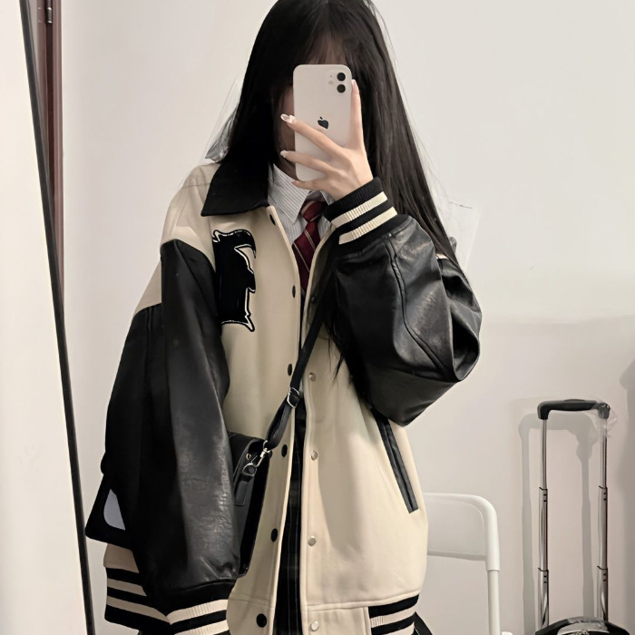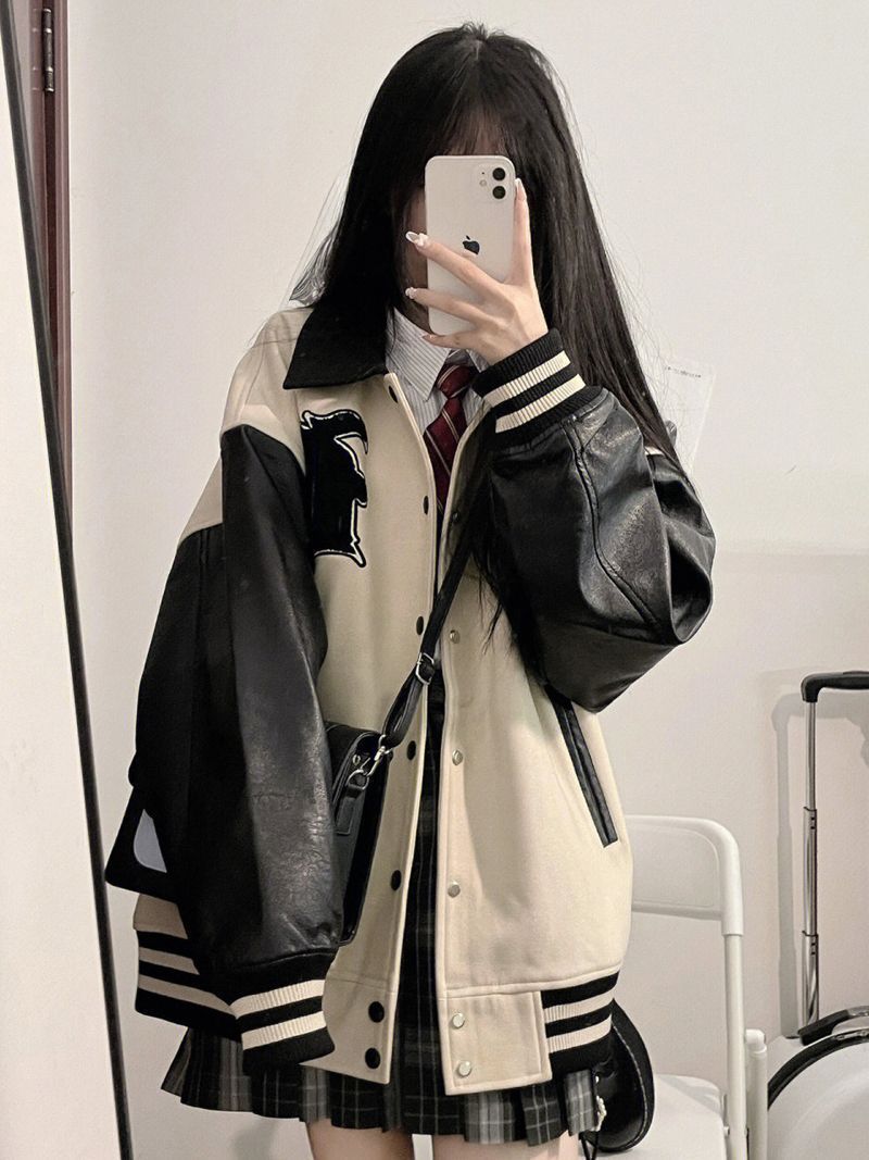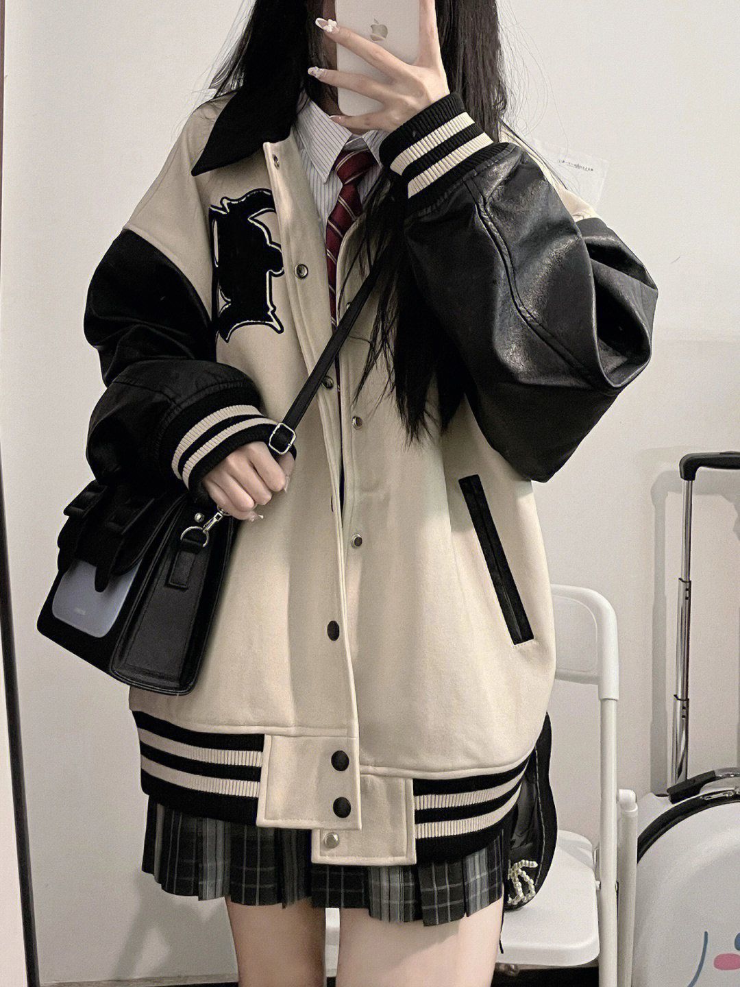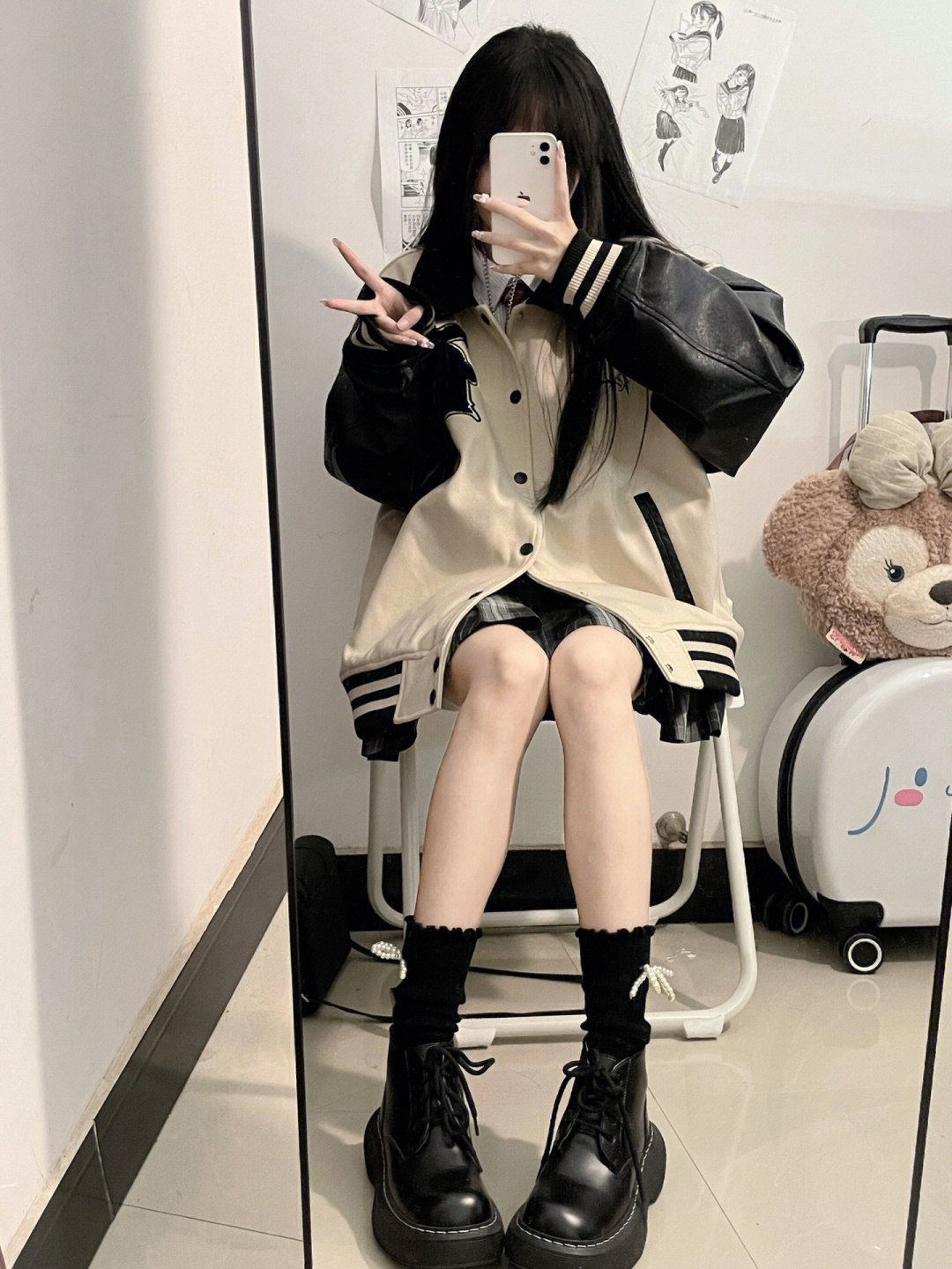 야구 세트 소녀 이른 봄과 가을 2023 새로운 중학교 고등학교 학생 미국 느슨한 캐주얼 조커 재킷스토어 가기