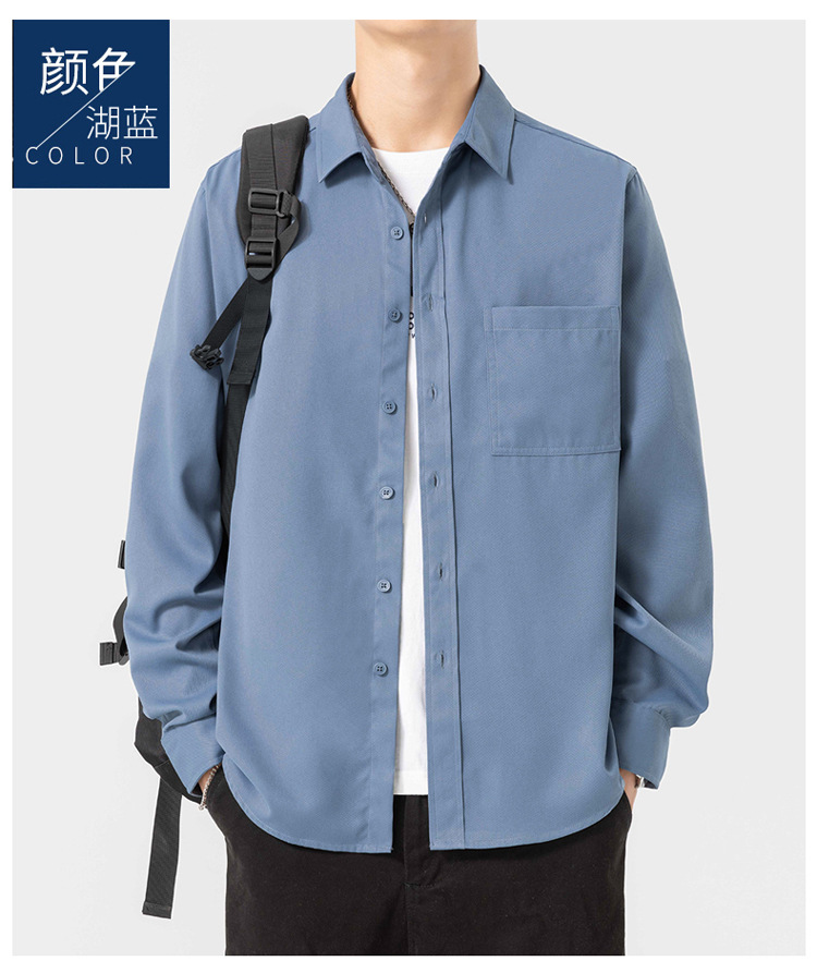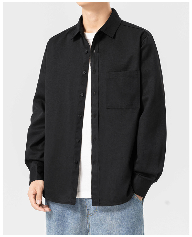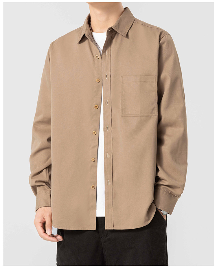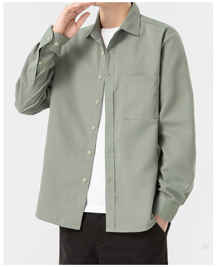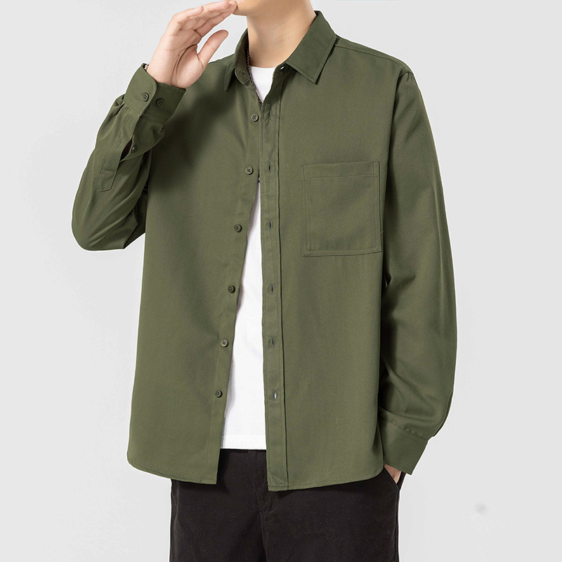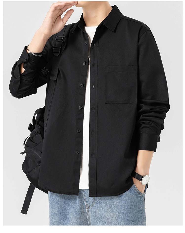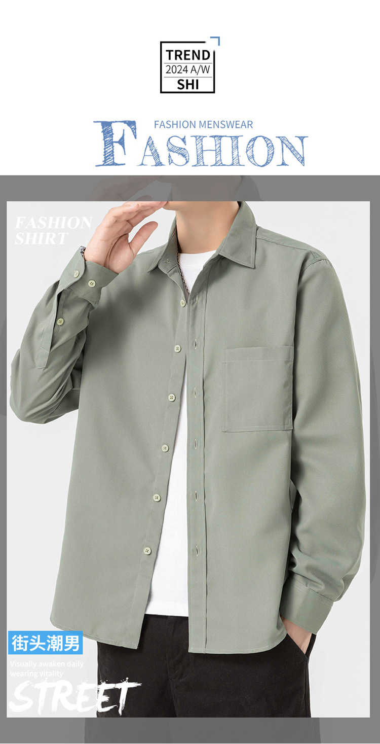 가을 2024 남자 긴팔 셔츠 청소년 캐주얼 솔리드 컬러 느슨한 홍콩 스타일 유행 작업복 셔츠 자켓 남성 의류스토어 가기