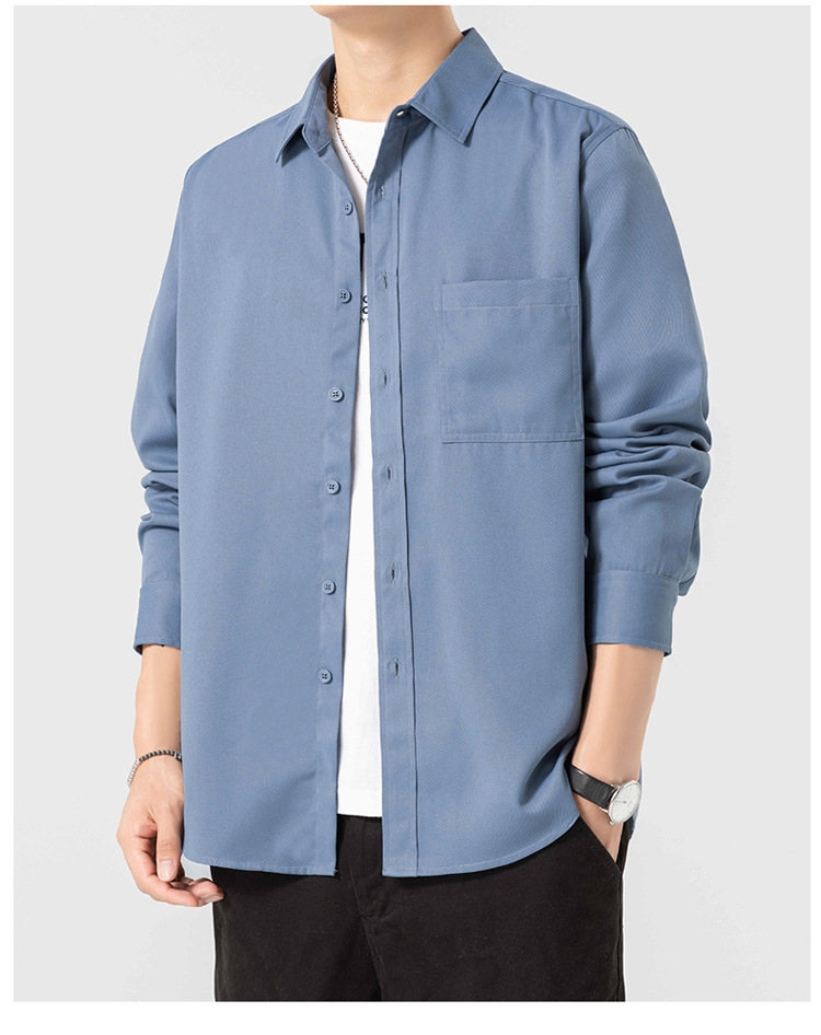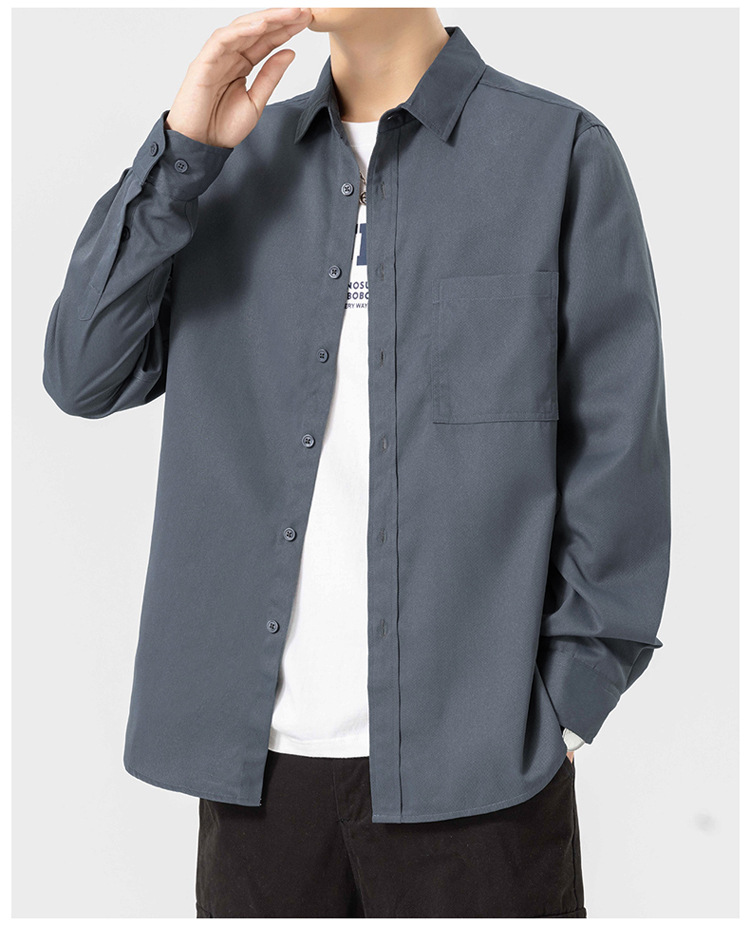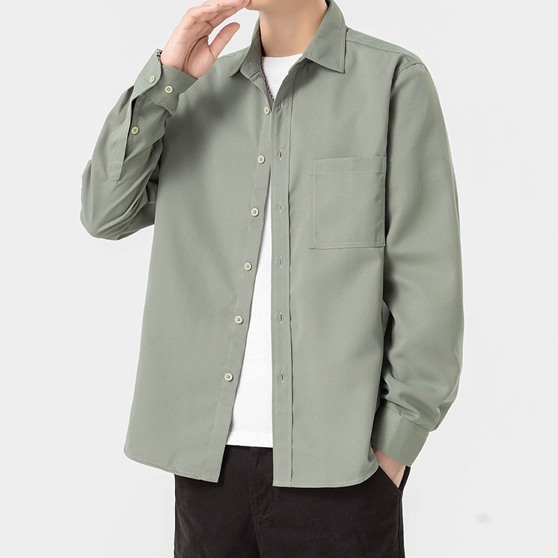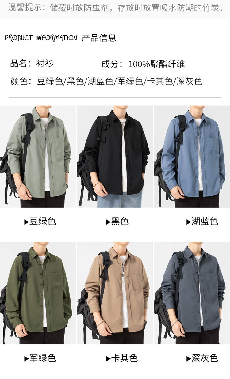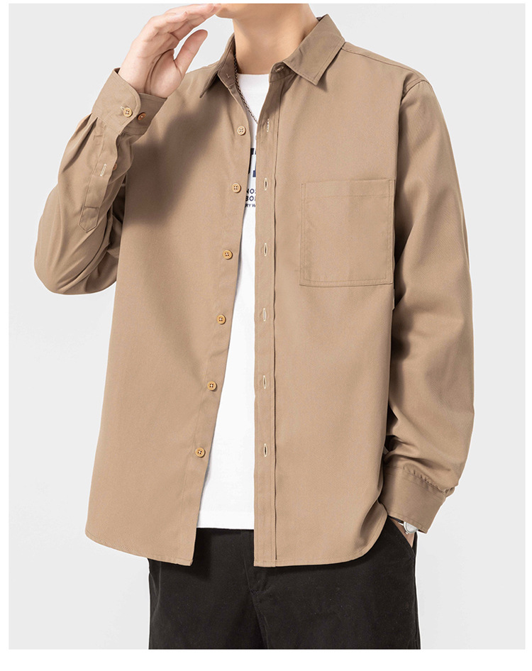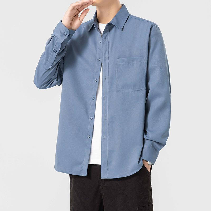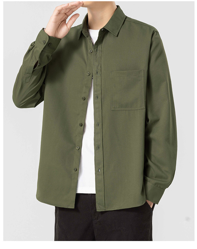 가을 2024 남자 긴팔 셔츠 청소년 캐주얼 솔리드 컬러 느슨한 홍콩 스타일 유행 작업복 셔츠 자켓 남성 의류스토어 가기