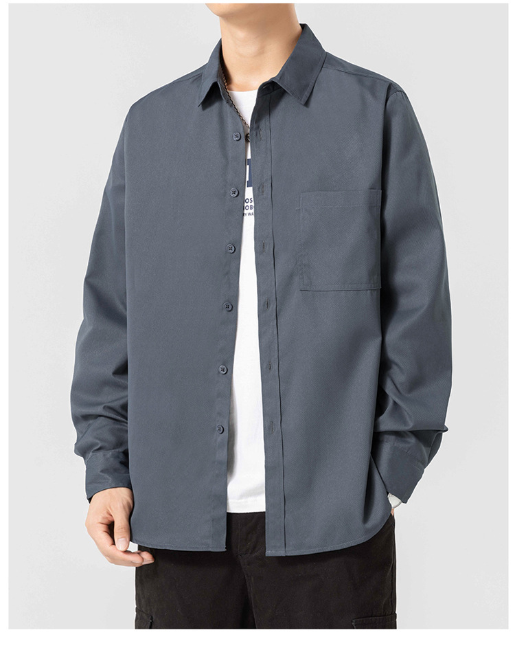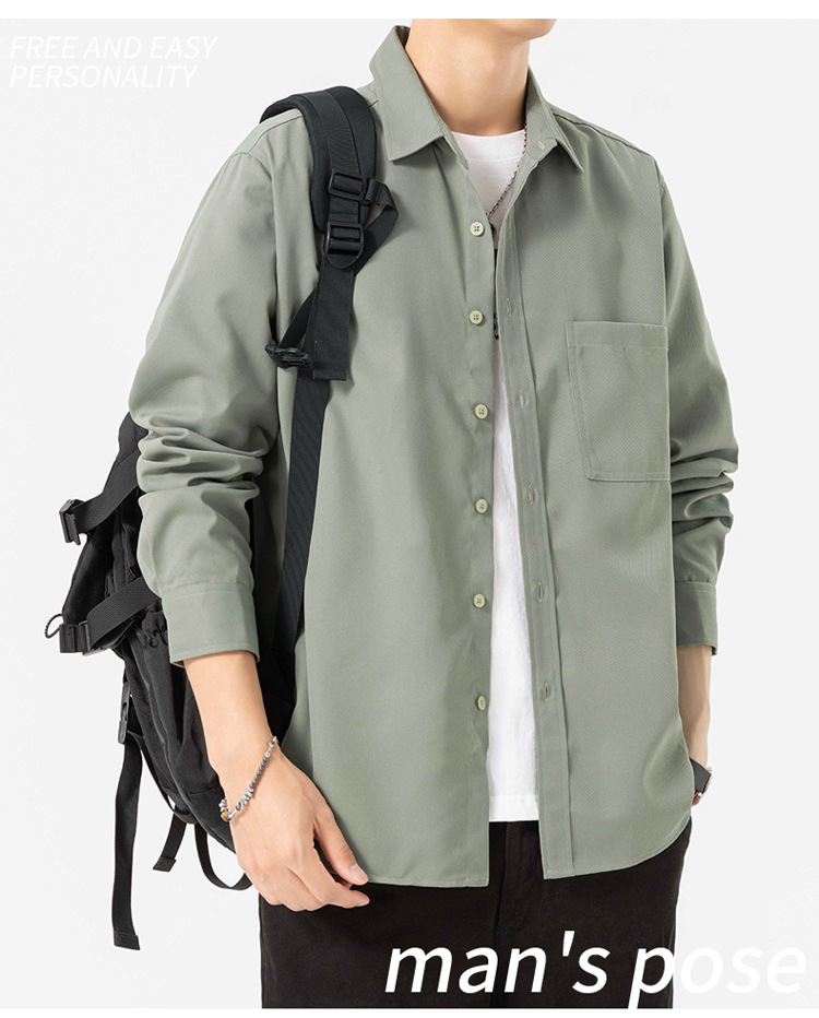 가을 2024 남자 긴팔 셔츠 청소년 캐주얼 솔리드 컬러 느슨한 홍콩 스타일 유행 작업복 셔츠 자켓 남성 의류