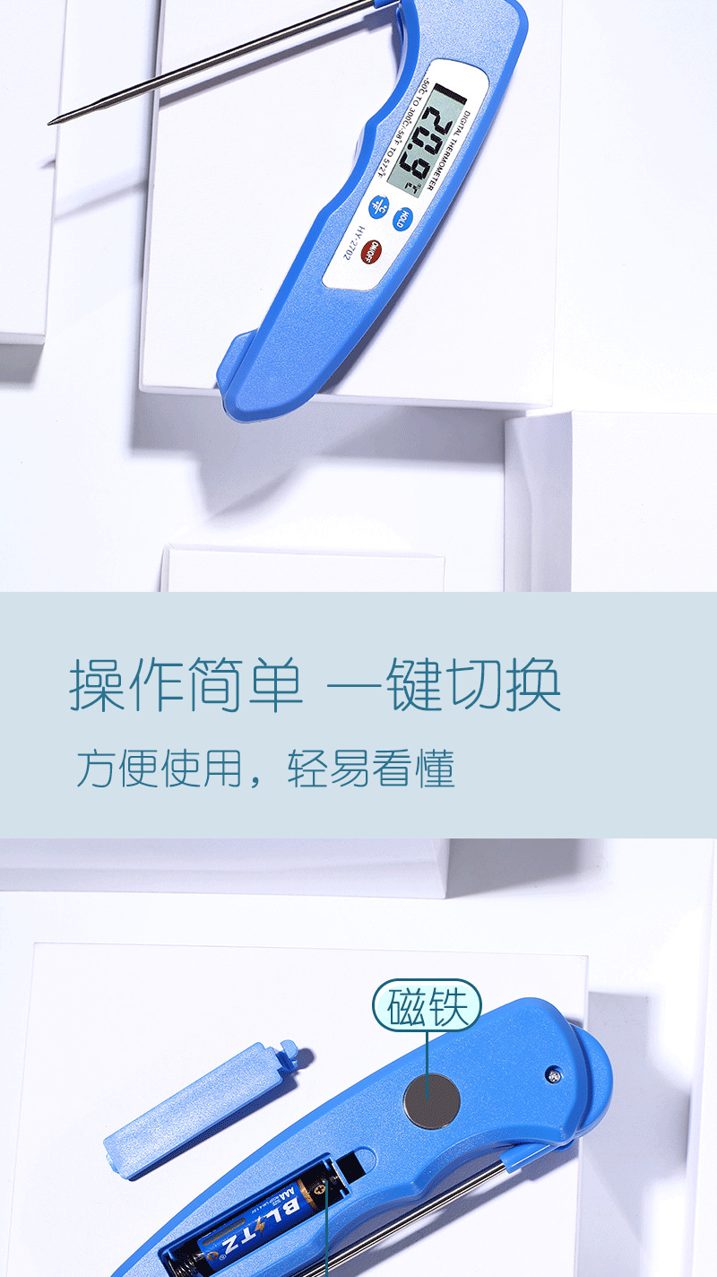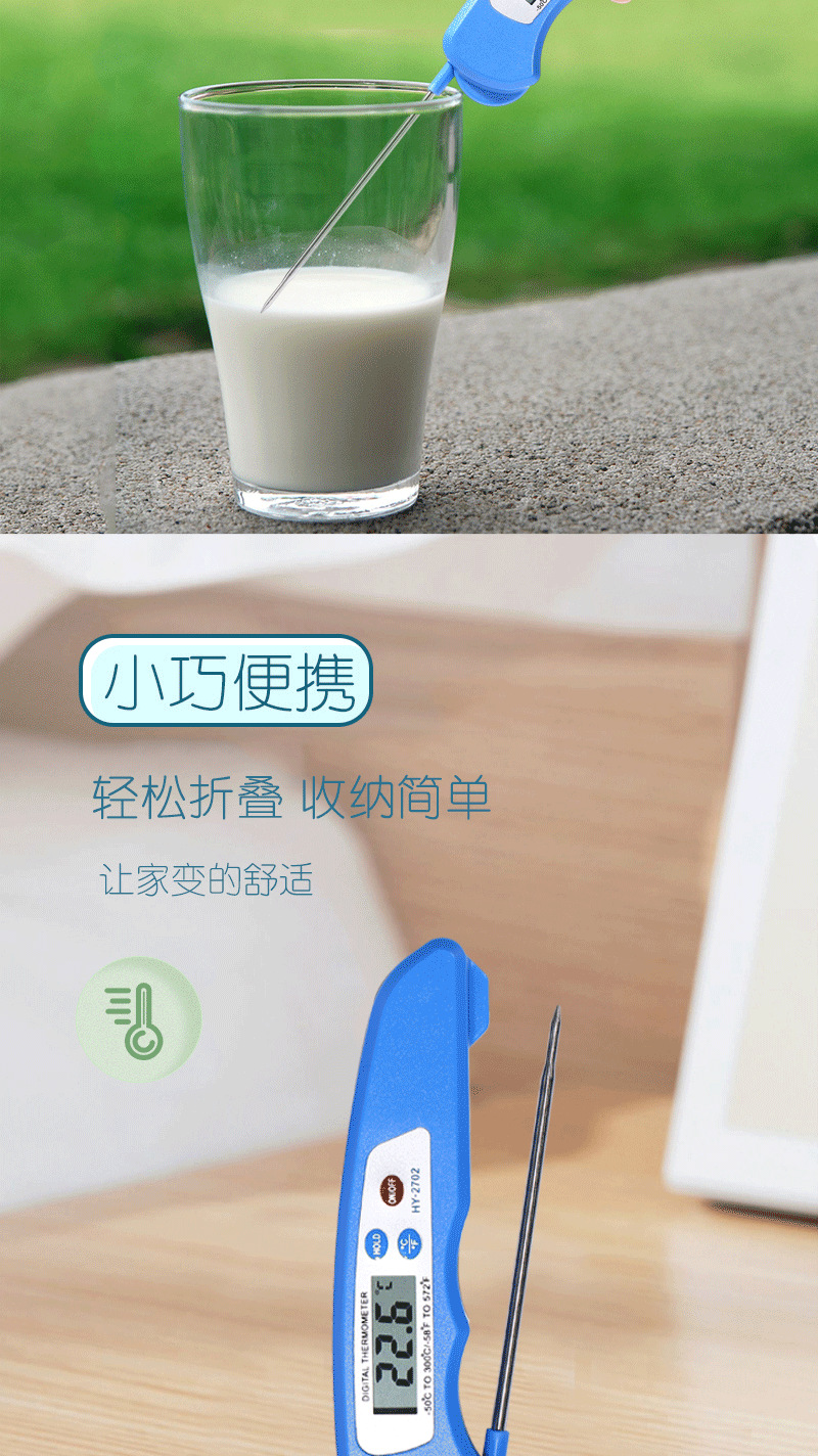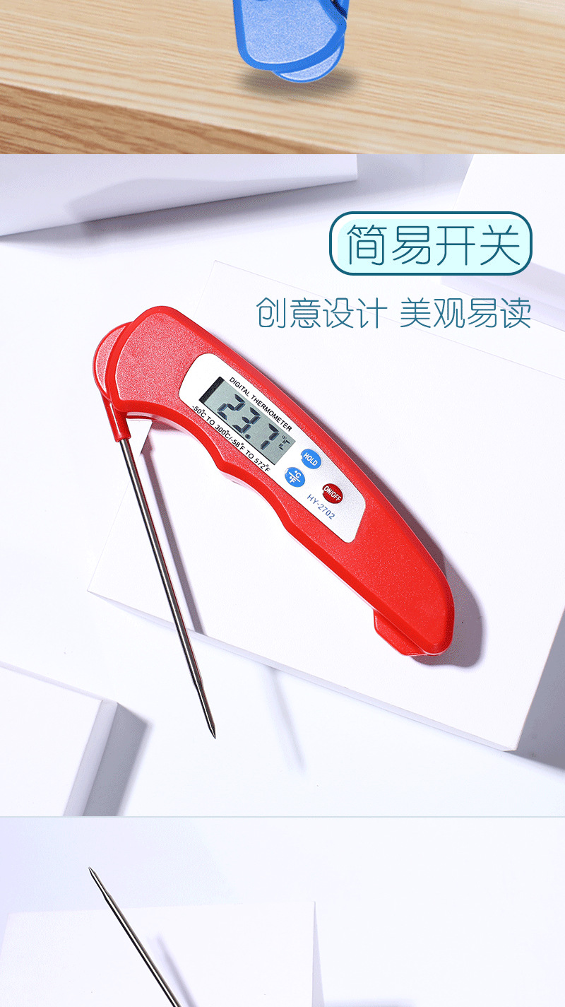 국경 간 온도계 먼지 방지 접이식 식품 온도계 주방 베이킹 오일 온도 우유 바베큐 식품 물 온도계