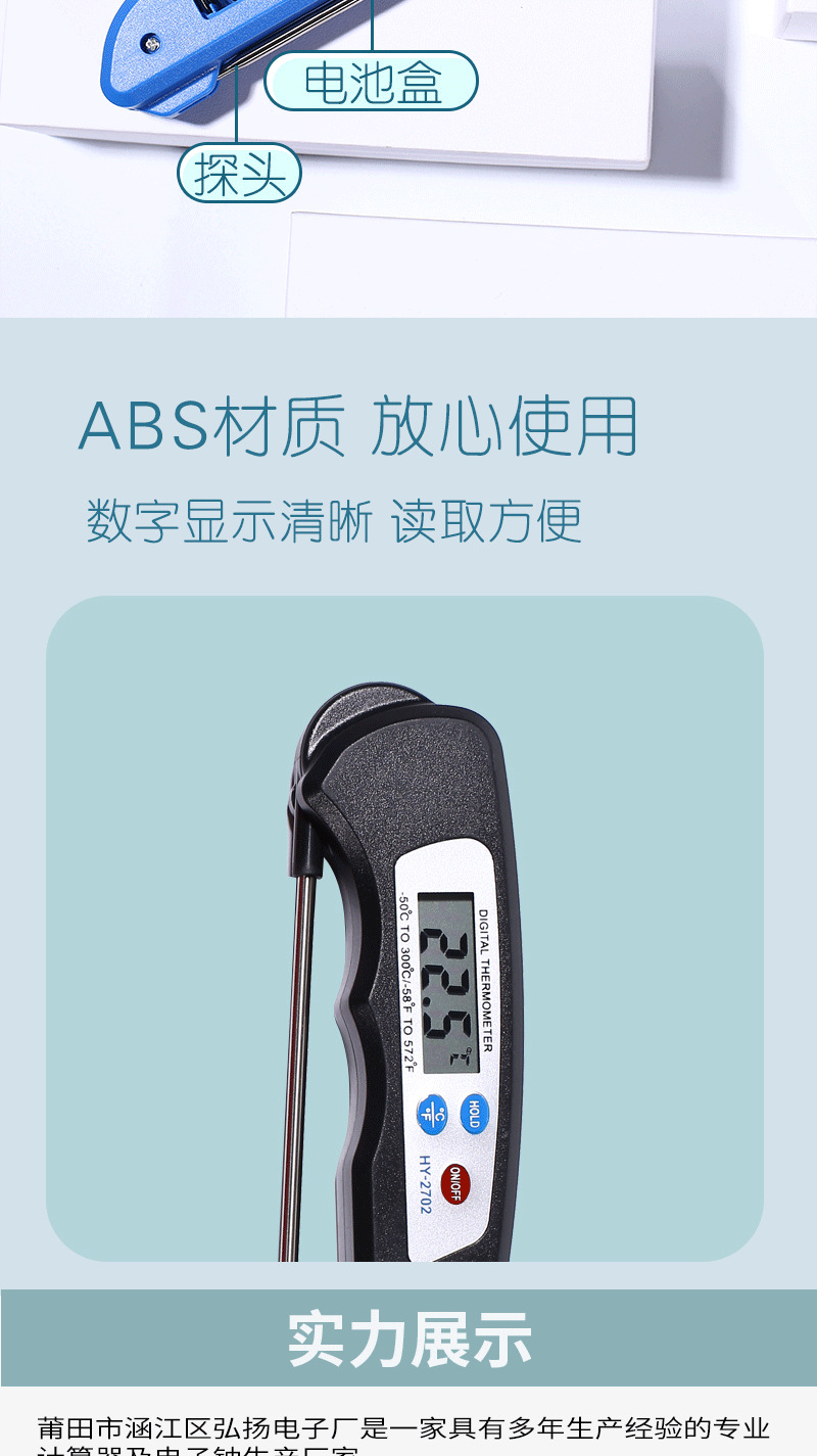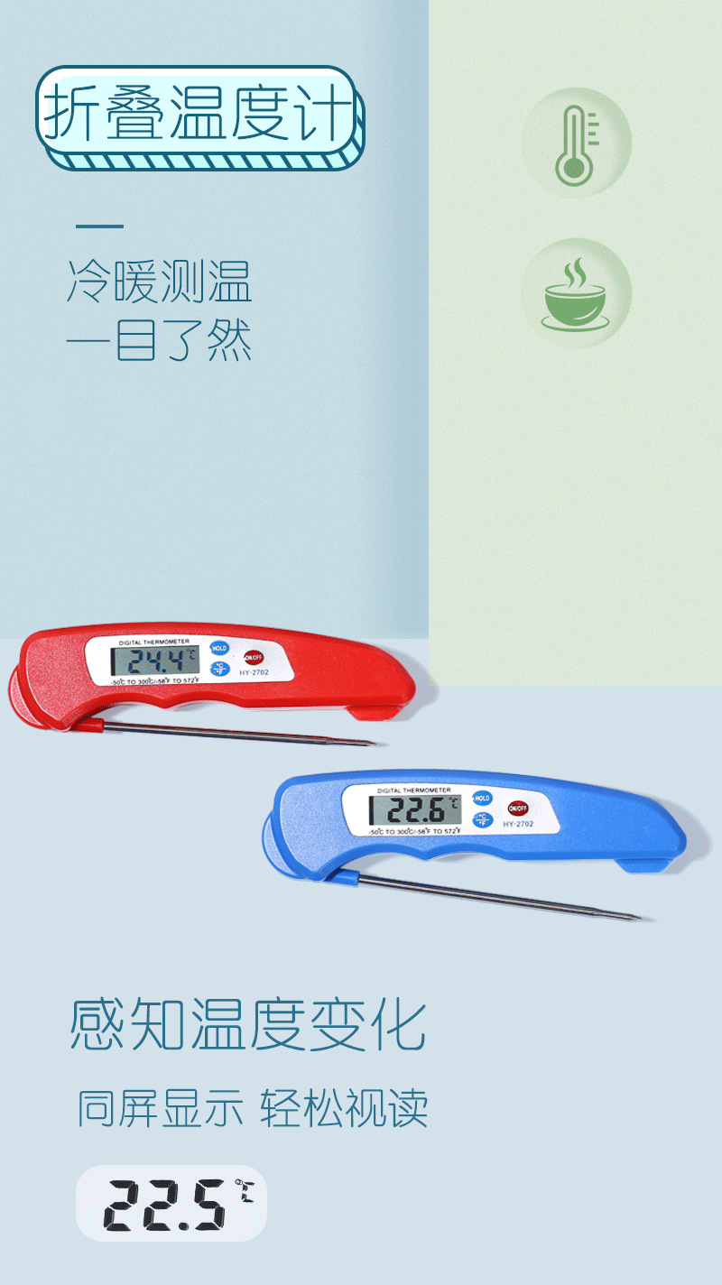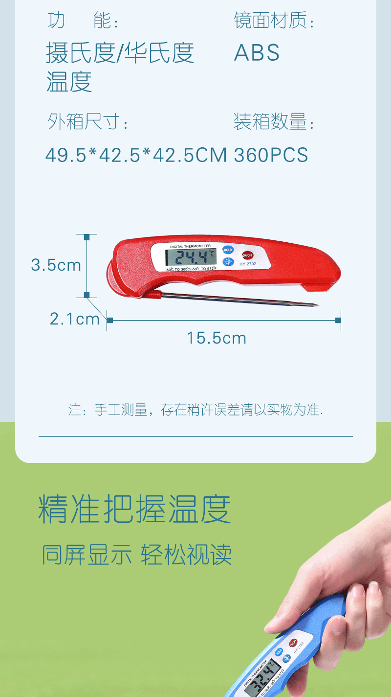 국경 간 온도계 먼지 방지 접이식 식품 온도계 주방 베이킹 오일 온도 우유 바베큐 식품 물 온도계