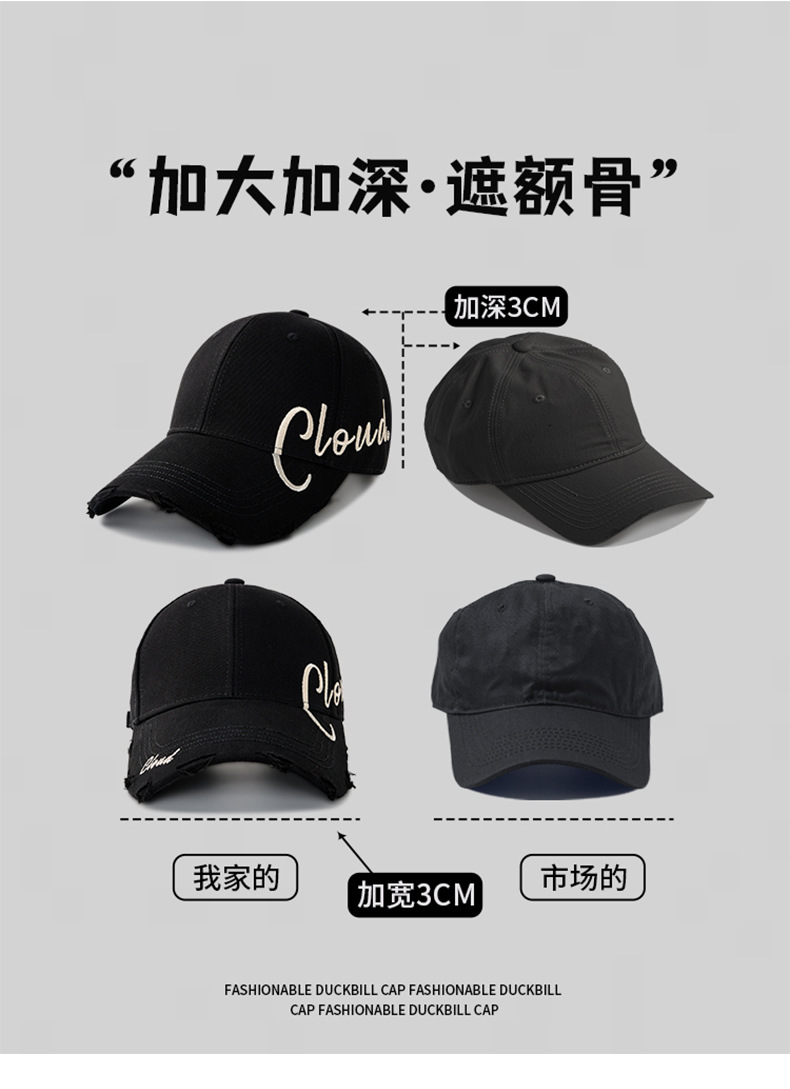 여성용 야구모자, 구멍이 뚫린 다용도 선바이저, 얼굴이 보이는 작은 깊은 탑, 큰 머리 둘레, 자수 자외선 차단 챙 모자, 남성용 한국식스토어 가기