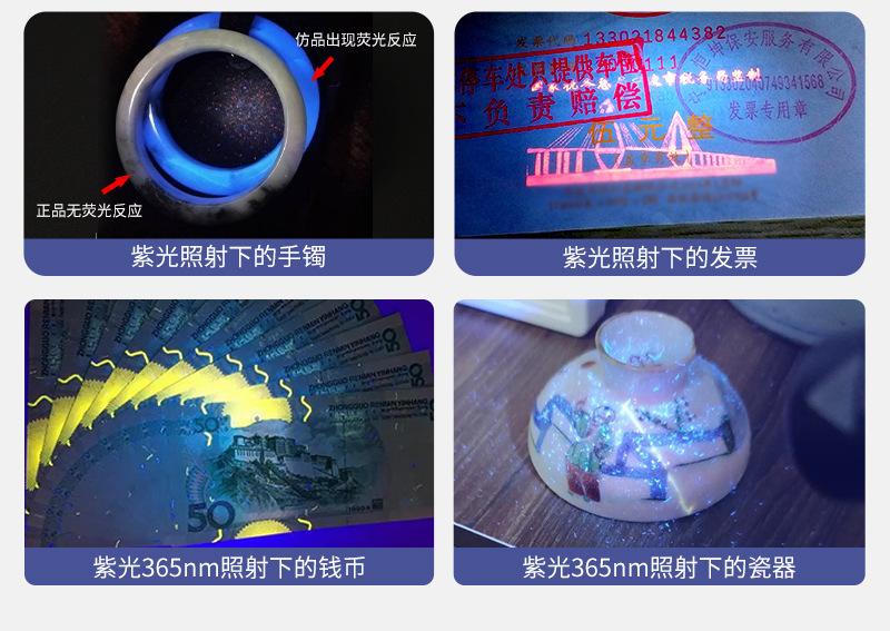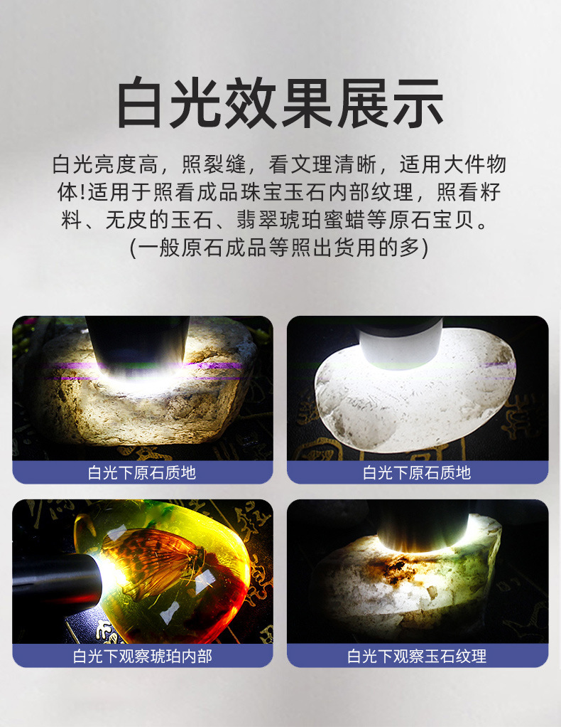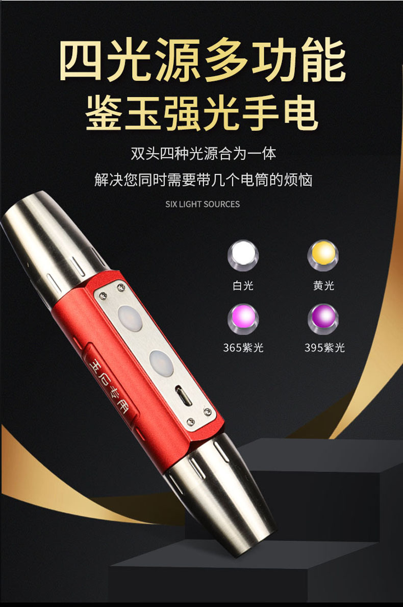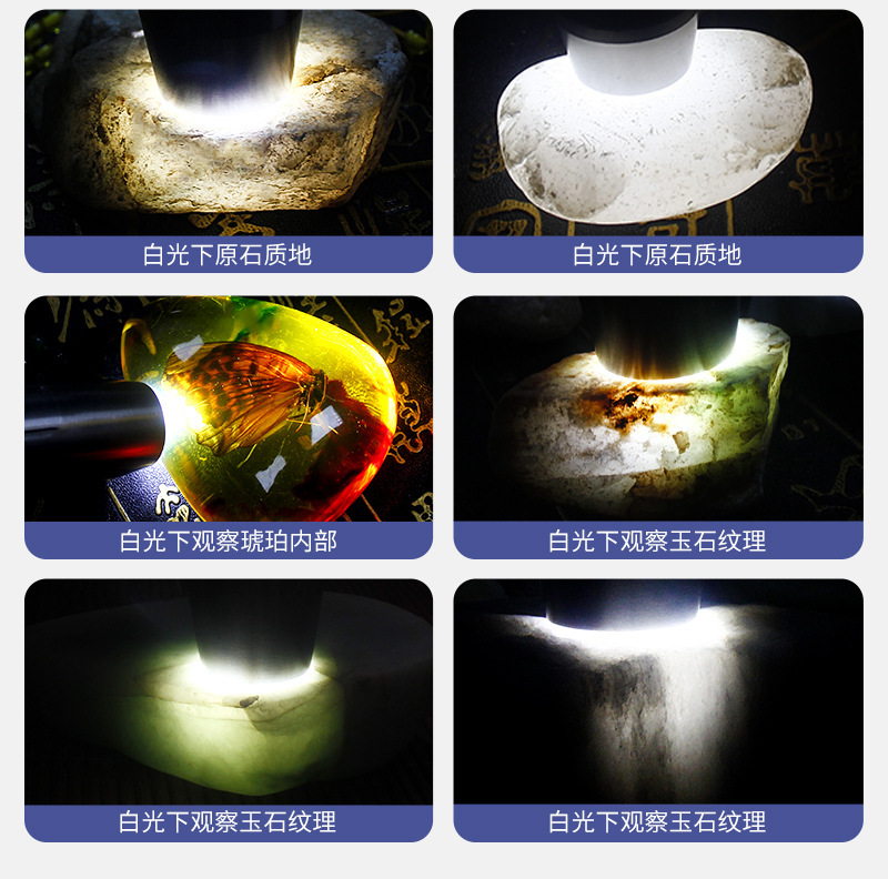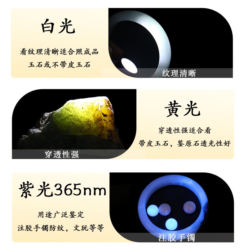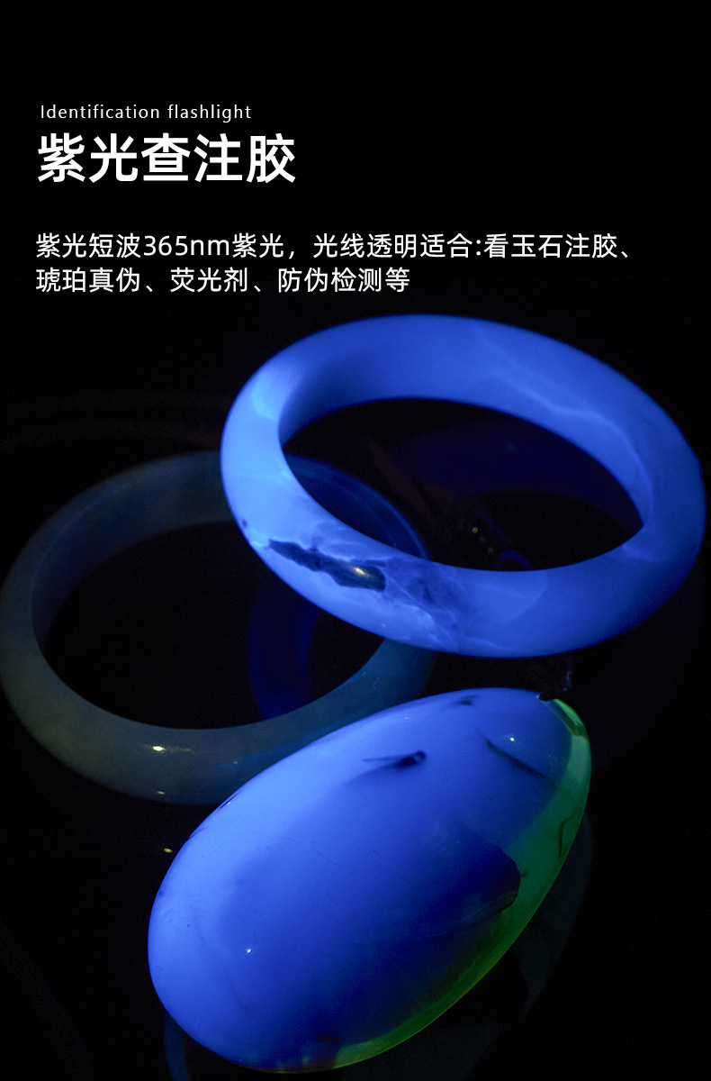 옥 특별 한 식별 강한 빛 손전등 옥에 따르면 옥 작은 구경 형광 검출 365nm 보라색 빛 램프 보기