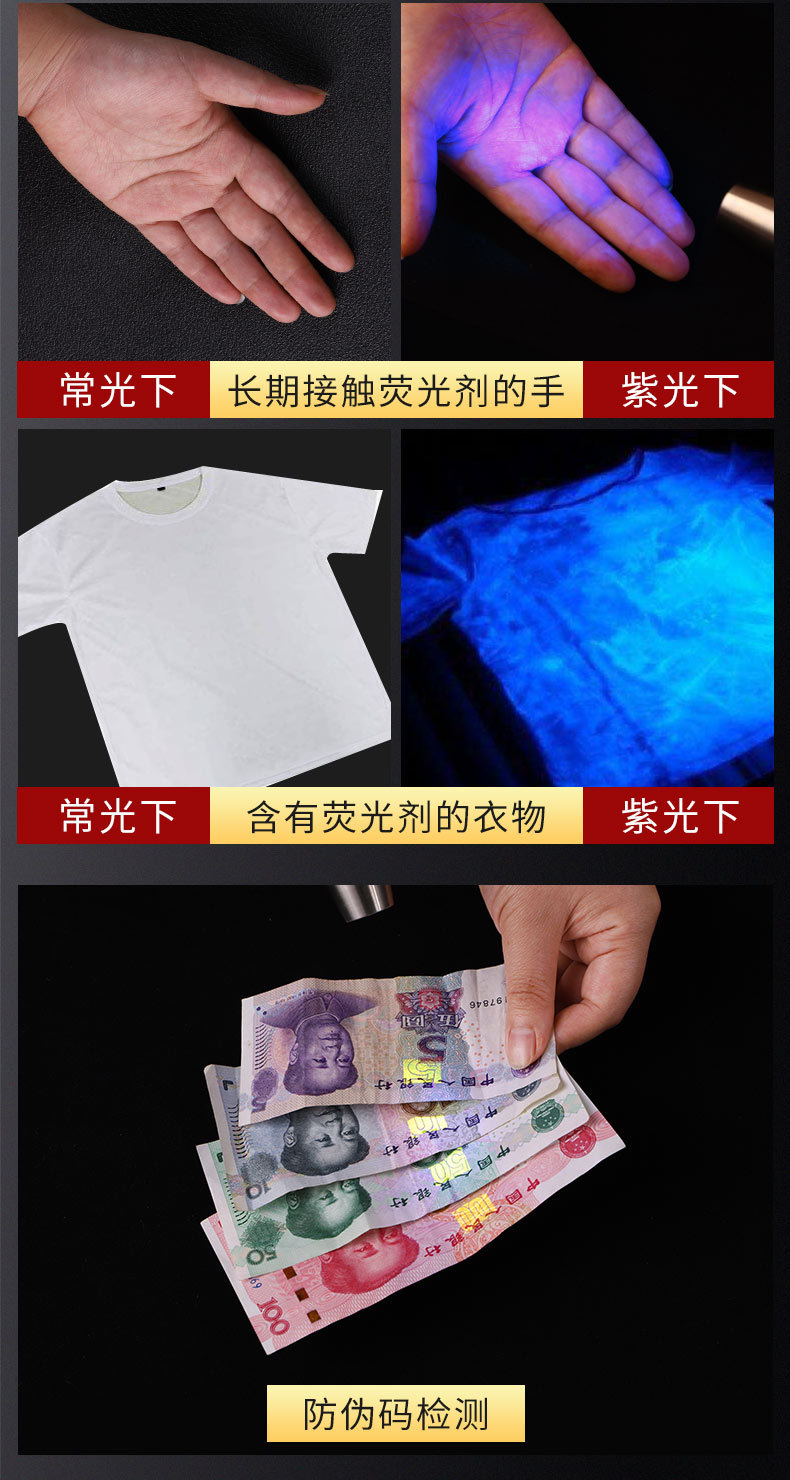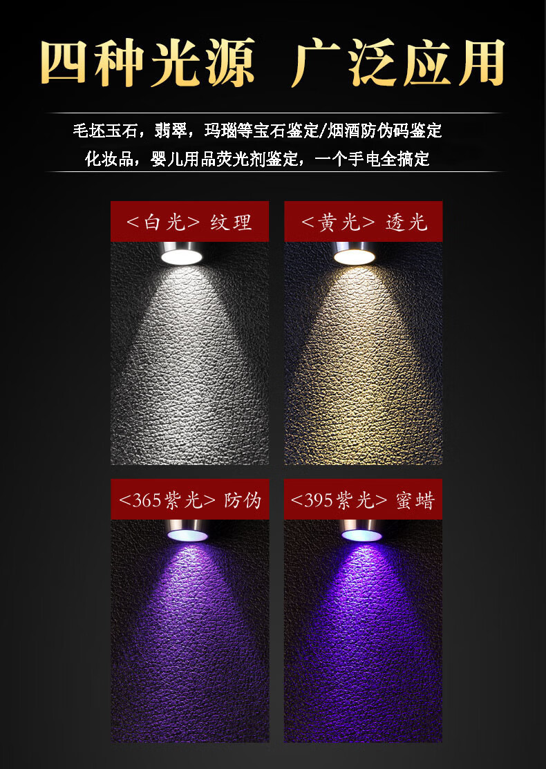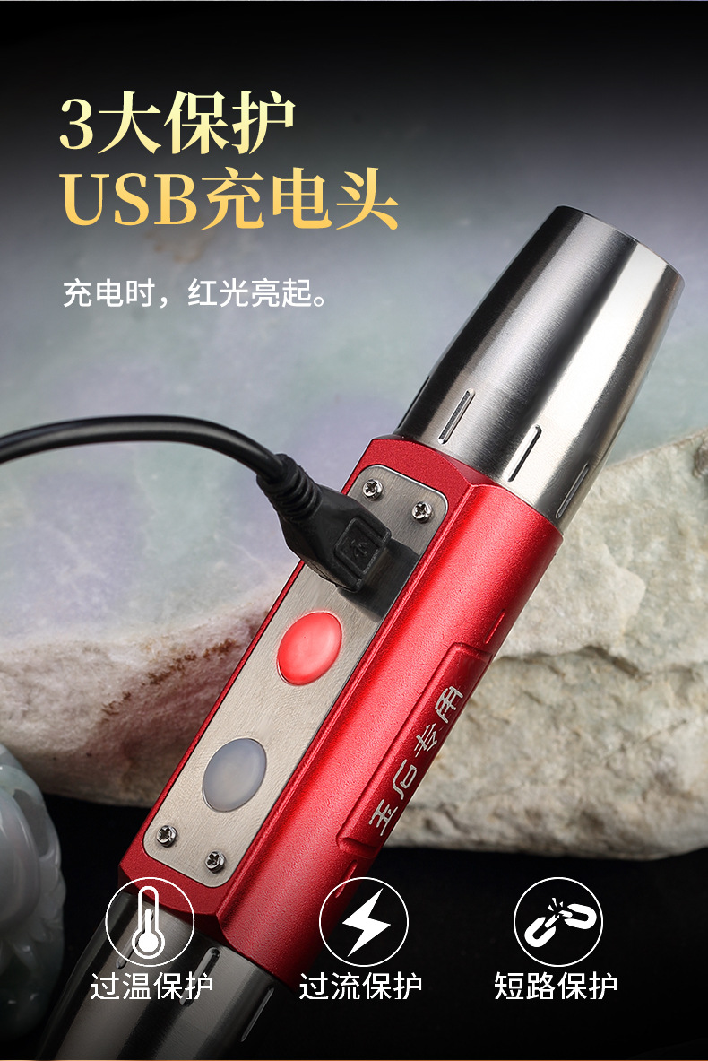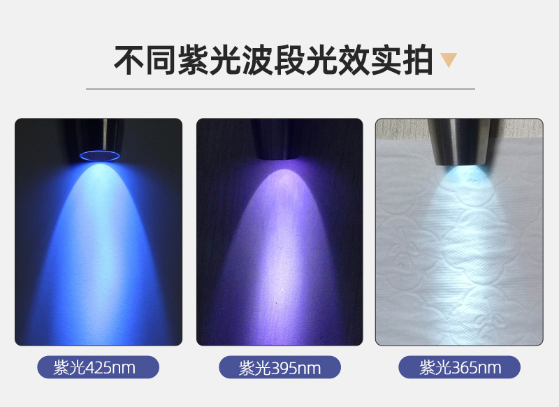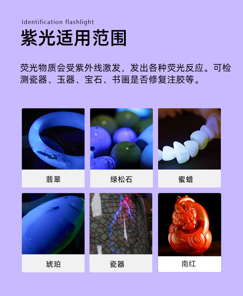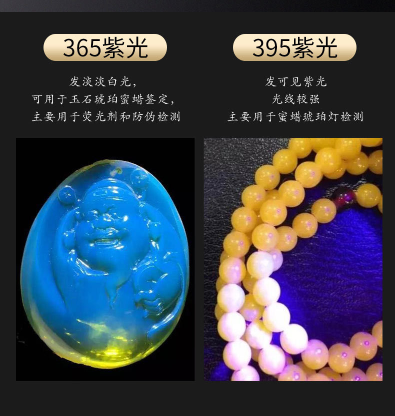 옥 특별 한 식별 강한 빛 손전등 옥에 따르면 옥 작은 구경 형광 검출 365nm 보라색 빛 램프 보기