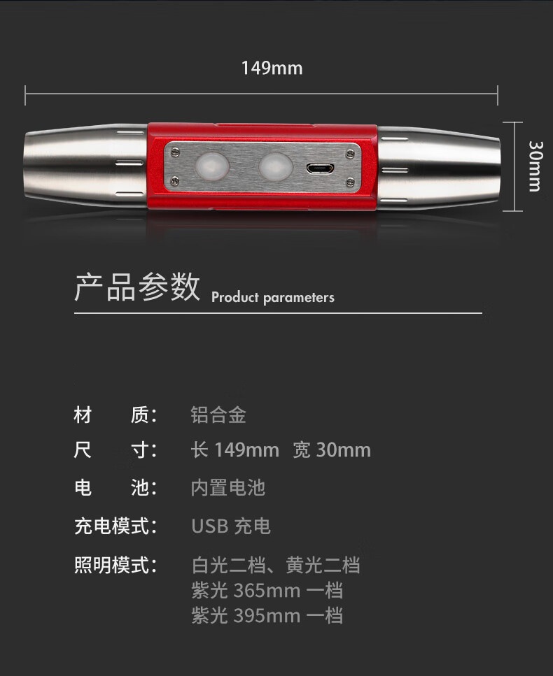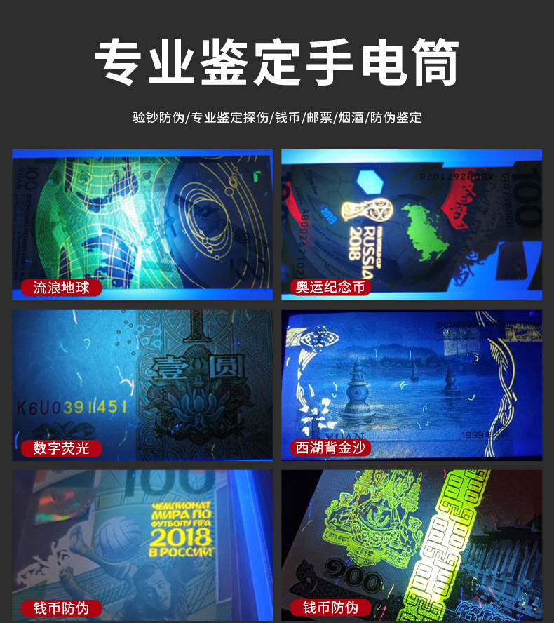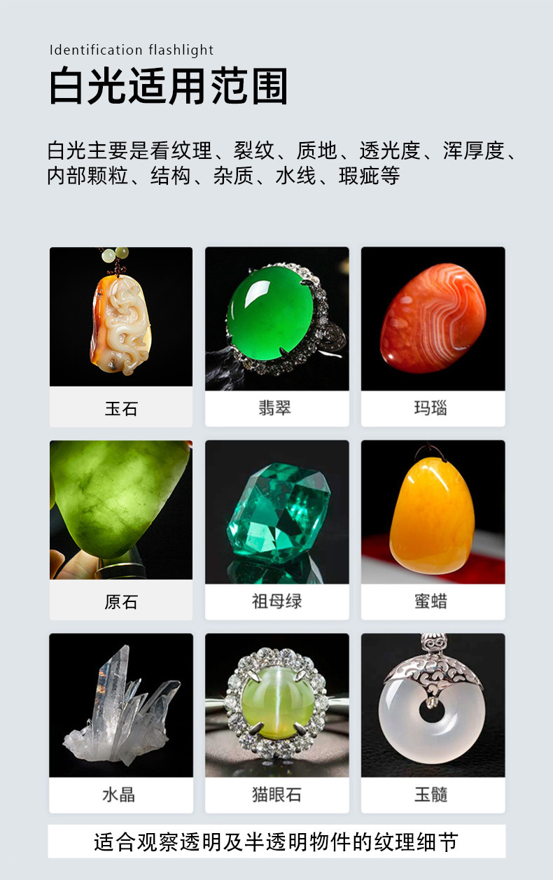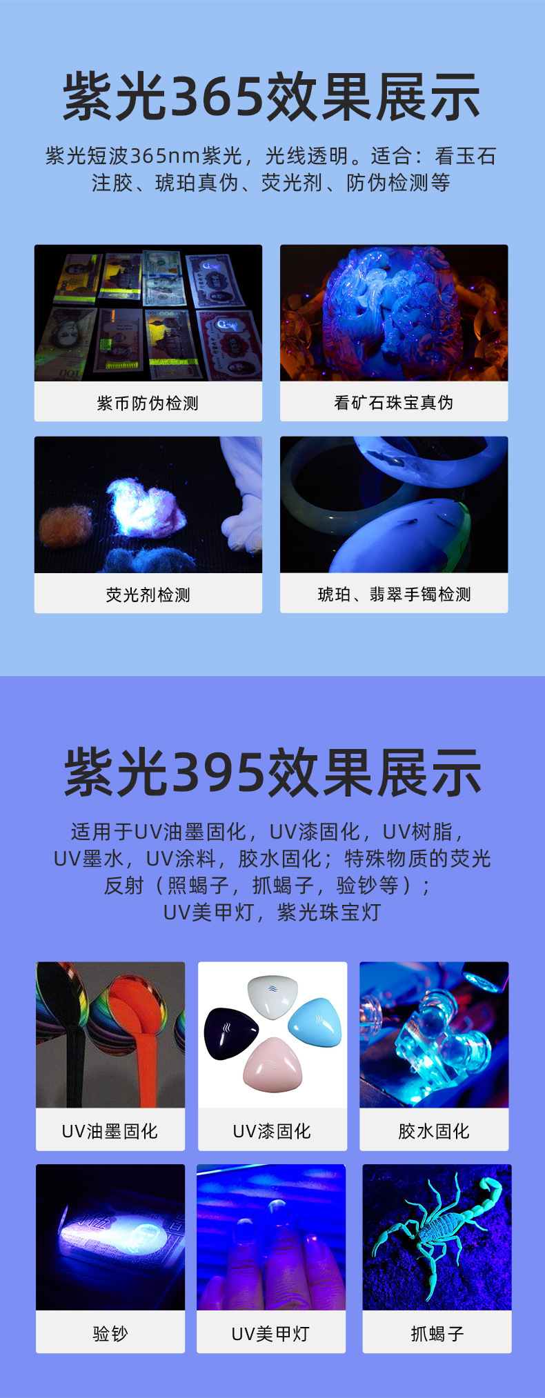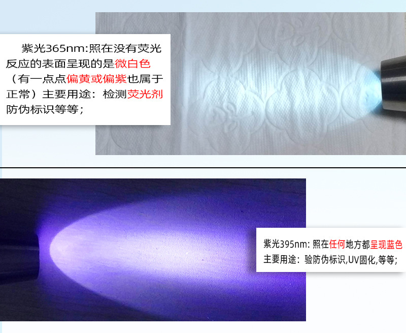옥 특별 한 식별 강한 빛 손전등 옥에 따르면 옥 작은 구경 형광 검출 365nm 보라색 빛 램프 보기