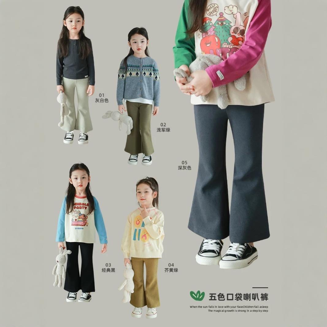 2025 가을 신상 여아 슬림핏 플레어 팬츠, 가을 아동용 귀엽고 부드러운 다용도 캐주얼 팬츠스토어 가기