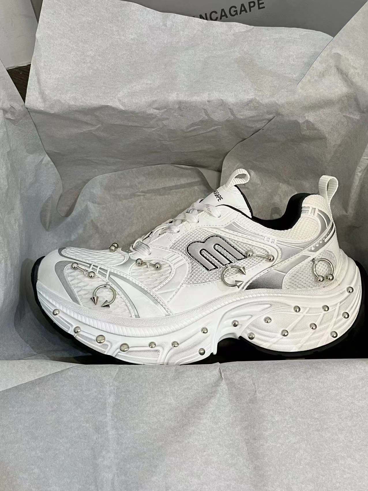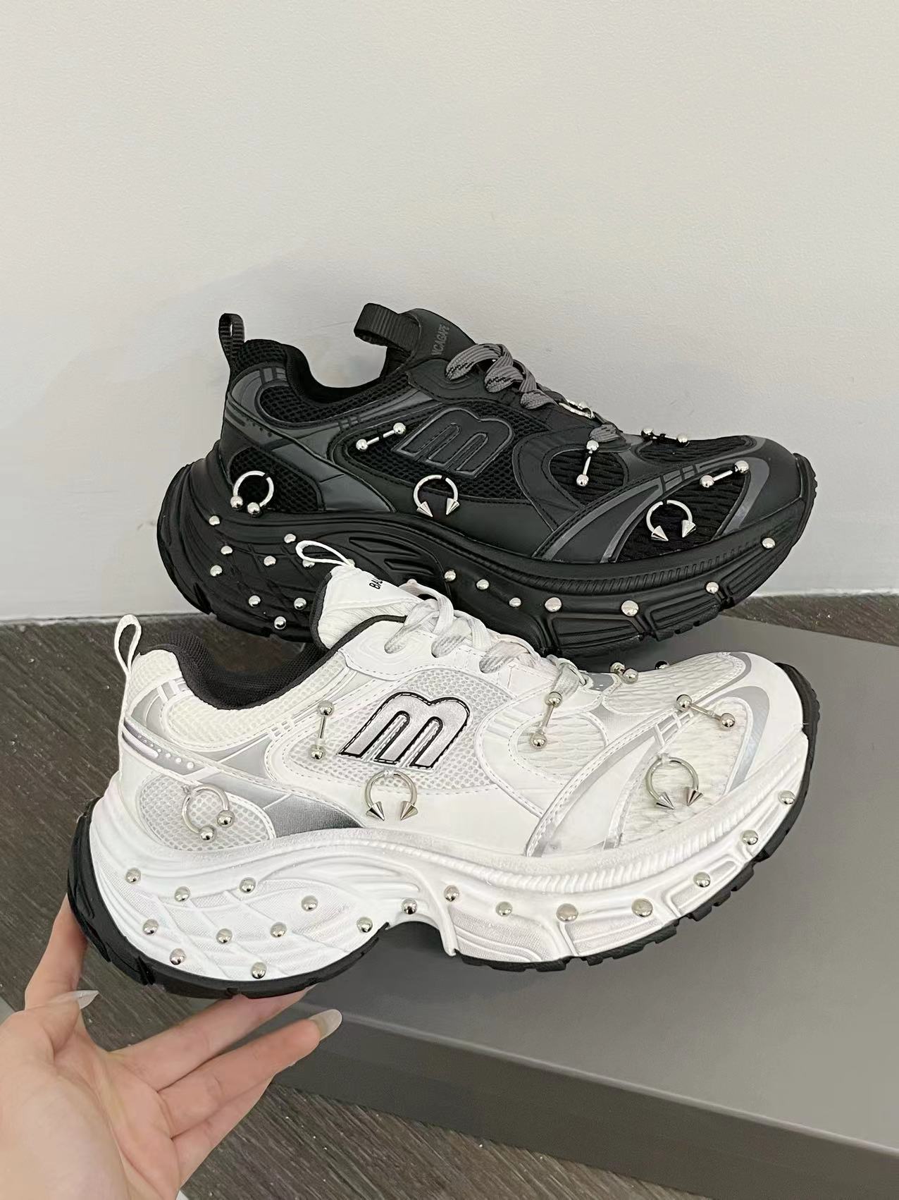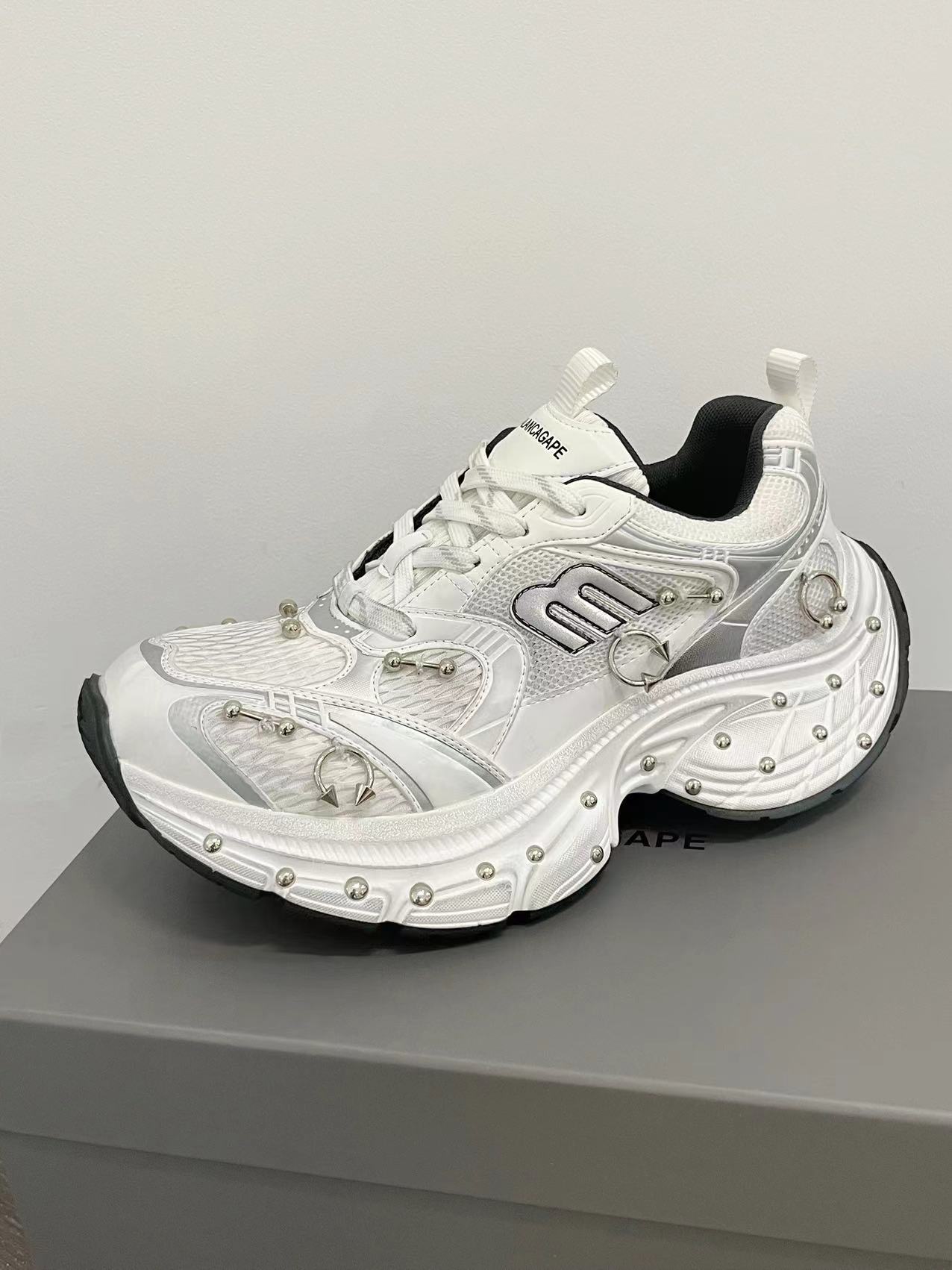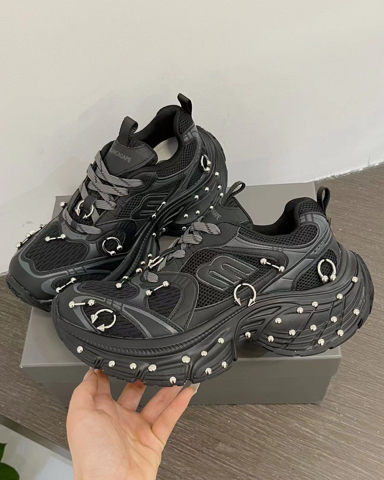 2025 봄 10XL 아빠 신발 리벳 여성 Catwalk 스타일 다목적 두꺼운 밑창 높이 증가 커플 캐주얼 스포츠 신발 복고풍