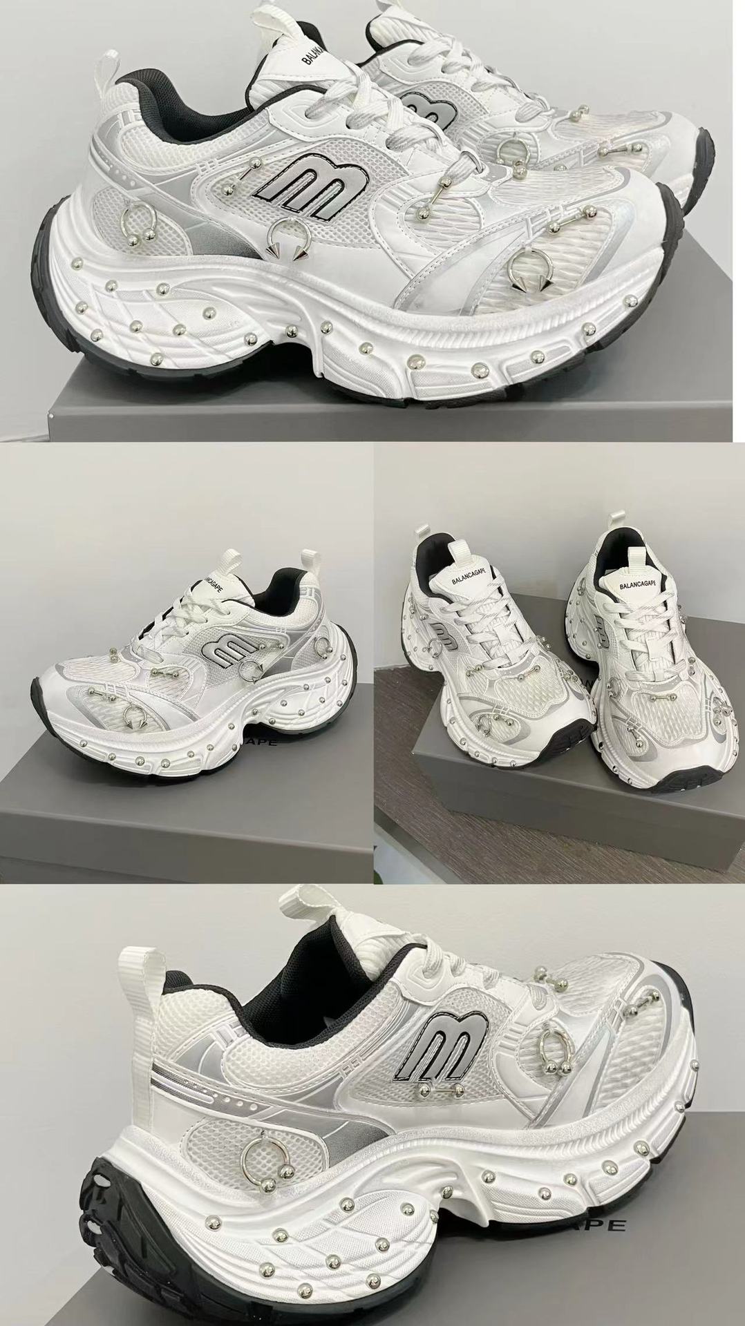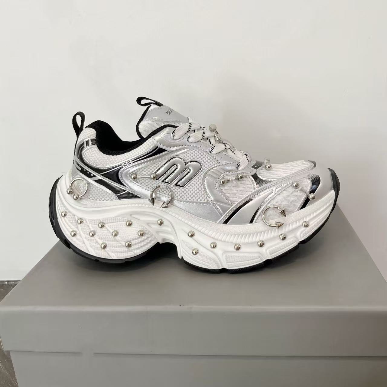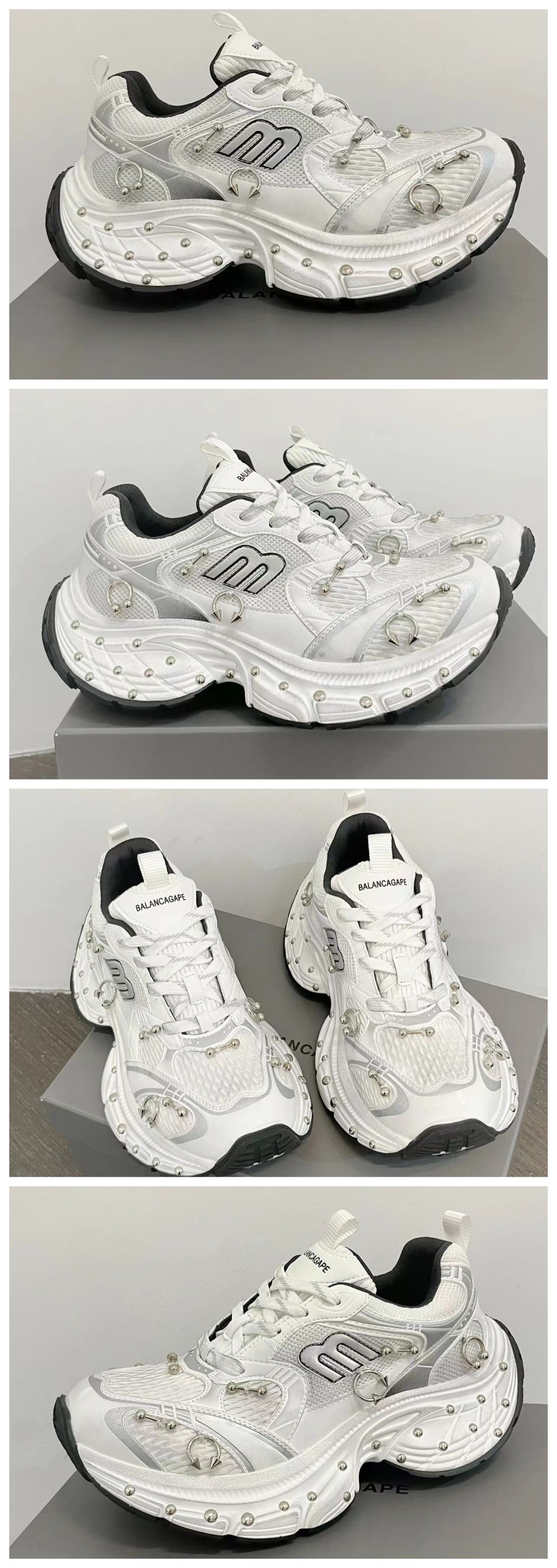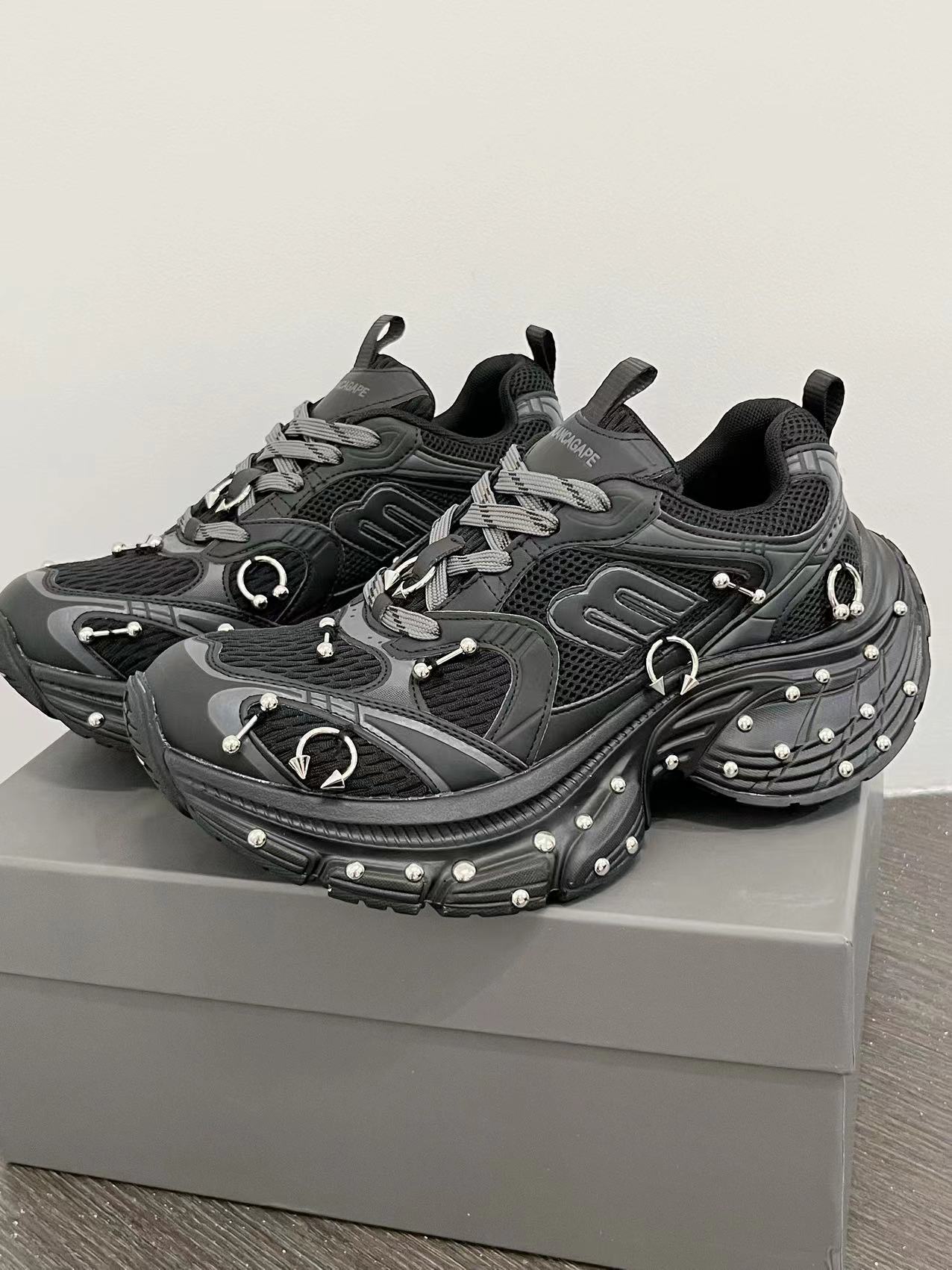 2025 봄 10XL 아빠 신발 리벳 여성 Catwalk 스타일 다목적 두꺼운 밑창 높이 증가 커플 캐주얼 스포츠 신발 복고풍