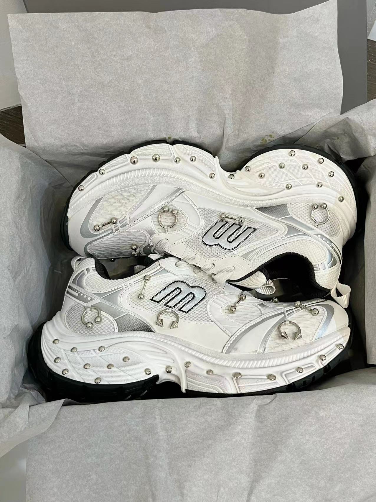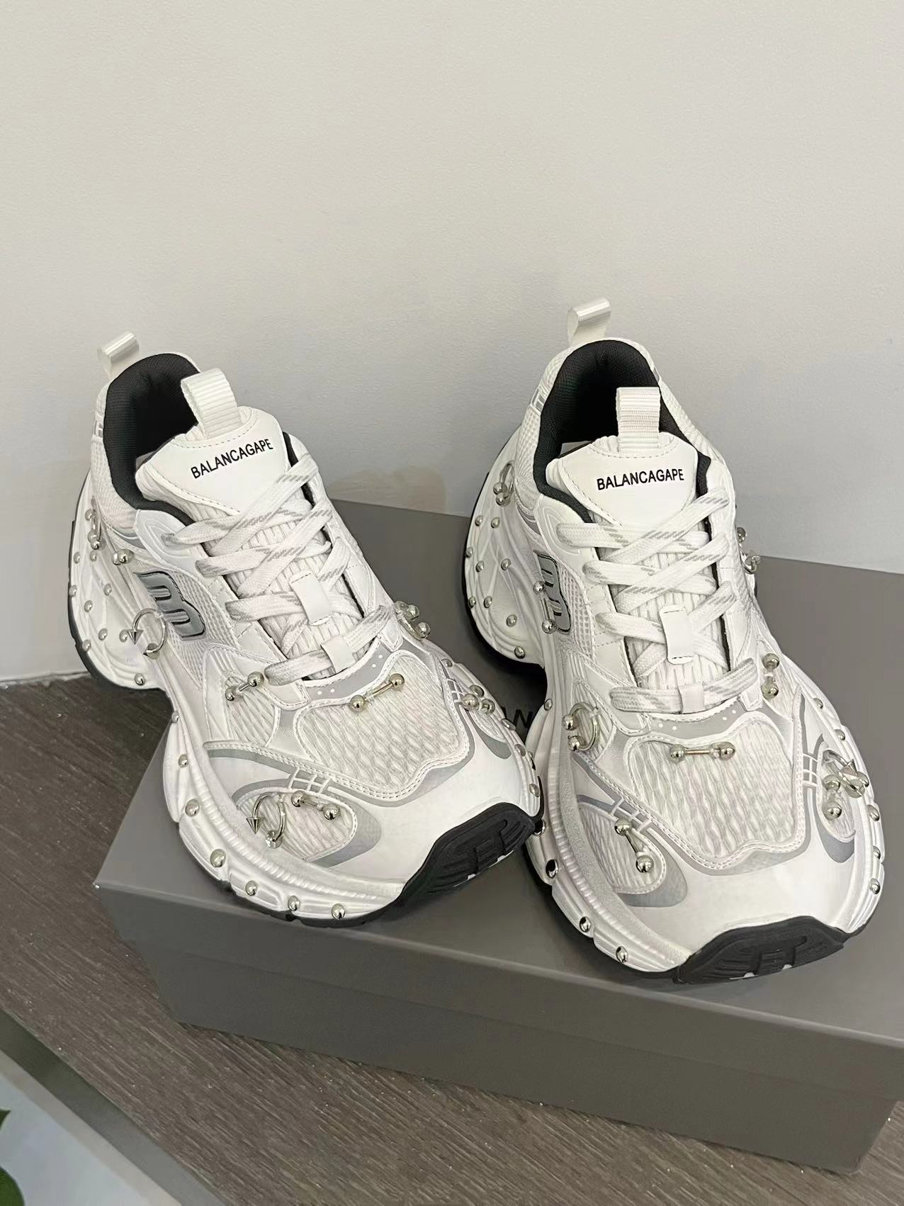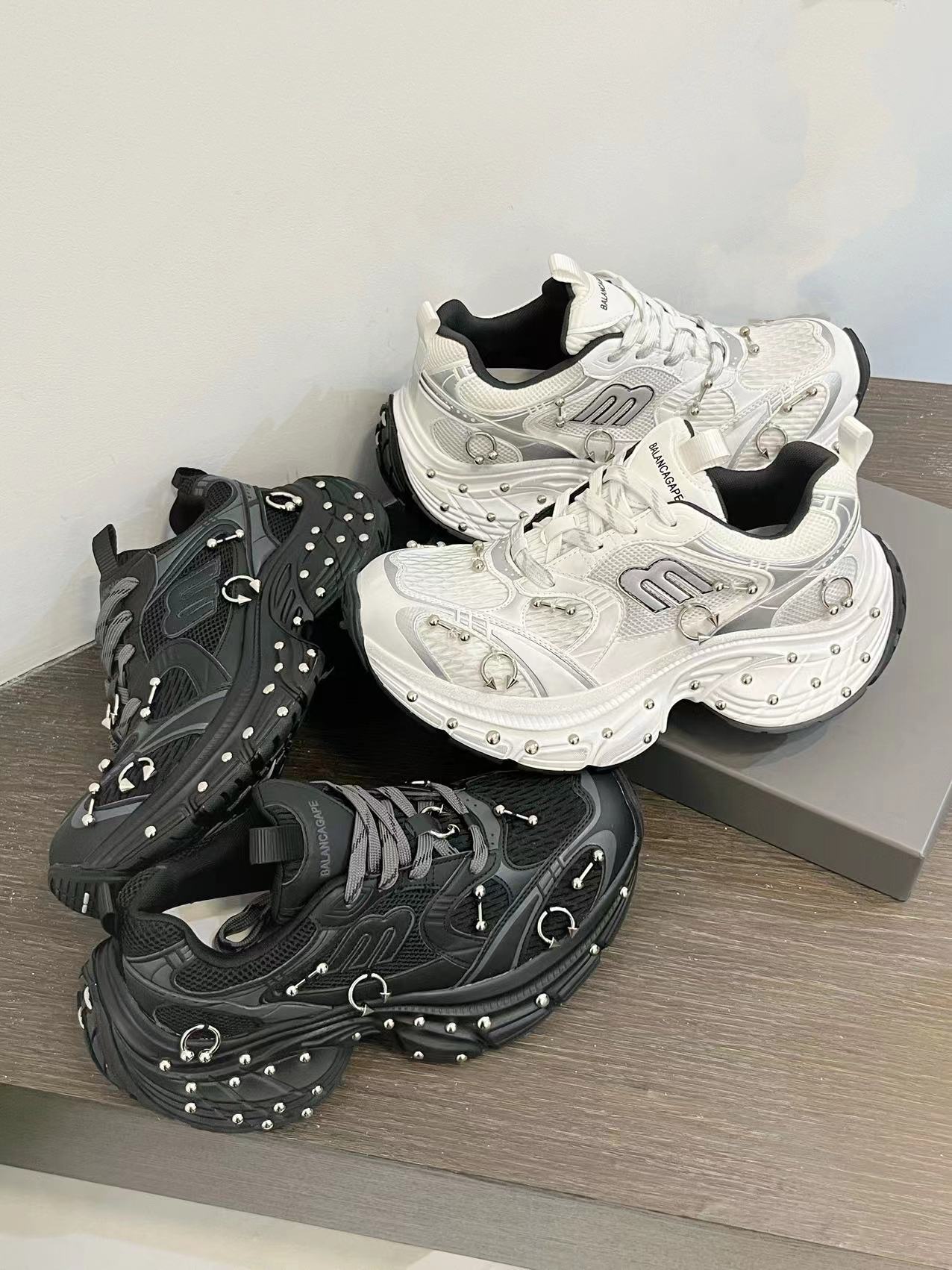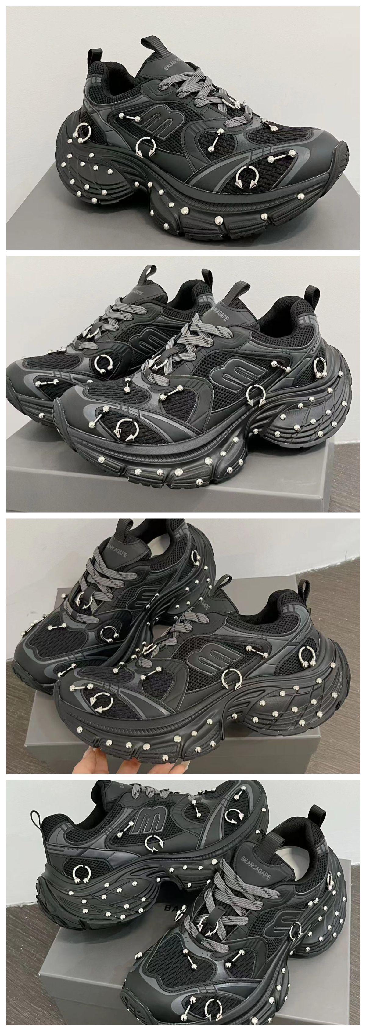 2025 봄 10XL 아빠 신발 리벳 여성 Catwalk 스타일 다목적 두꺼운 밑창 높이 증가 커플 캐주얼 스포츠 신발 복고풍