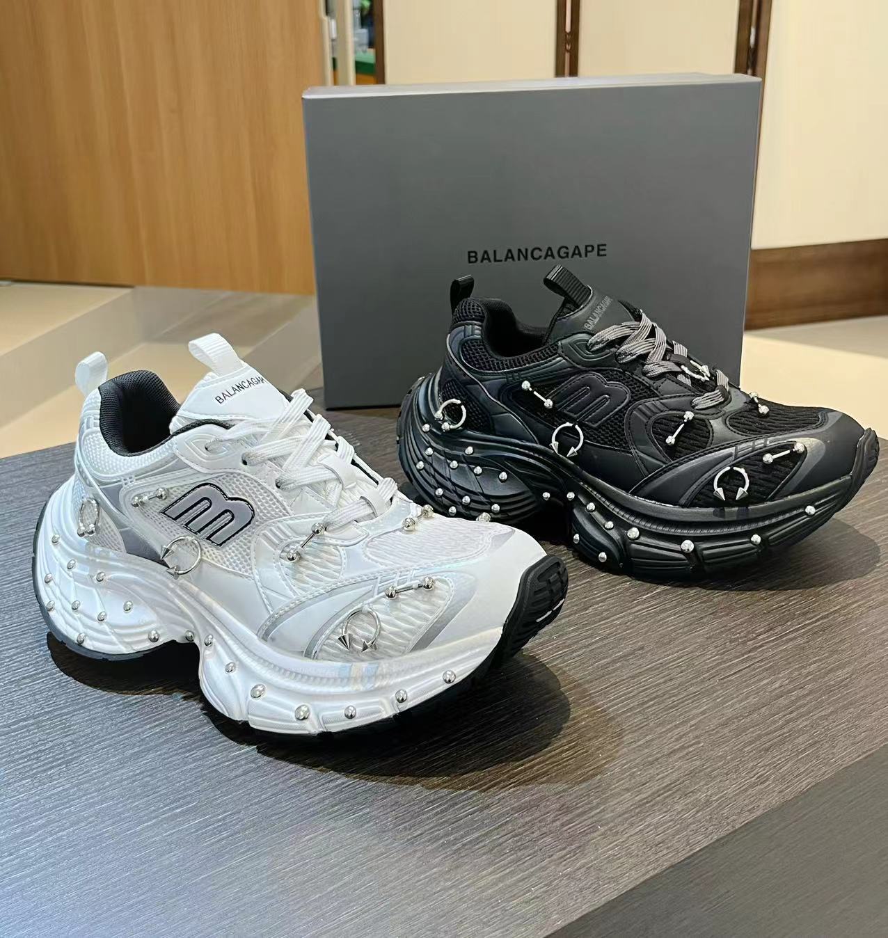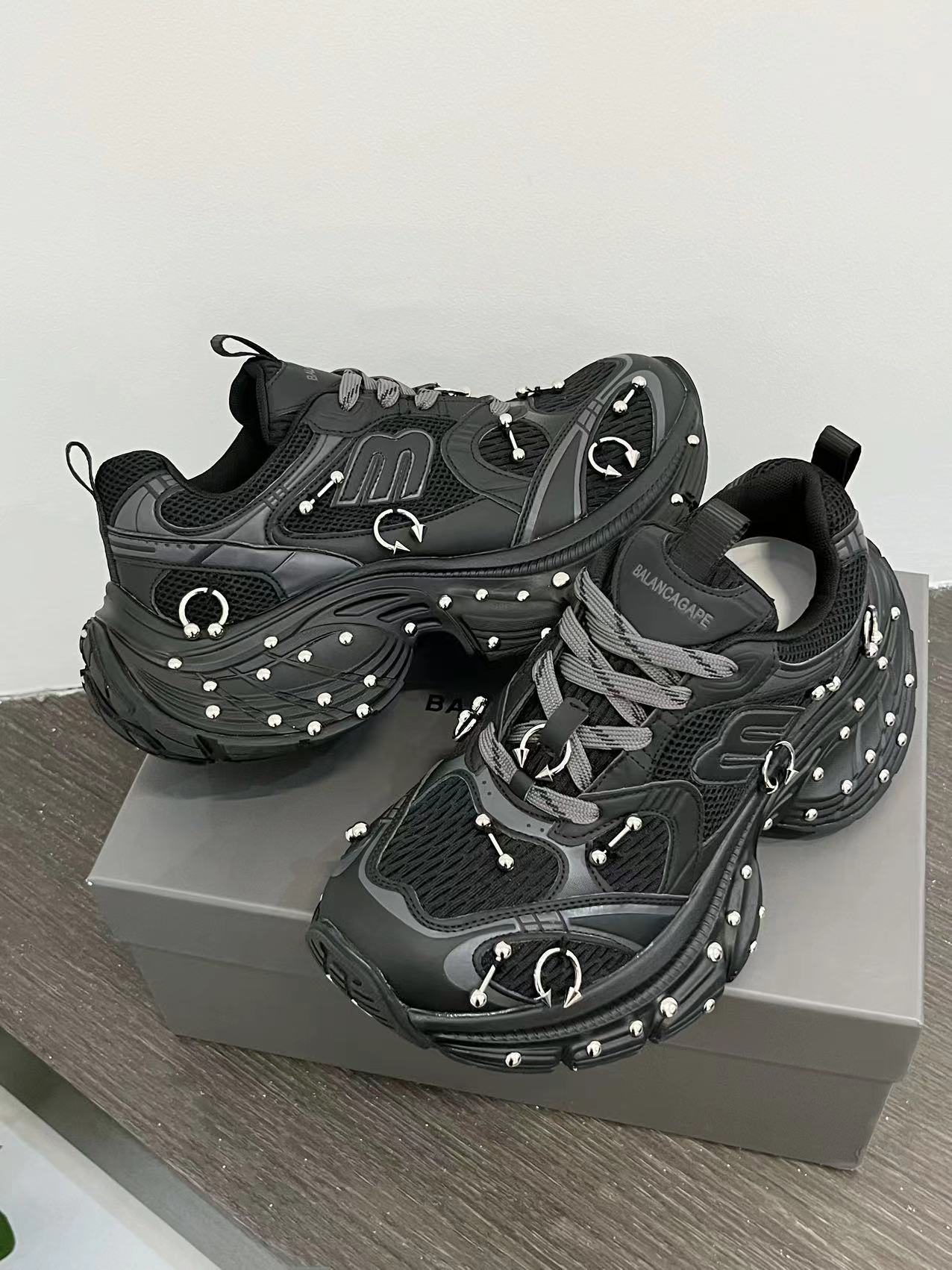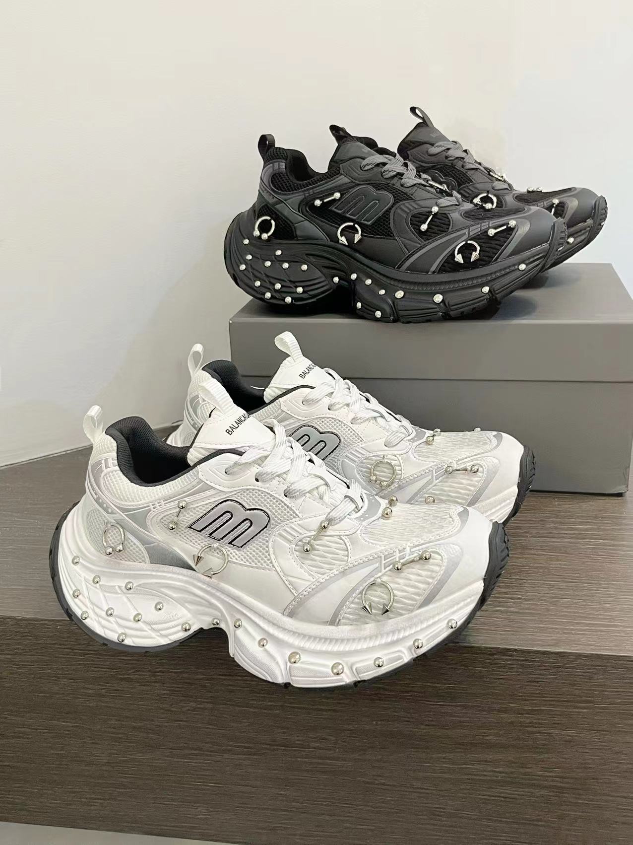 2025 봄 10XL 아빠 신발 리벳 여성 Catwalk 스타일 다목적 두꺼운 밑창 높이 증가 커플 캐주얼 스포츠 신발 복고풍스토어 가기