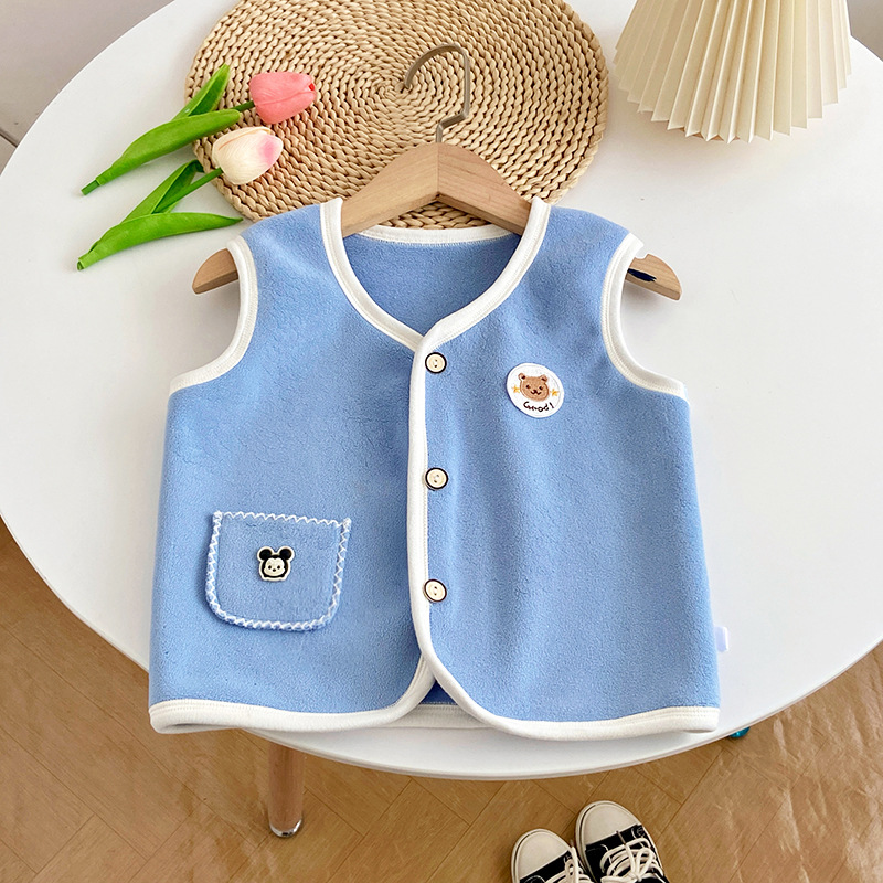 어린이 스웨터 카디건 조끼 2024 가을 새 소년과 소녀 아기 만화 폭발 올레 벨벳 조끼스토어 가기