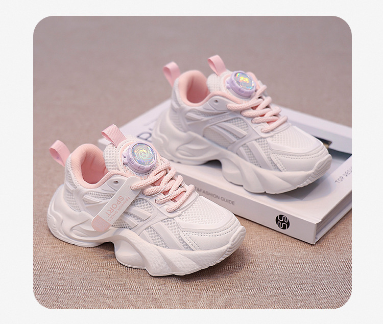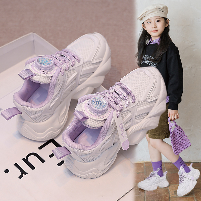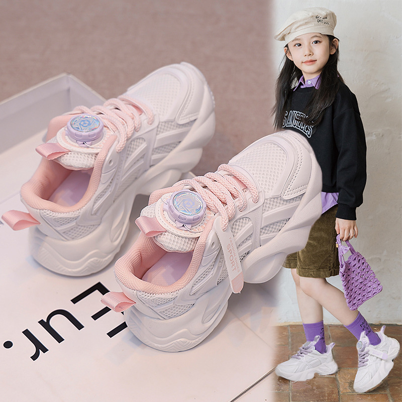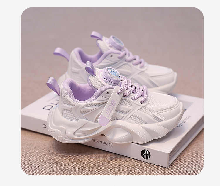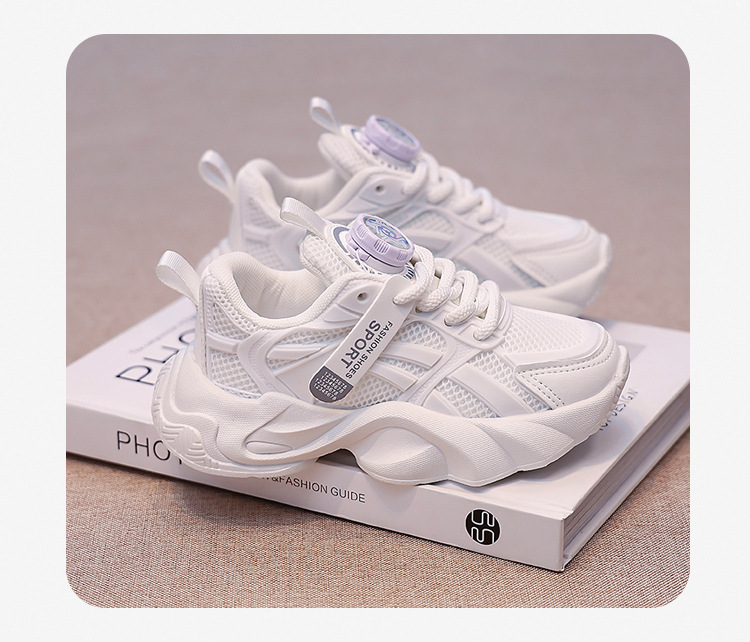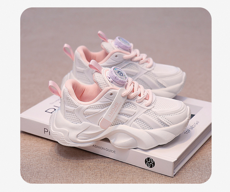 소녀 운동화 2024 가을 새로운 어린이 노브 더블 메쉬 신발 소녀 메쉬 통기성 흰색 신발 중 큰 어린이스토어 가기