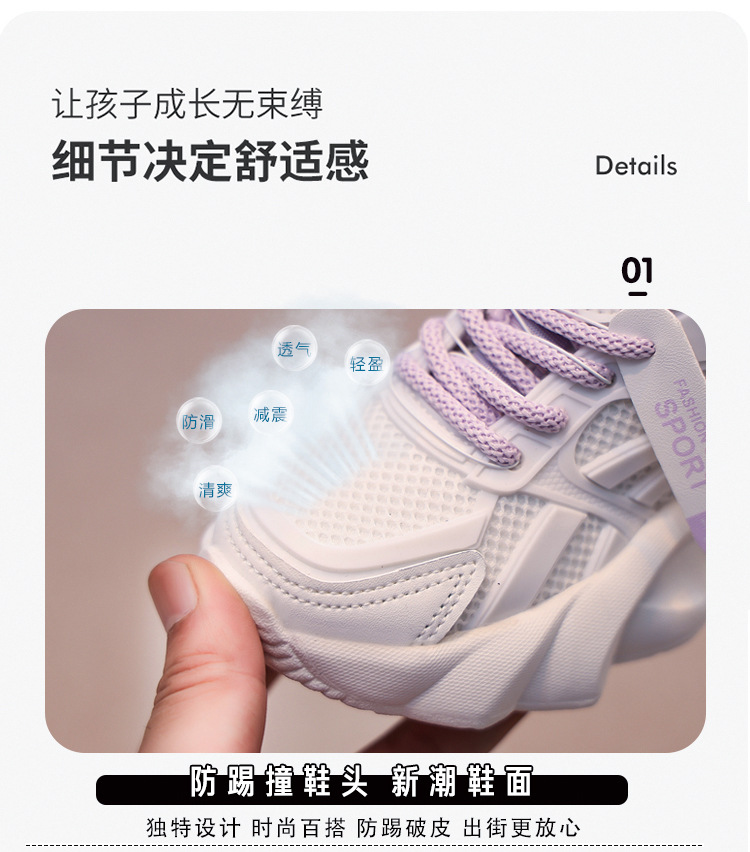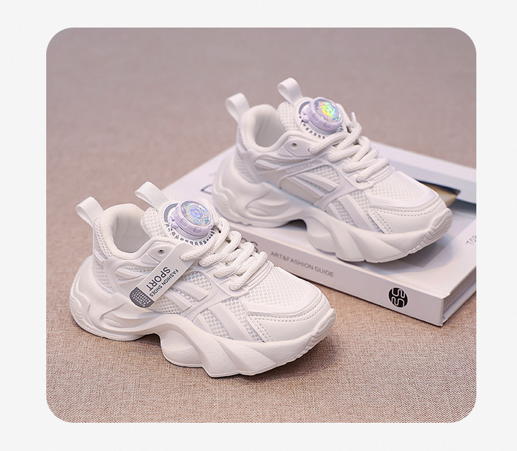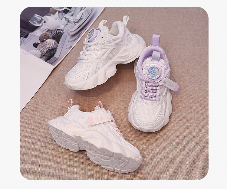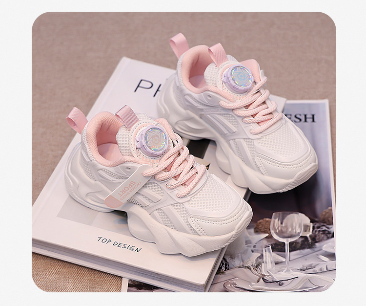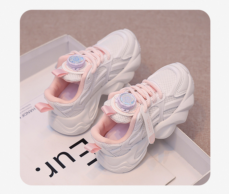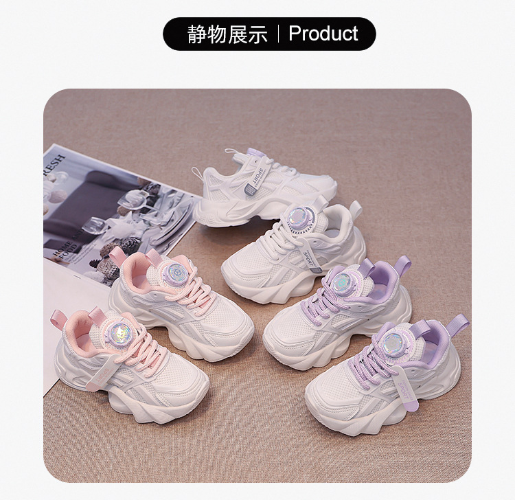소녀 운동화 2024 가을 새로운 어린이 노브 더블 메쉬 신발 소녀 메쉬 통기성 흰색 신발 중 큰 어린이스토어 가기