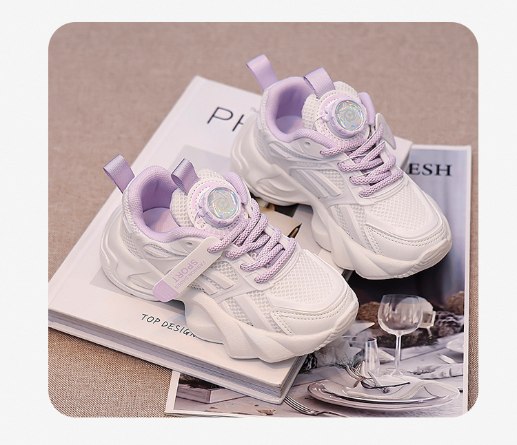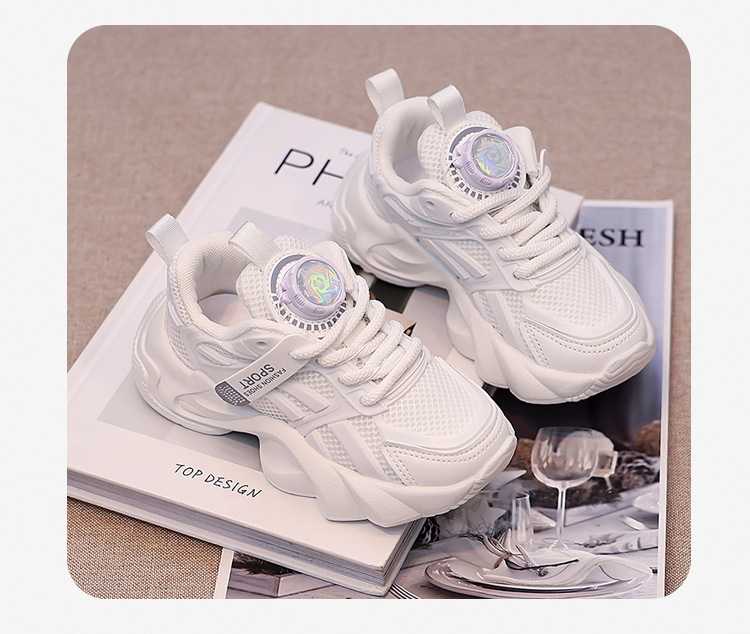 소녀 운동화 2024 가을 새로운 어린이 노브 더블 메쉬 신발 소녀 메쉬 통기성 흰색 신발 중 큰 어린이