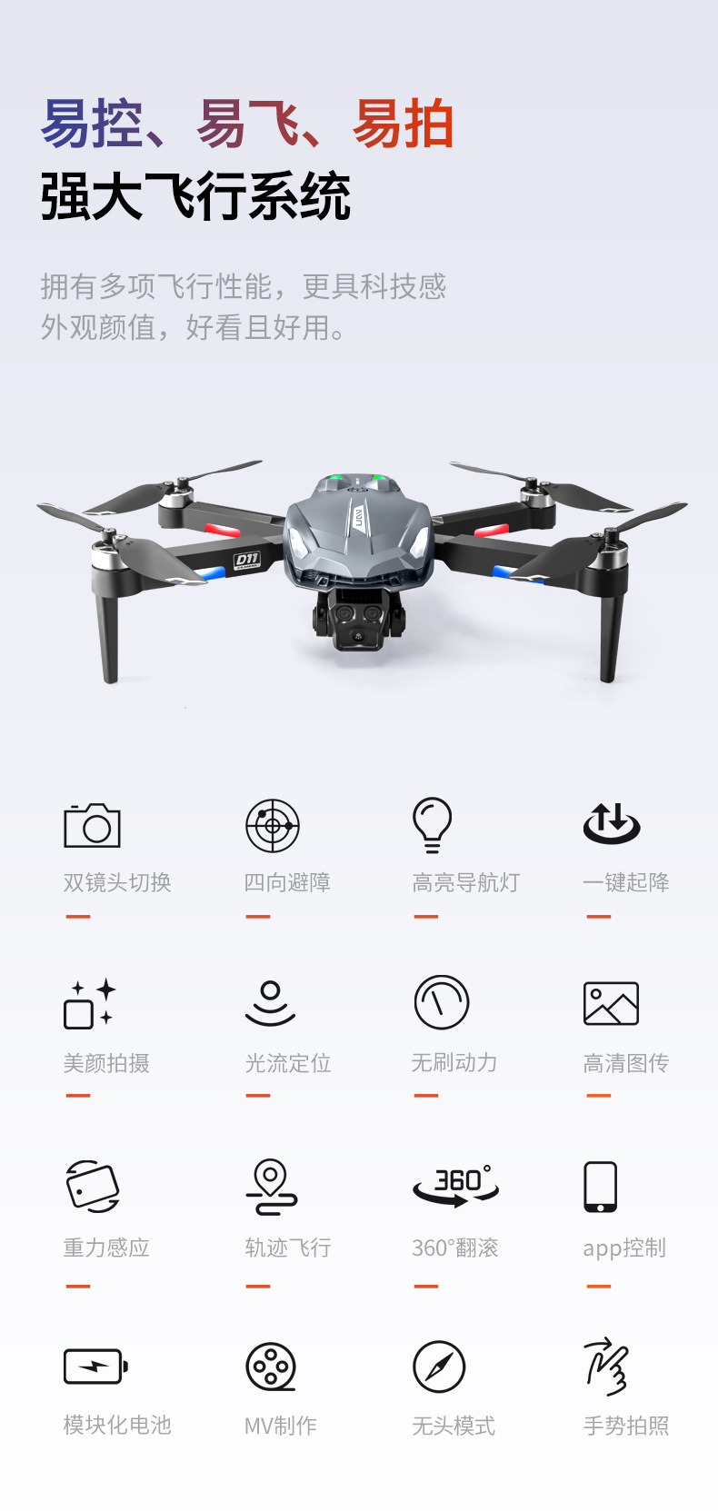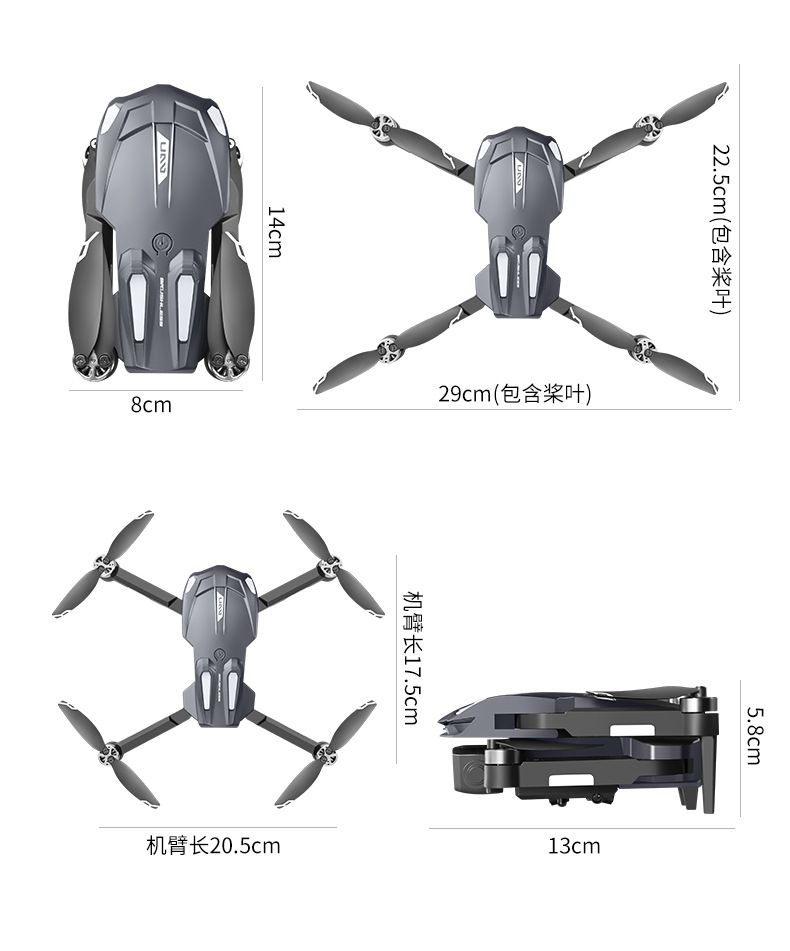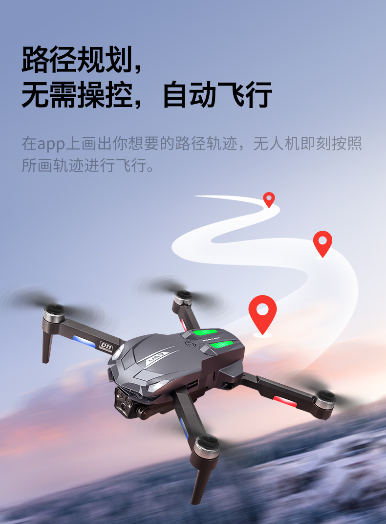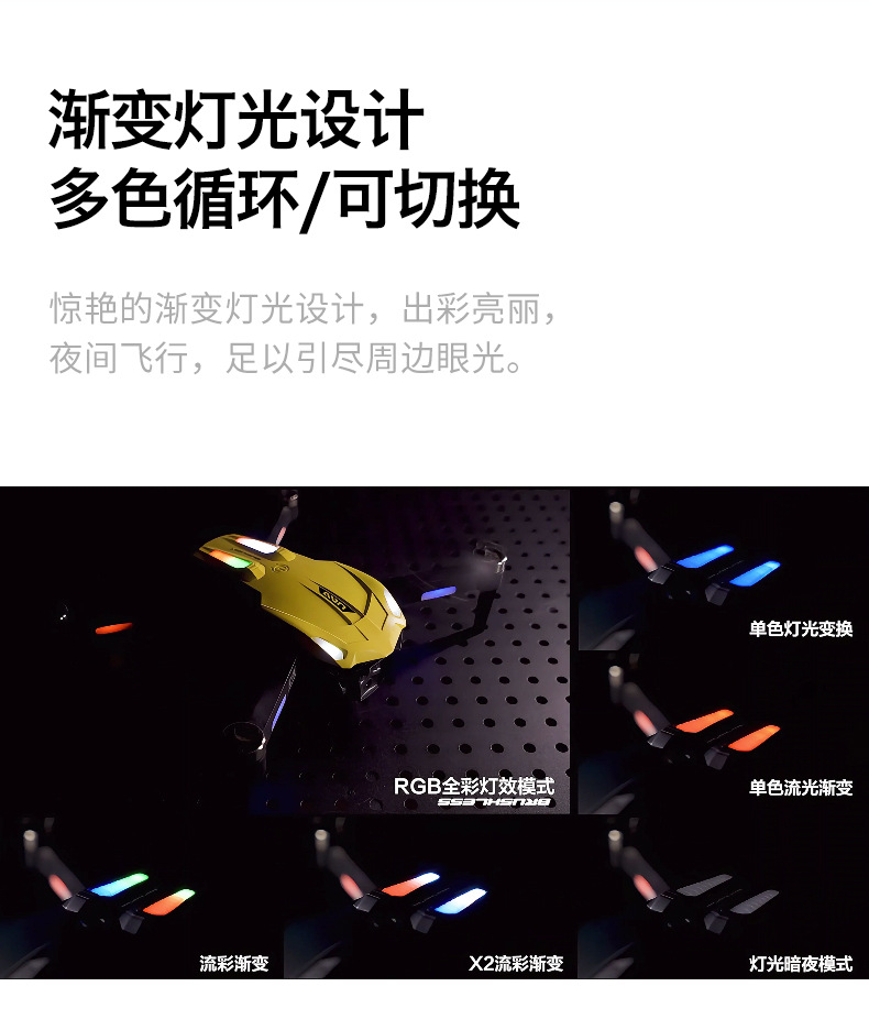 产品配置:渐变流水灯+四面避障+无刷电机+光流定位电调双摄