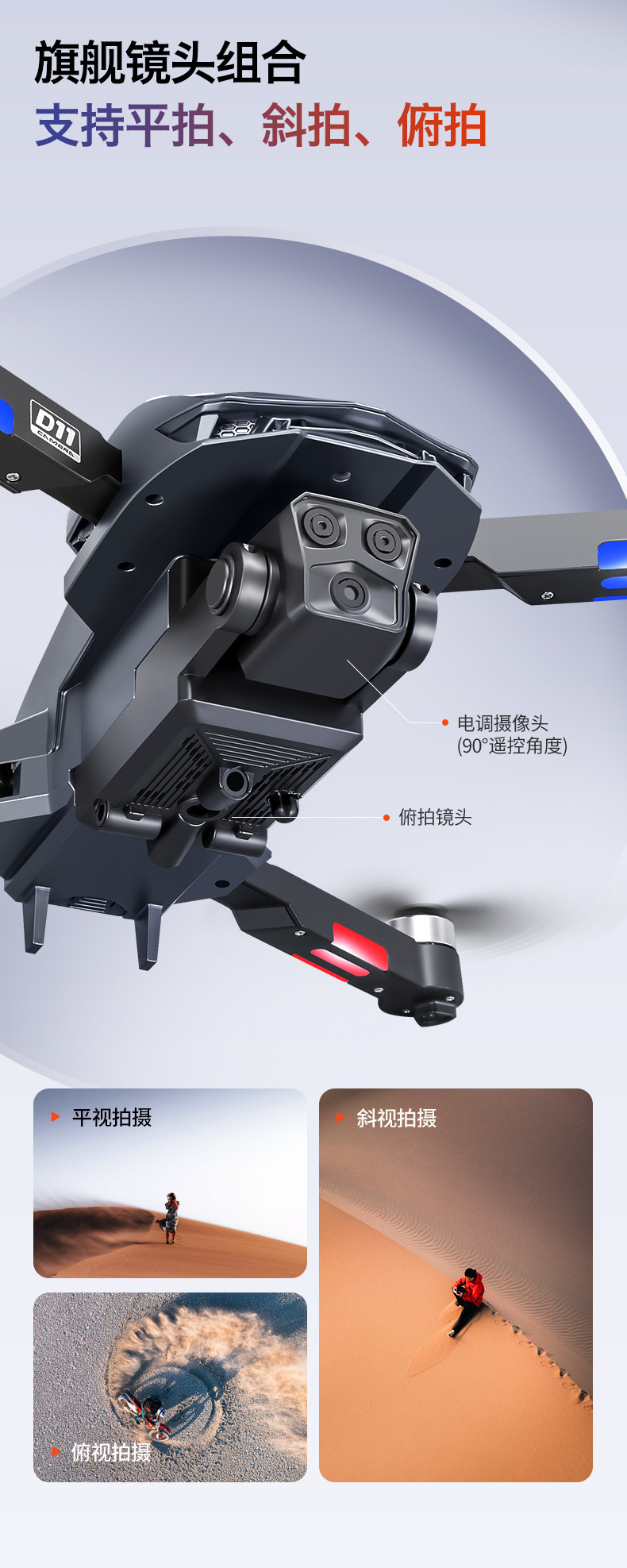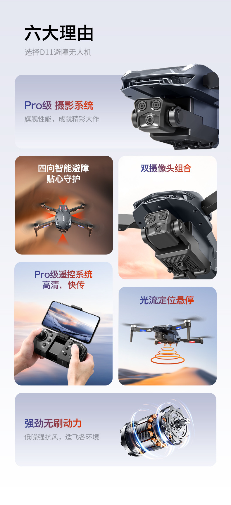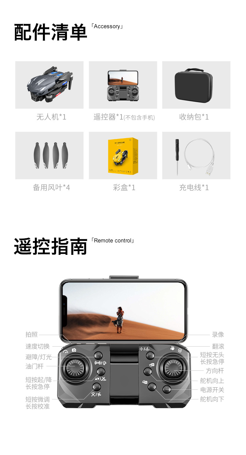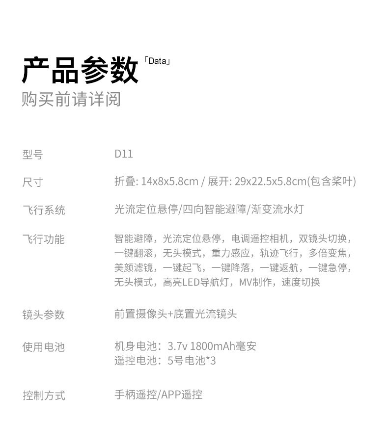 产品配置:渐变流水灯+四面避障+无刷电机+光流定位电调双摄