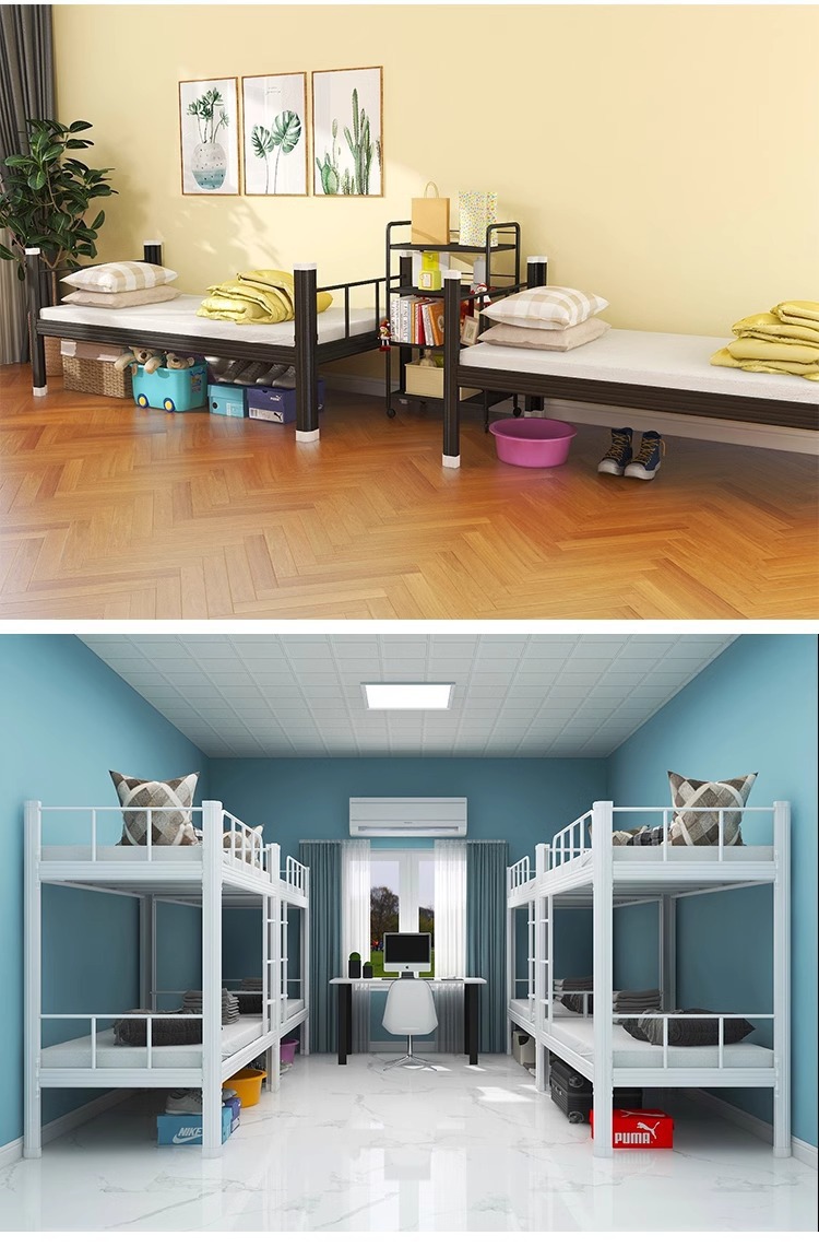 공장 직접 판매는 맞춤형 이층 철제 침대, 이층 침대, 학교 기숙사 하이 및 로우 침대, 직원 기숙사 철제 침대를 지원합니다.