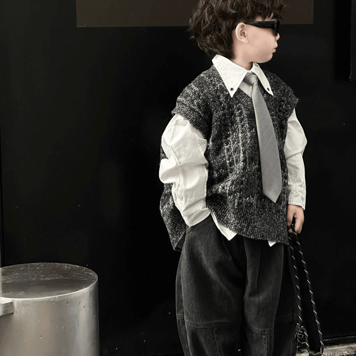 남아용 세련된 라펠 리벳 장식 긴팔 셔츠 2025년 가을 신상품 중소 아동용 멋진 캐주얼 세트