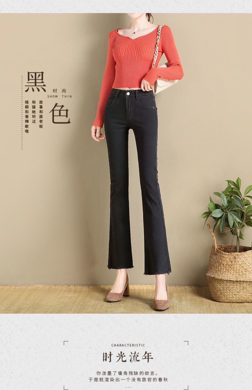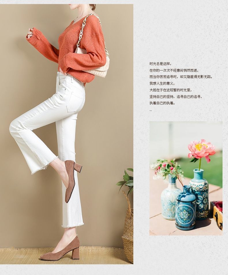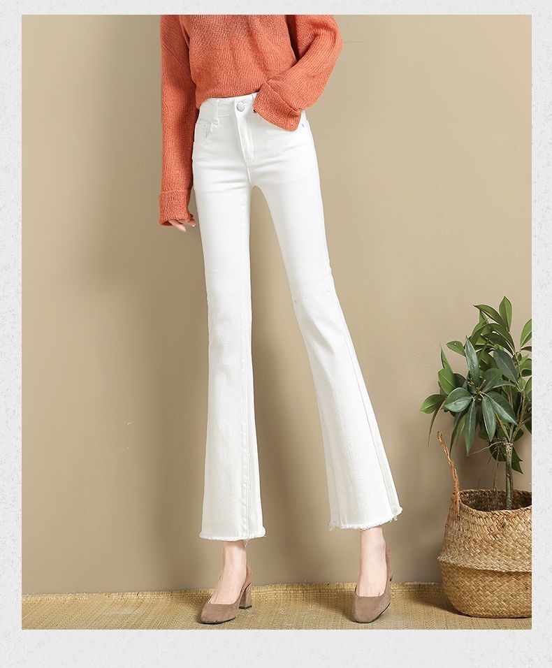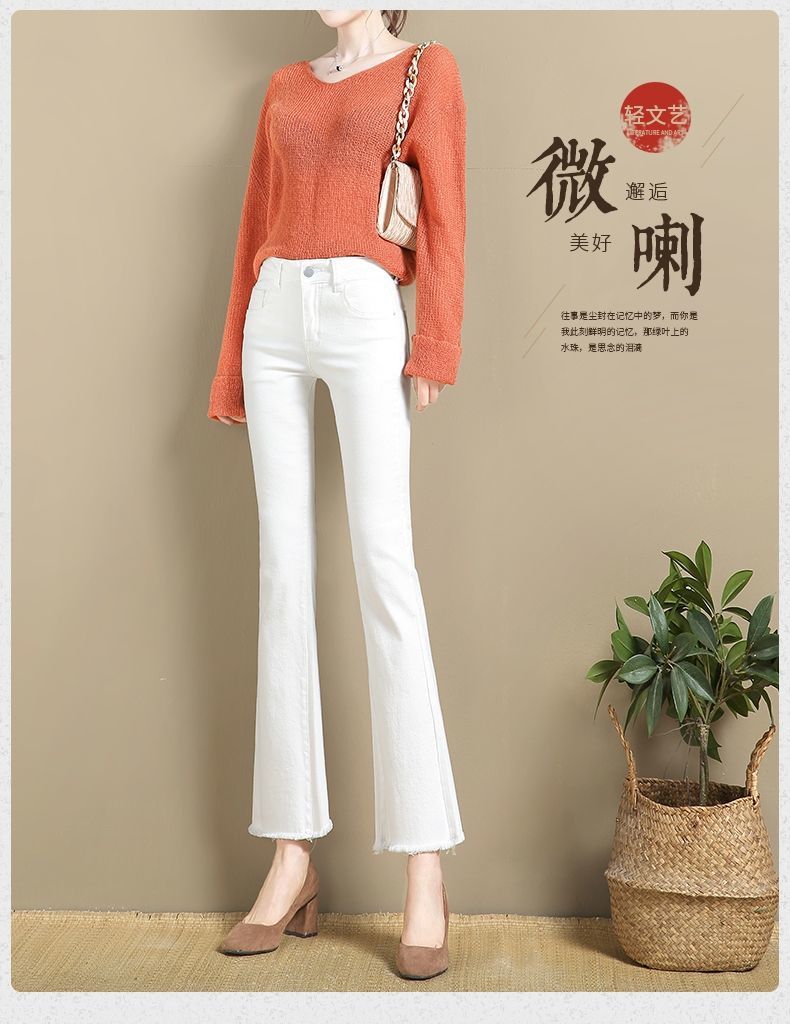 화이트 마이크로 라 청바지 여성의 2024 가을 폭발 높은 허리 높은 슬림 연기 튜브 작은 뿔 청바지스토어 가기