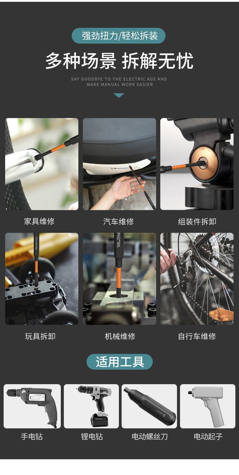 검은 회오리 바람 강한 자기 산업 전기 스크류 드라이버 손 전기 드릴 Lengthen 높은 경도 크로스 헤드 바람 드라이버스토어 가기