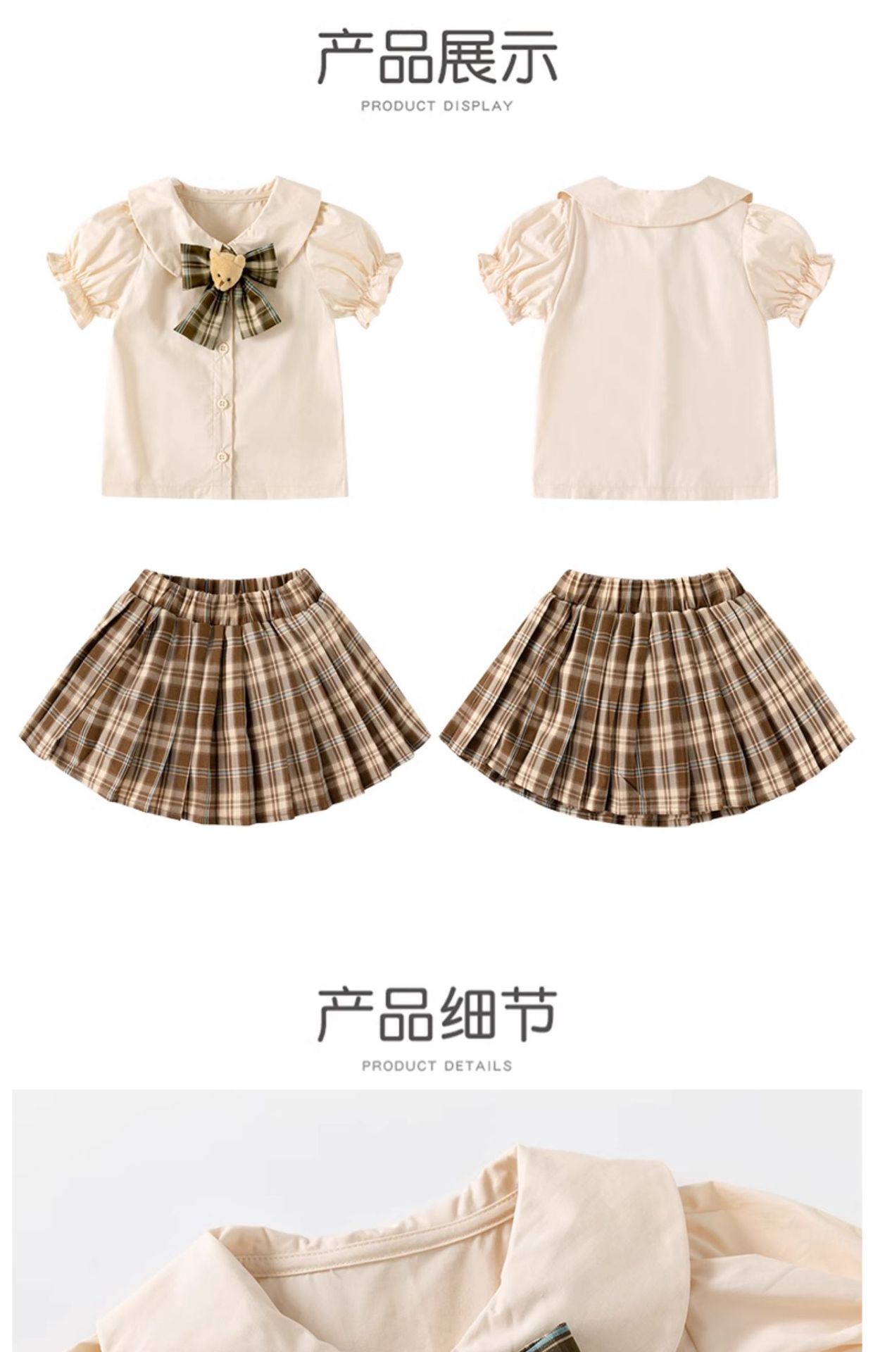 여자 여름 세트 2024 새로운 스타일 아동복 어린이 대학 스타일 투피스 아기 JK 스커트 여름스토어 가기