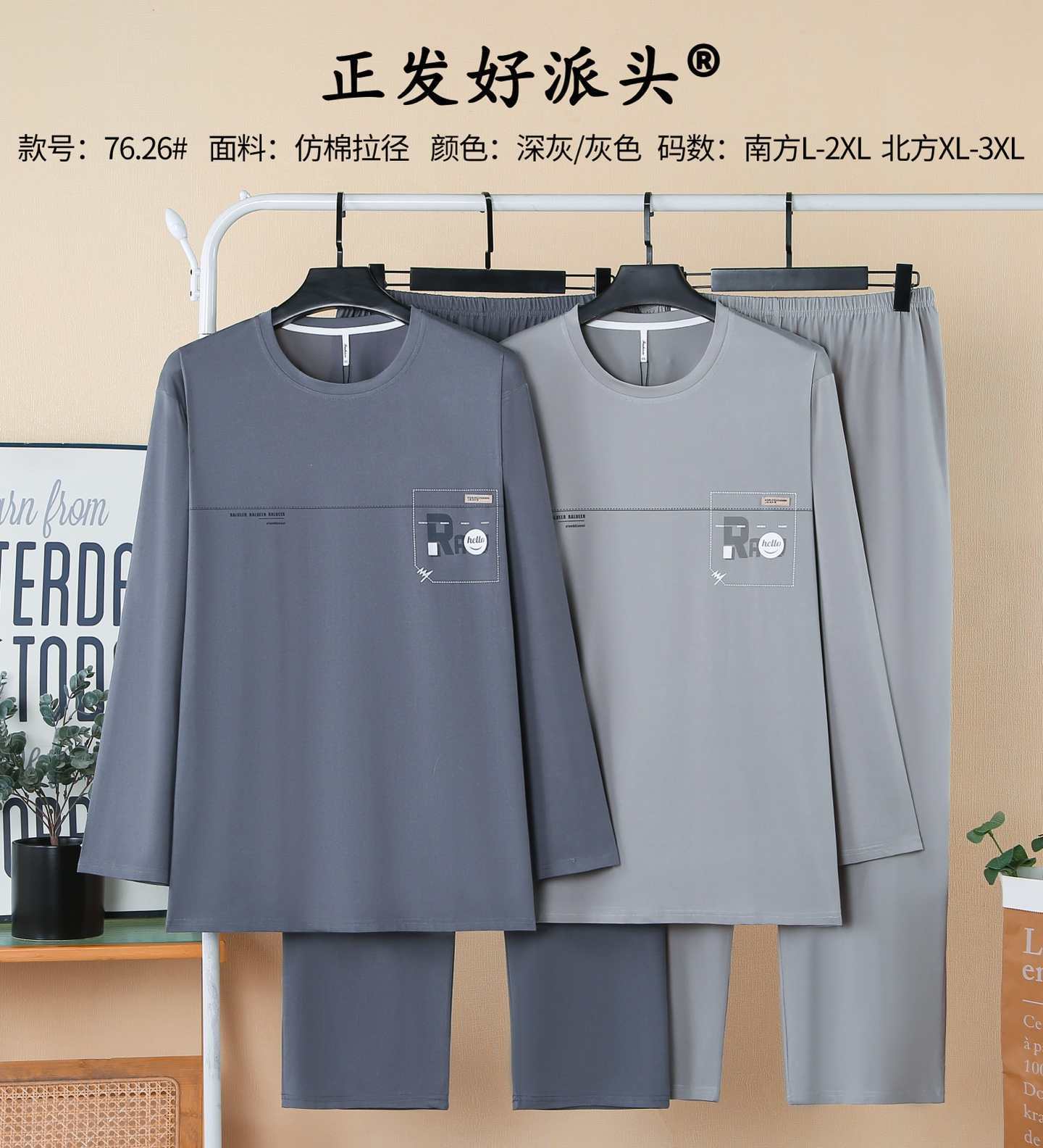 가을 2024 새로운 남성 풀오버 캐주얼 편안한 긴 소매 바지 세트 잠옷 모조 면 홈 옷스토어 가기
