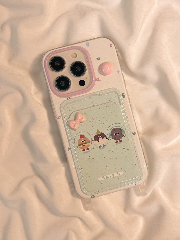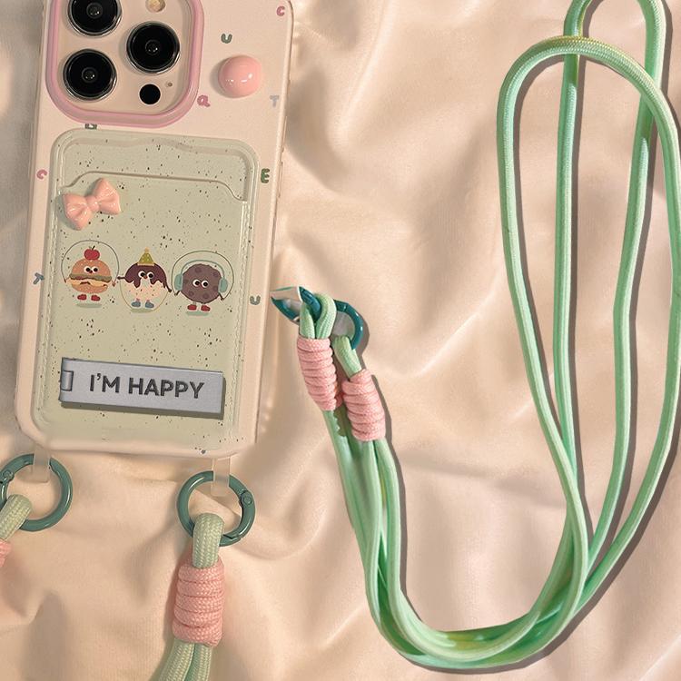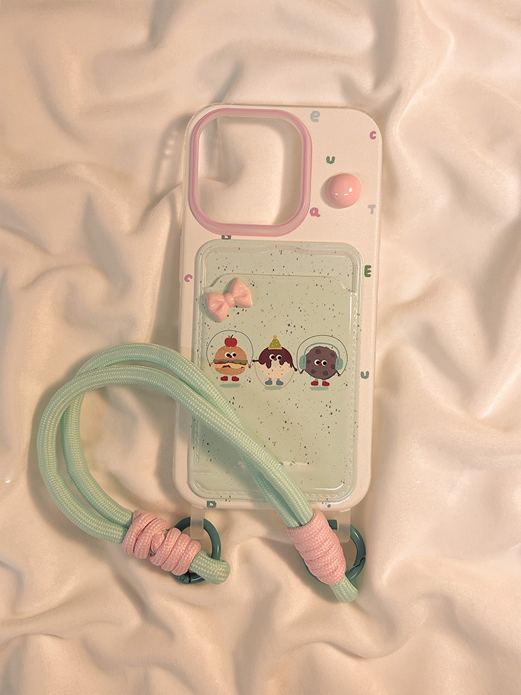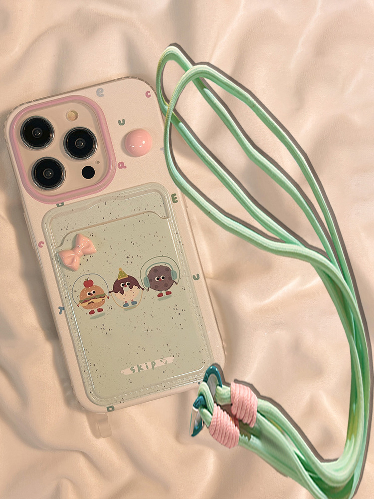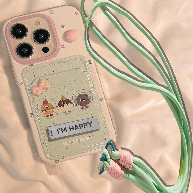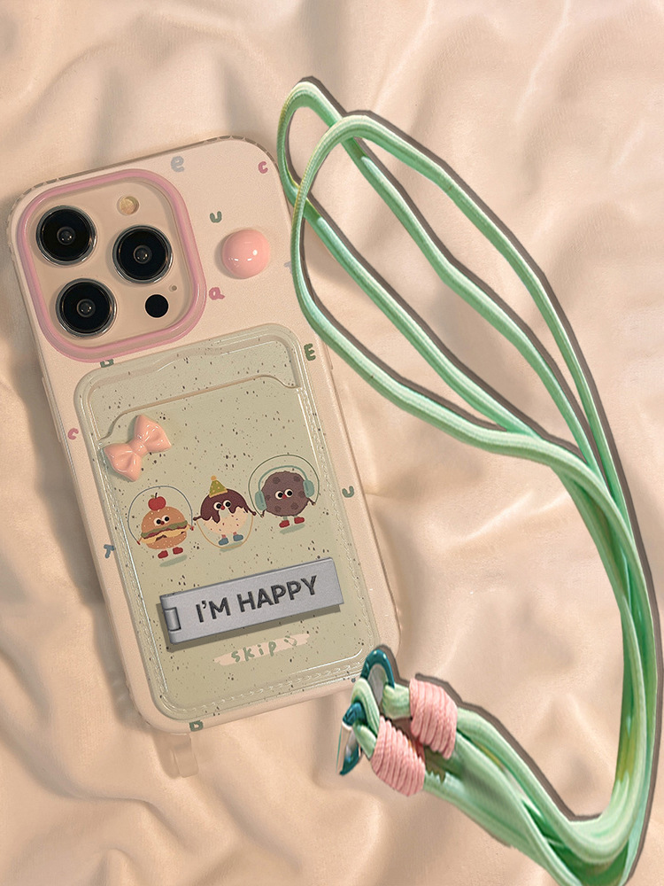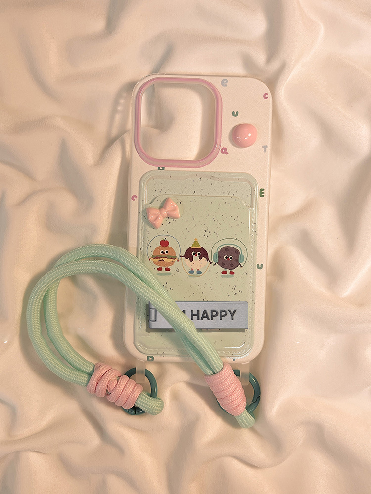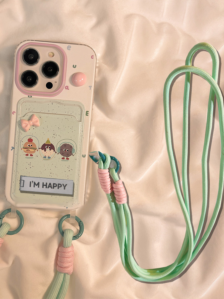 • [일체형 카드홀더 - 스플래시 잉크버거] + 입체적인 나비 도트무늬 + 녹색 짧은 끈 + 해피스탠드