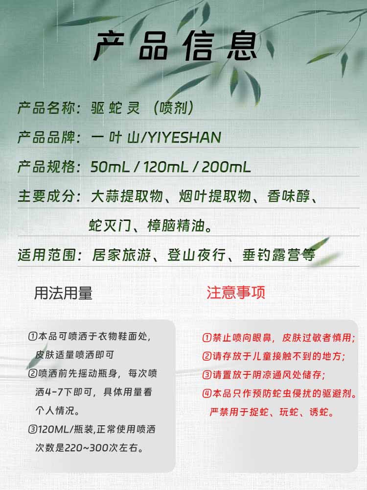 Yiye Mountain 야외 뱀 구제 스프레이, 뱀 방지 유물, 낚시 뱀 구제 액체, 오래 지속되는 뱀 방지 및 해충 방지 약, 야외 뱀 구제 스프레이스토어 가기