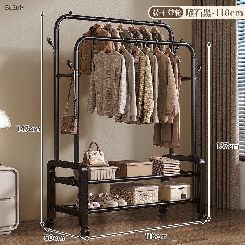 코트 랙 바닥 서 건조 걸이 더블 폴 걸이 간단한 가정용 높은 하중 베어링 발코니 수직 옷걸이