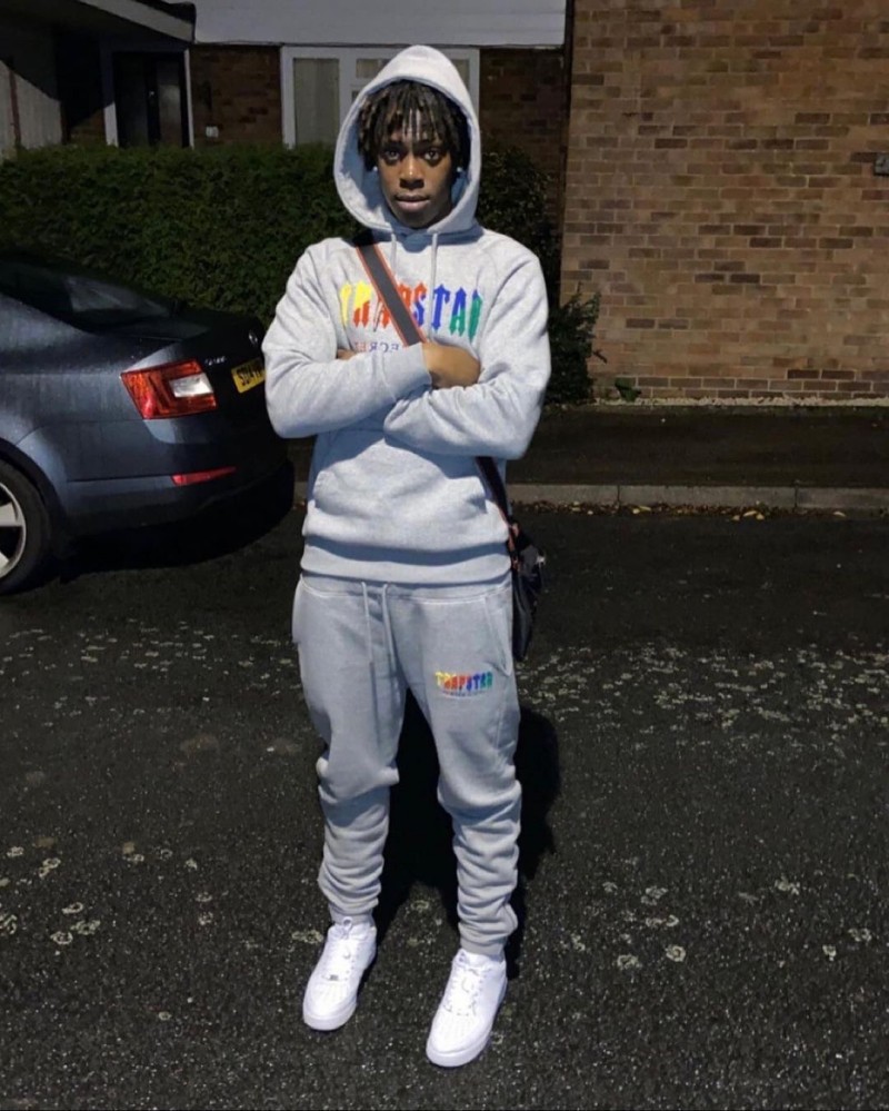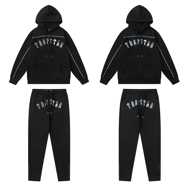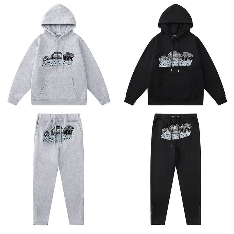국경 간 대외 무역 트렌디 브랜드 트라 무지개 그라디언트 편지 타이거 머리 자수 후드 스웨트 스포츠 세트