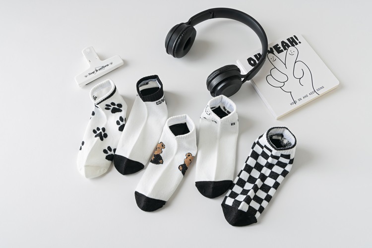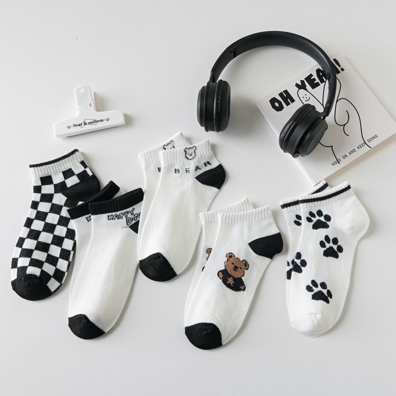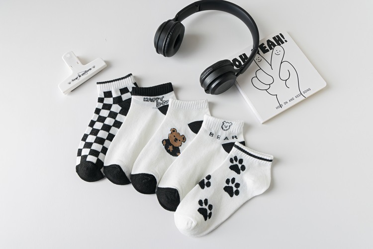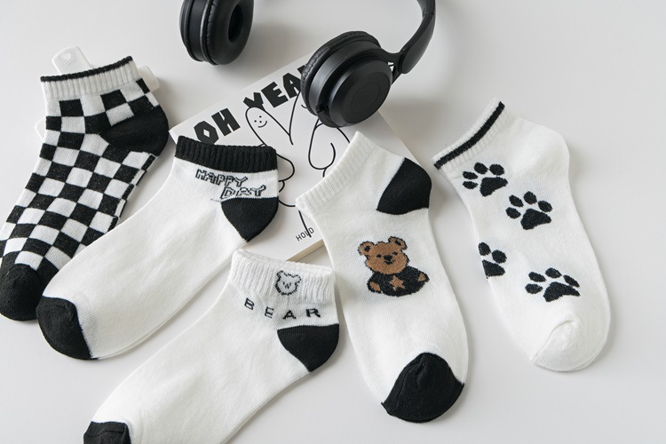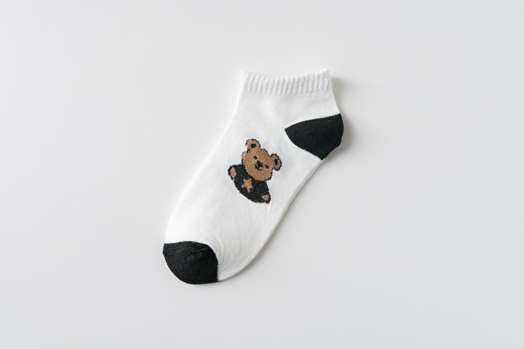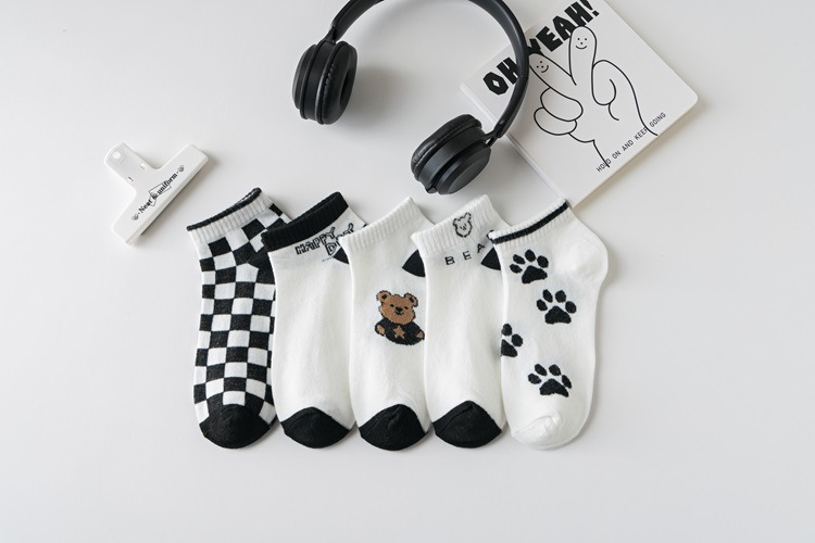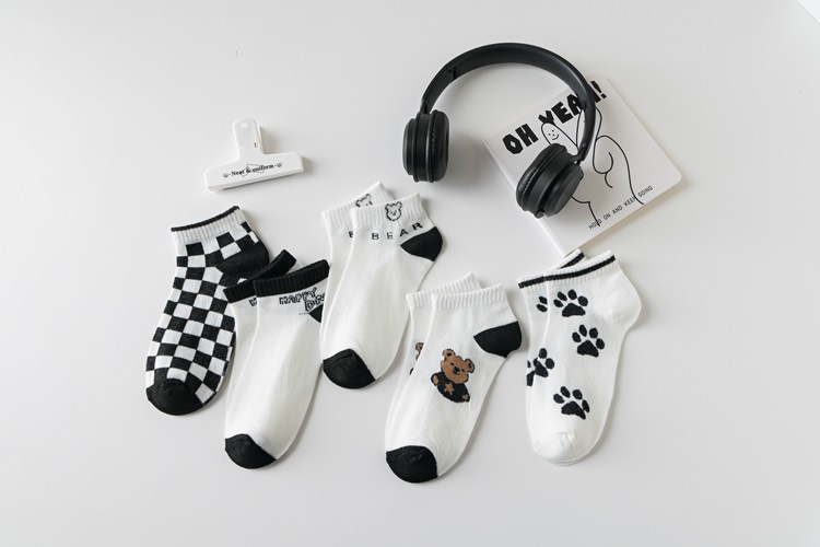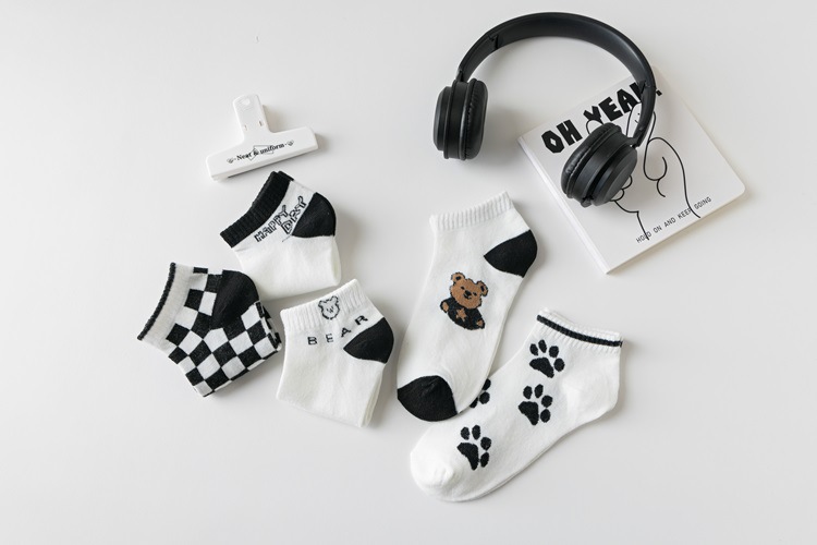 2025 년 여름과 가을 새로운 여성 양말 얇은 통기성 만화 흑백 곰 양말 캐주얼 로우 엔드 보트 양말 Zhuji 제조 업체스토어 가기
