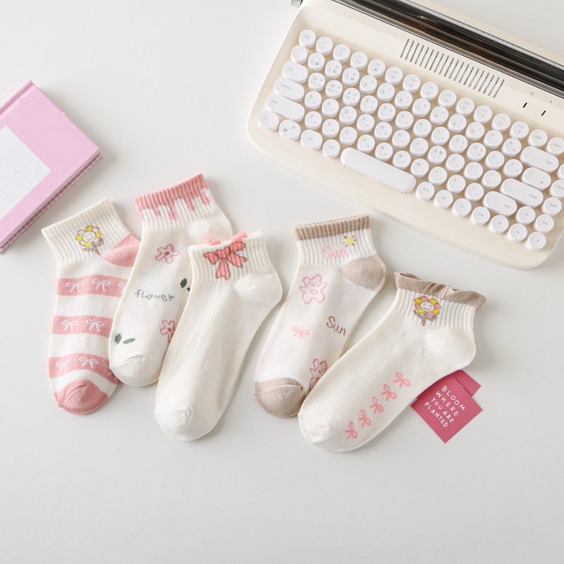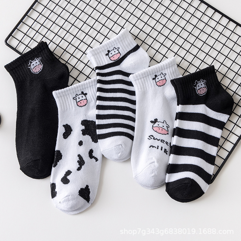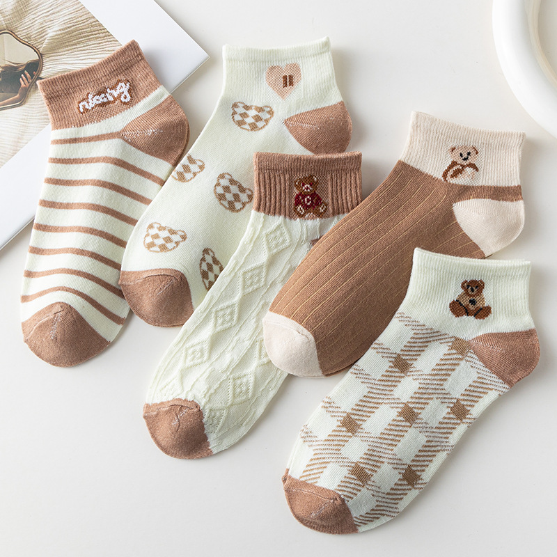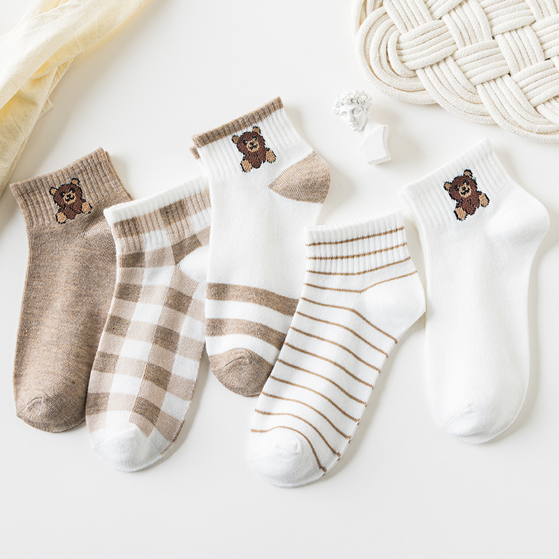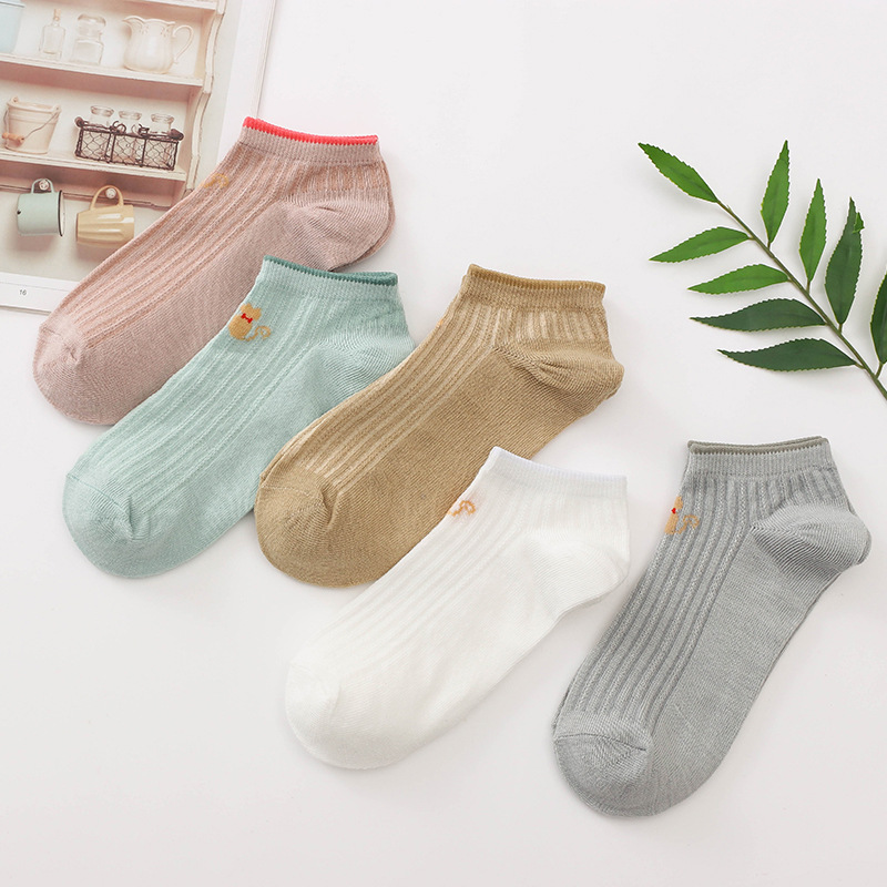 2025 년 여름과 가을 새로운 여성 양말 얇은 통기성 만화 흑백 곰 양말 캐주얼 로우 엔드 보트 양말 Zhuji 제조 업체스토어 가기