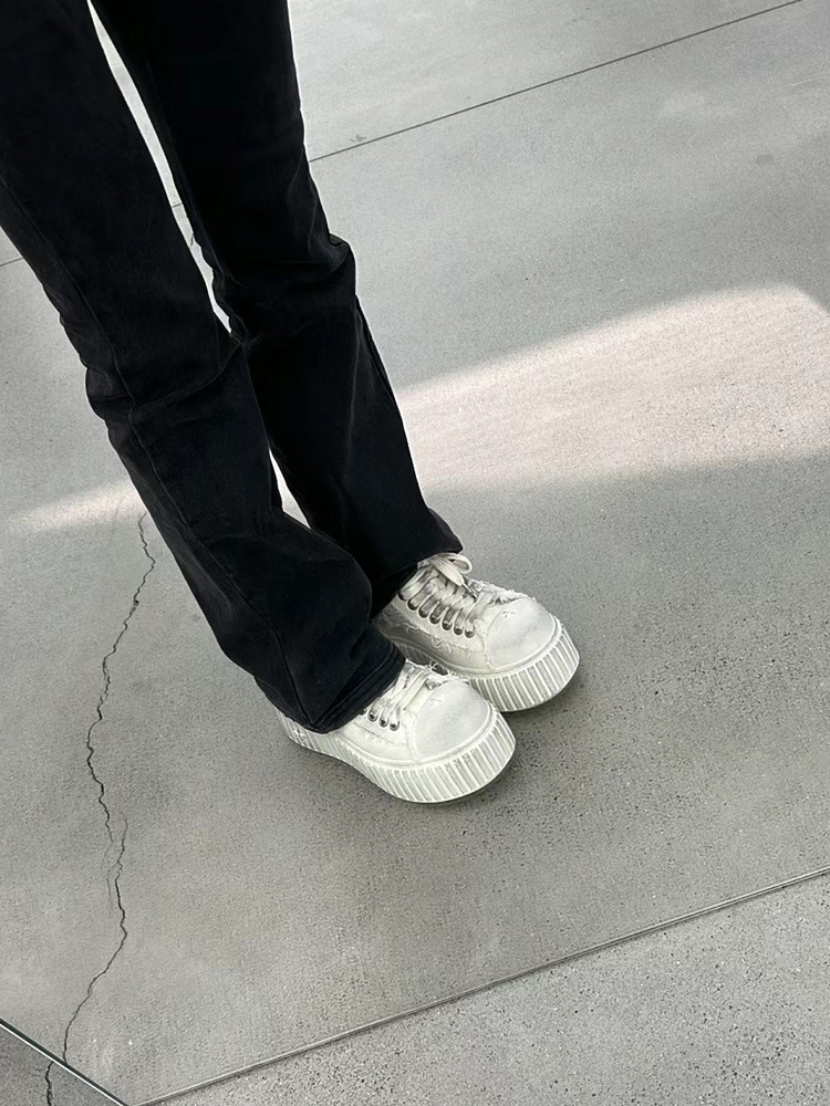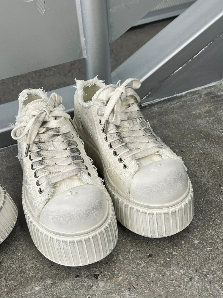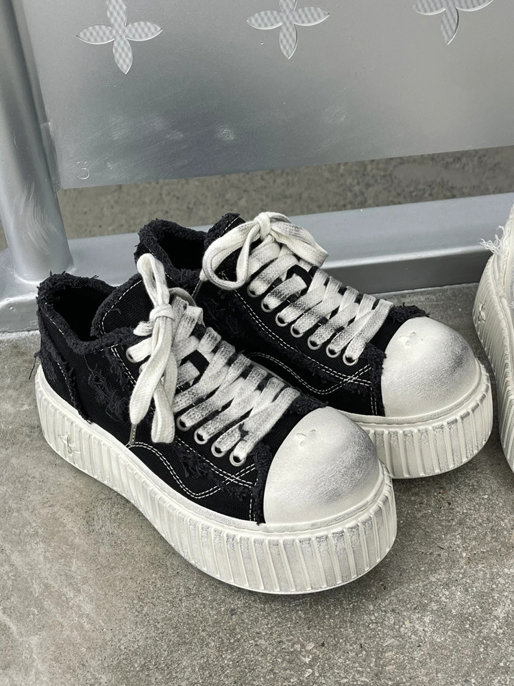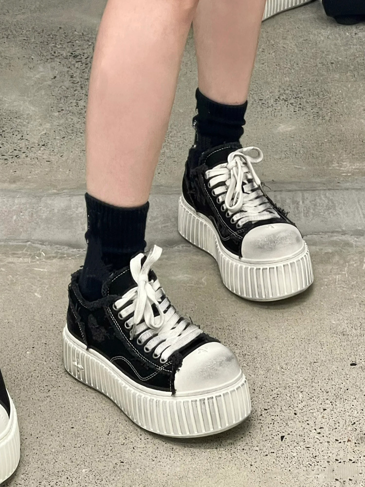 2024 신형 스트로보 스케이트보드 슈즈, 크로스 플라워 스니커즈, 여성화, 화이트 슈즈, 두꺼운 밑창 캔버스, 디스트레스드 스몰 더티 슈즈스토어 가기