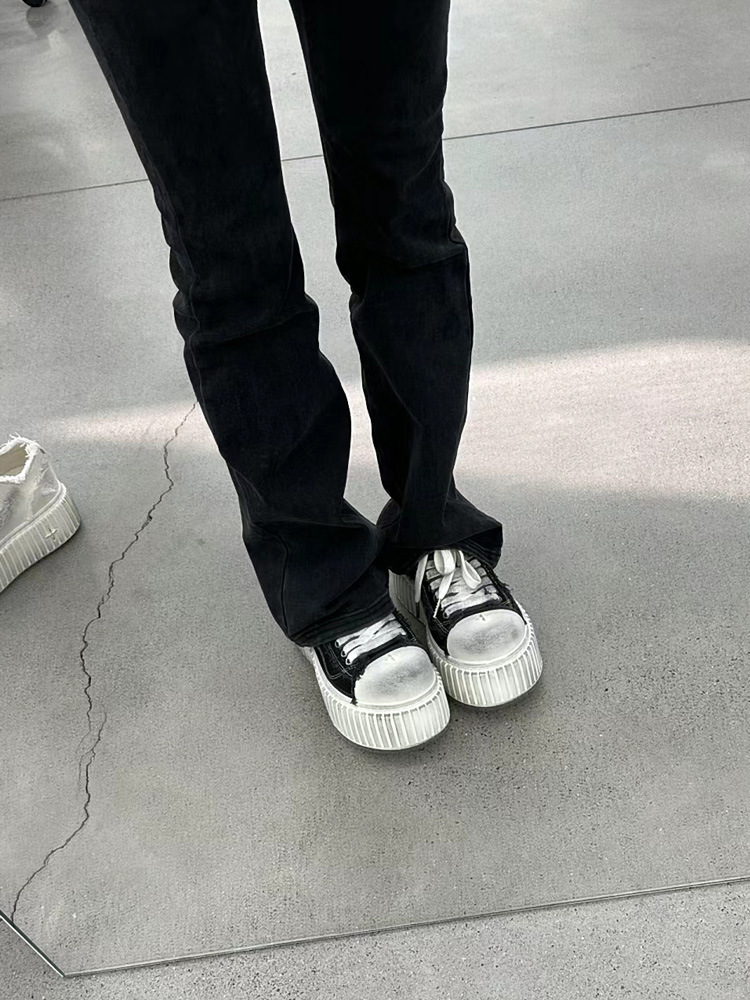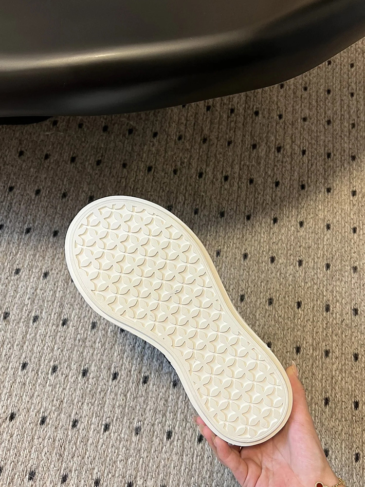 2024 신형 스트로보 스케이트보드 슈즈, 크로스 플라워 스니커즈, 여성화, 화이트 슈즈, 두꺼운 밑창 캔버스, 디스트레스드 스몰 더티 슈즈