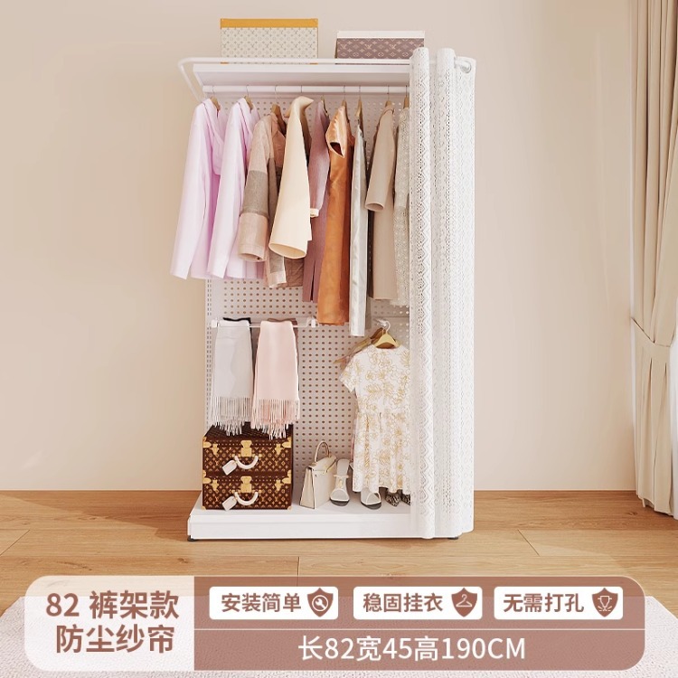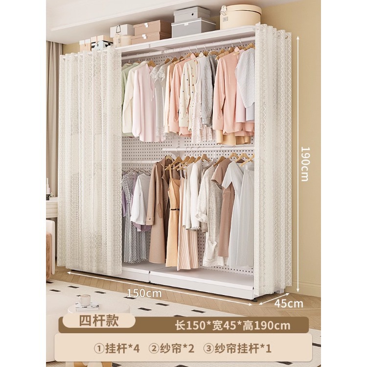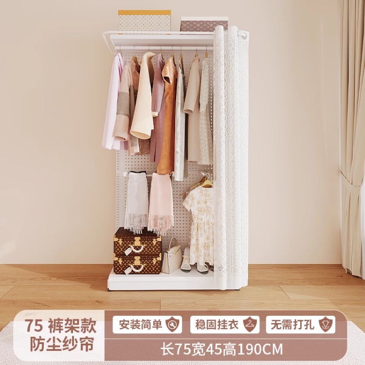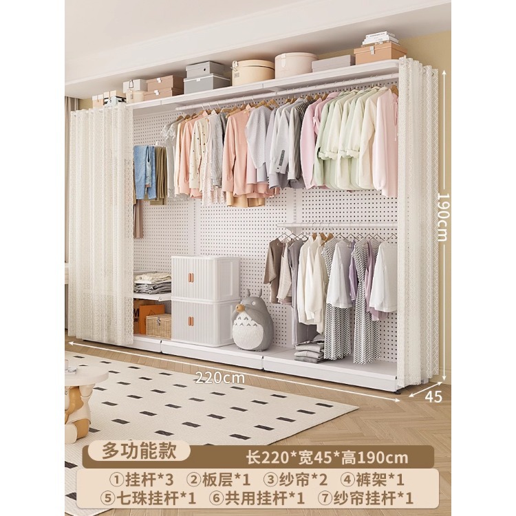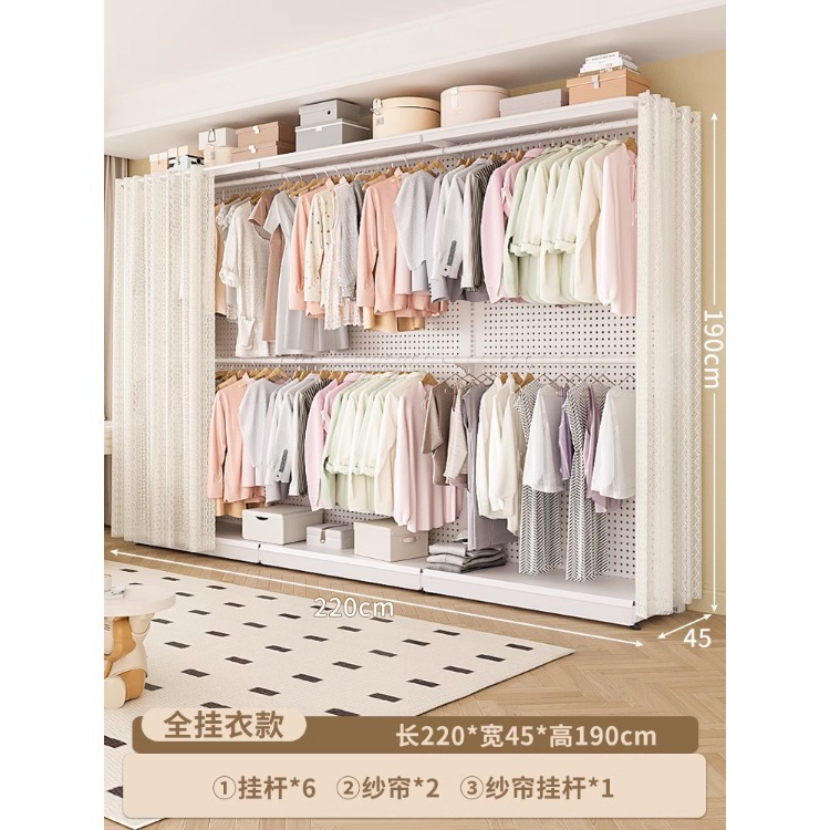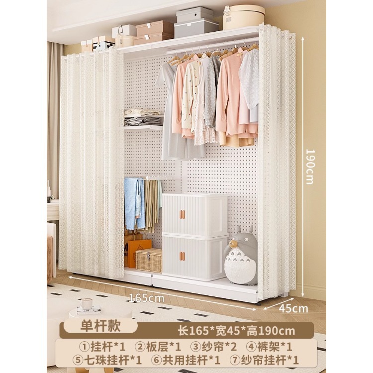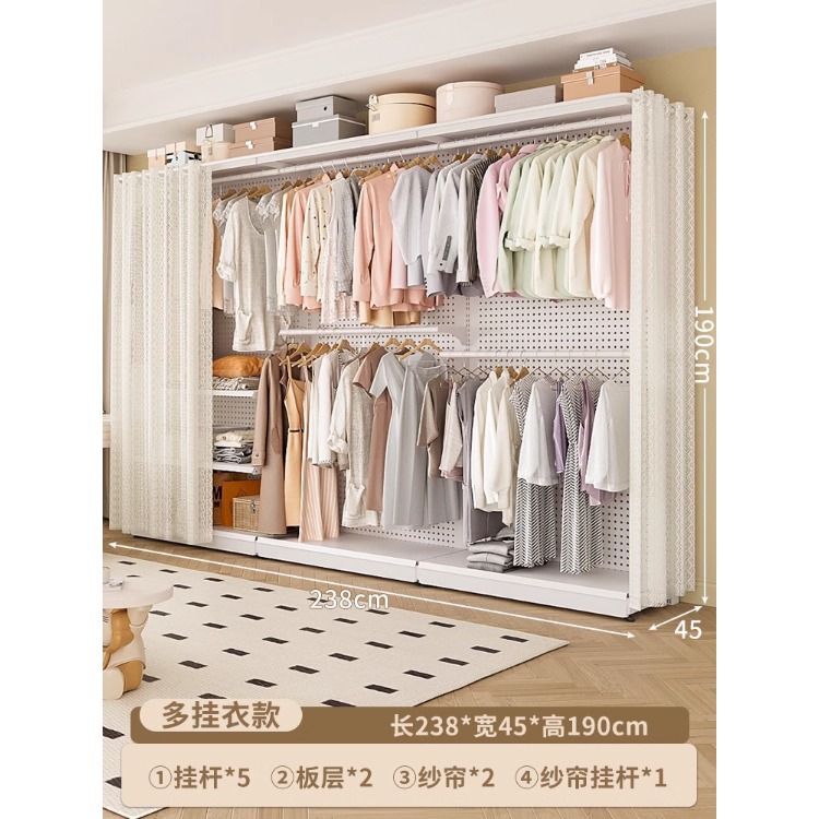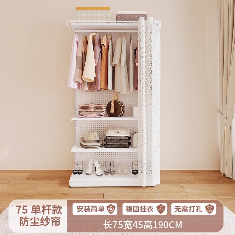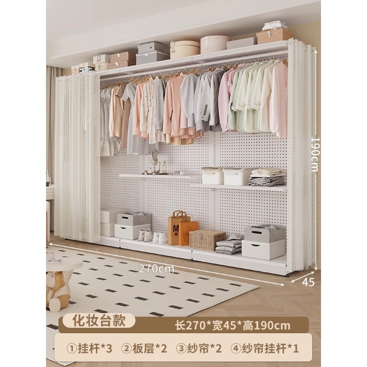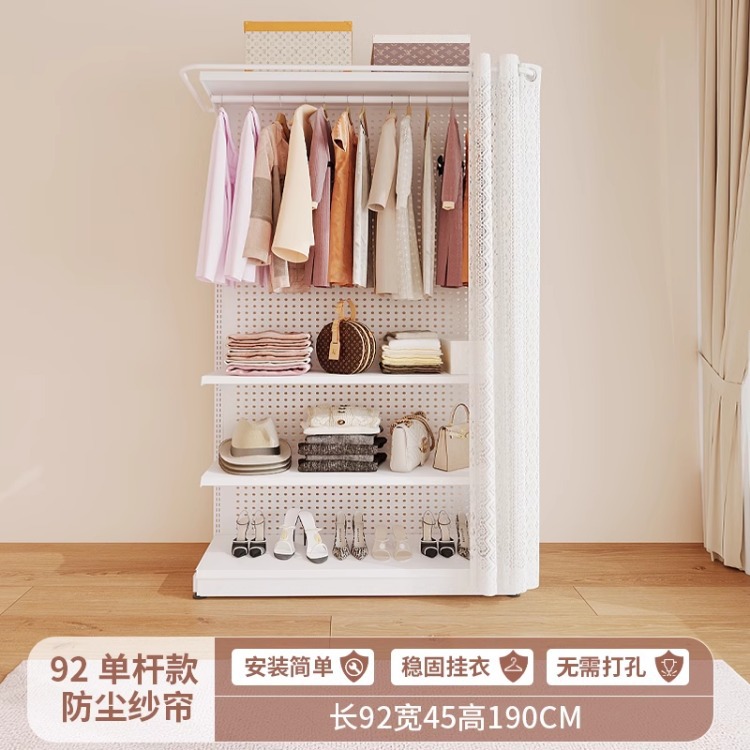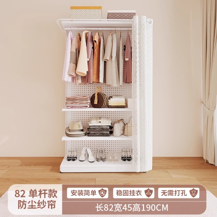 홀보드 옷장 금속 옷걸이 침실 워크인 오픈형 방진 커튼 옷장 조립식 선반 수납