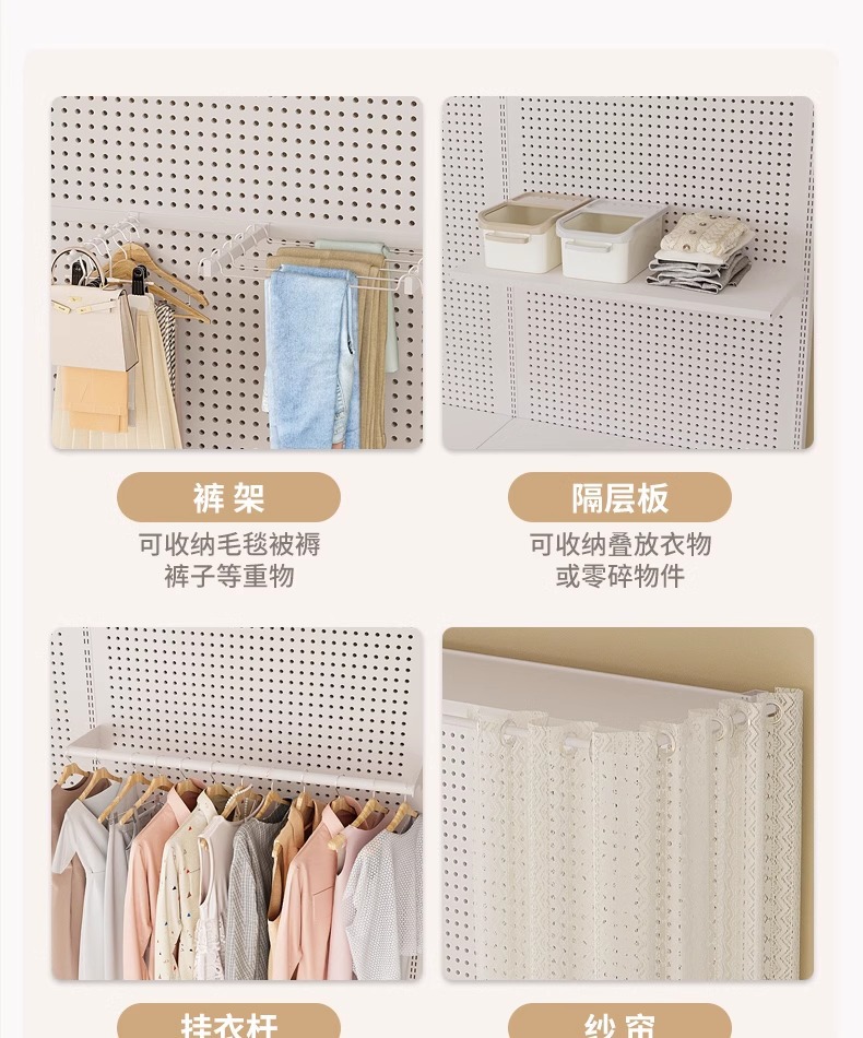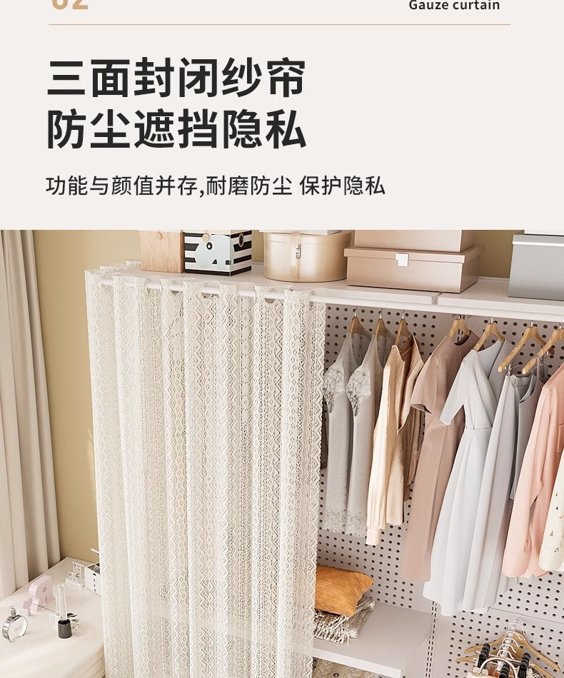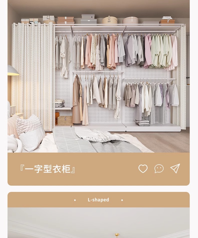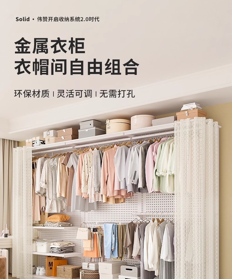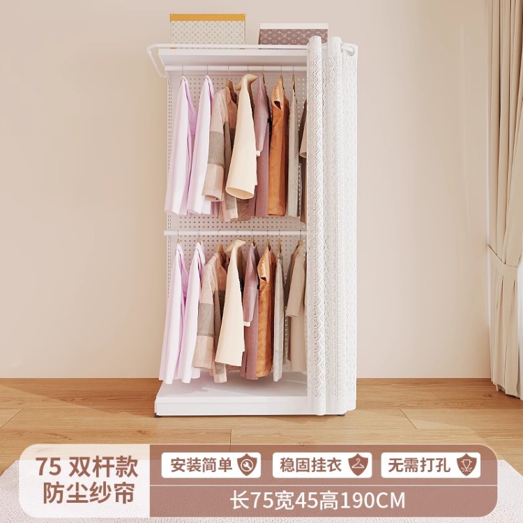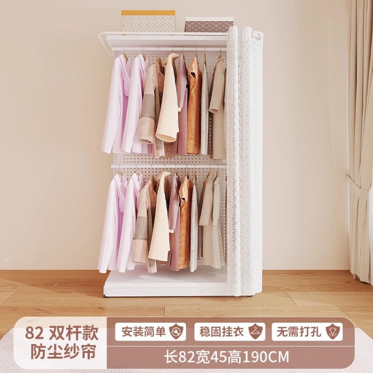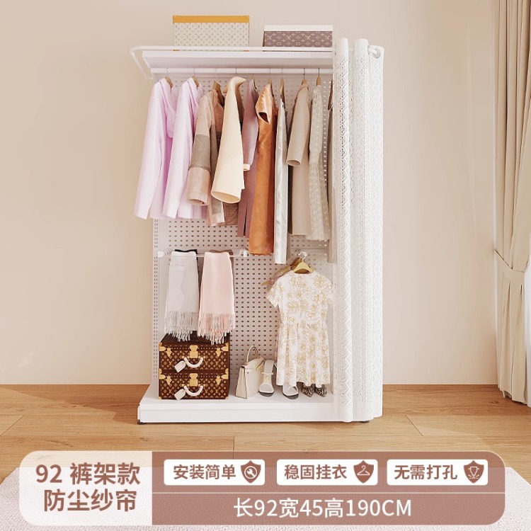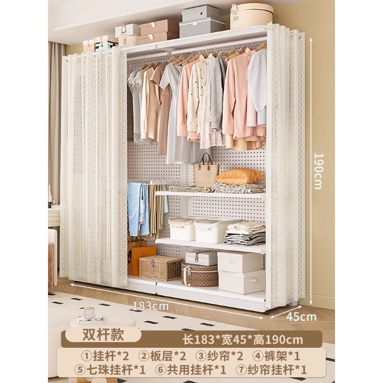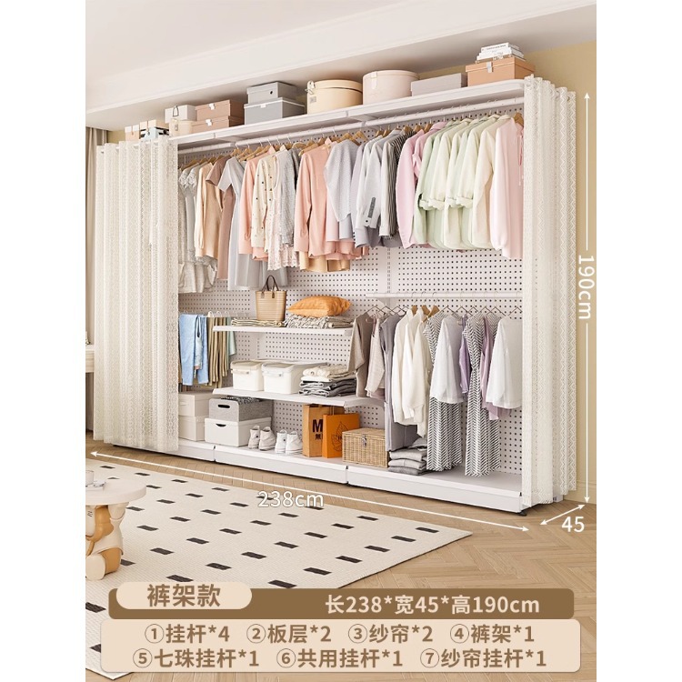 홀보드 옷장 금속 옷걸이 침실 워크인 오픈형 방진 커튼 옷장 조립식 선반 수납