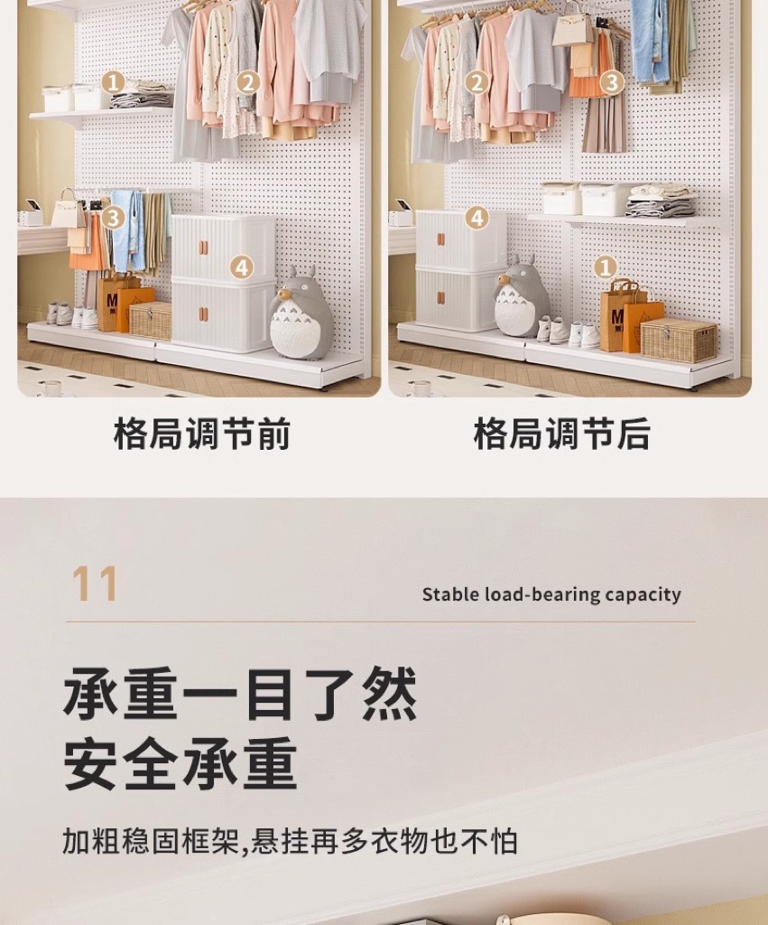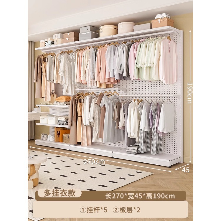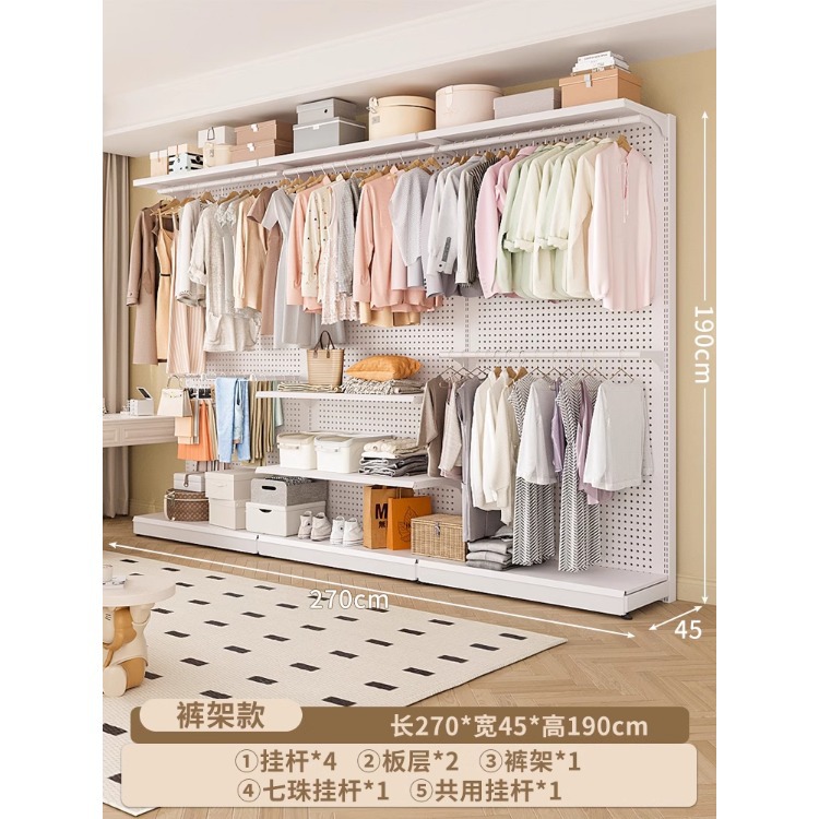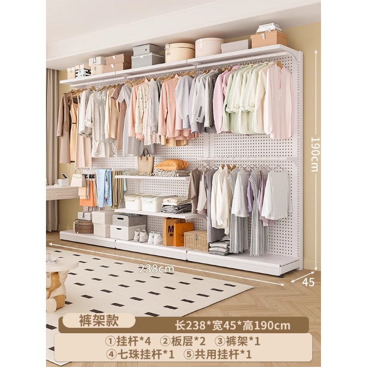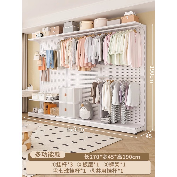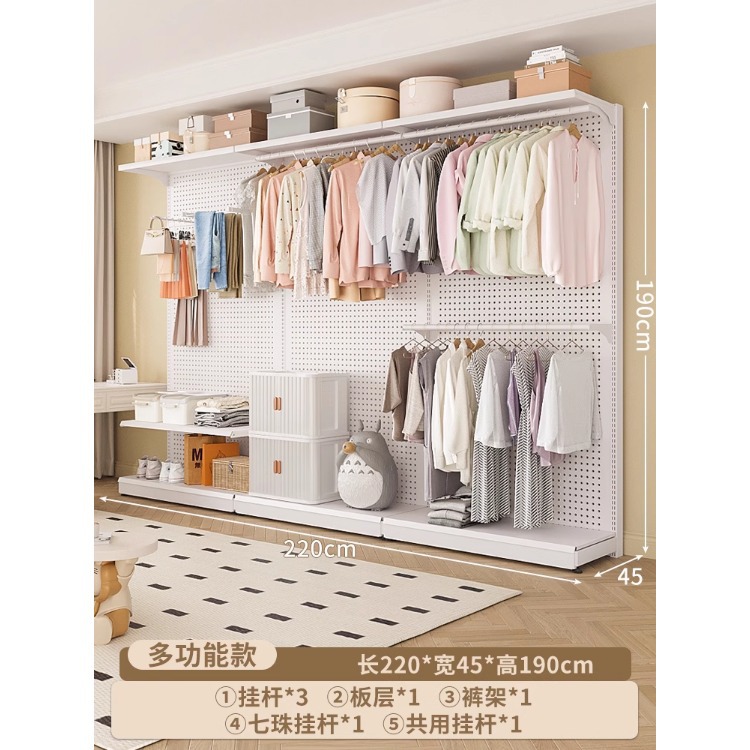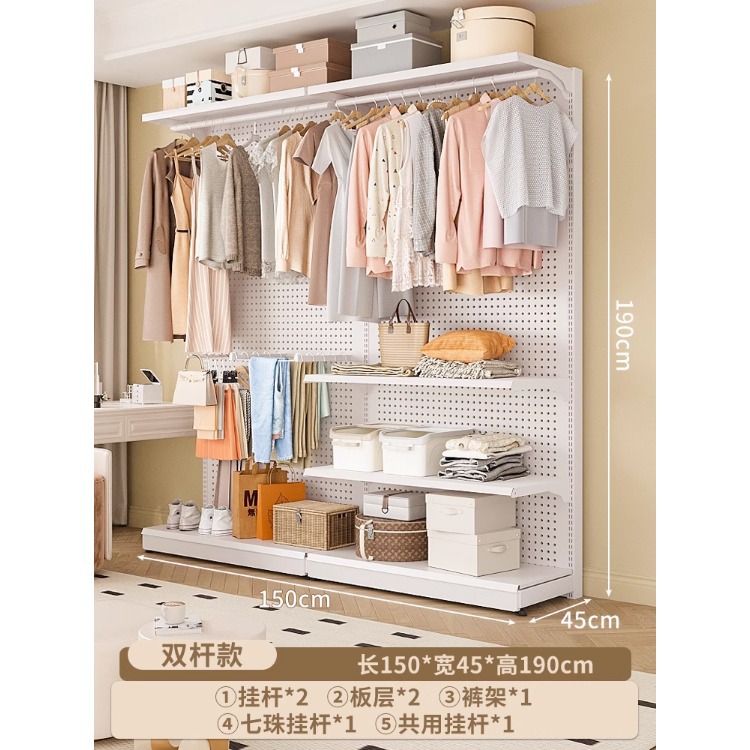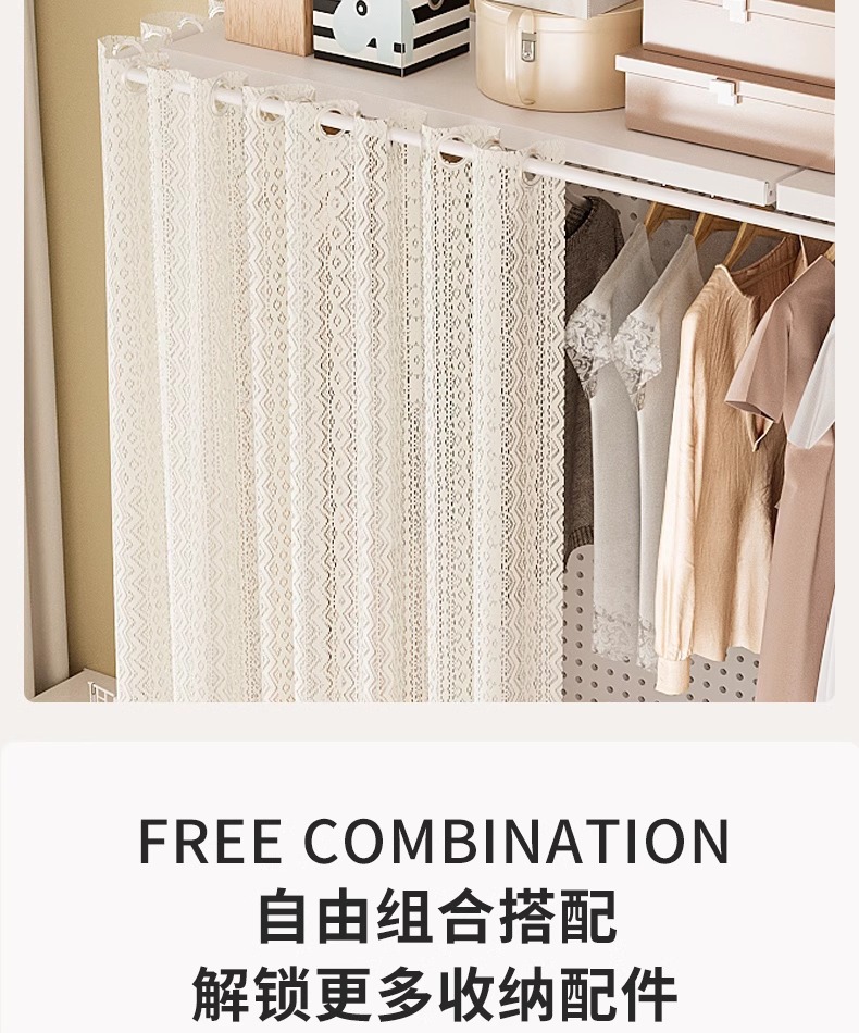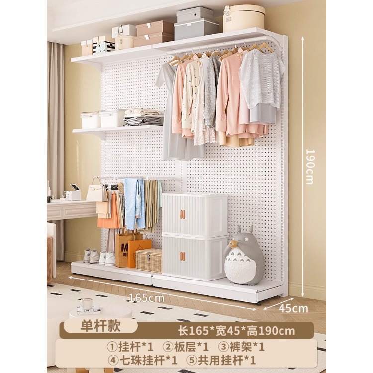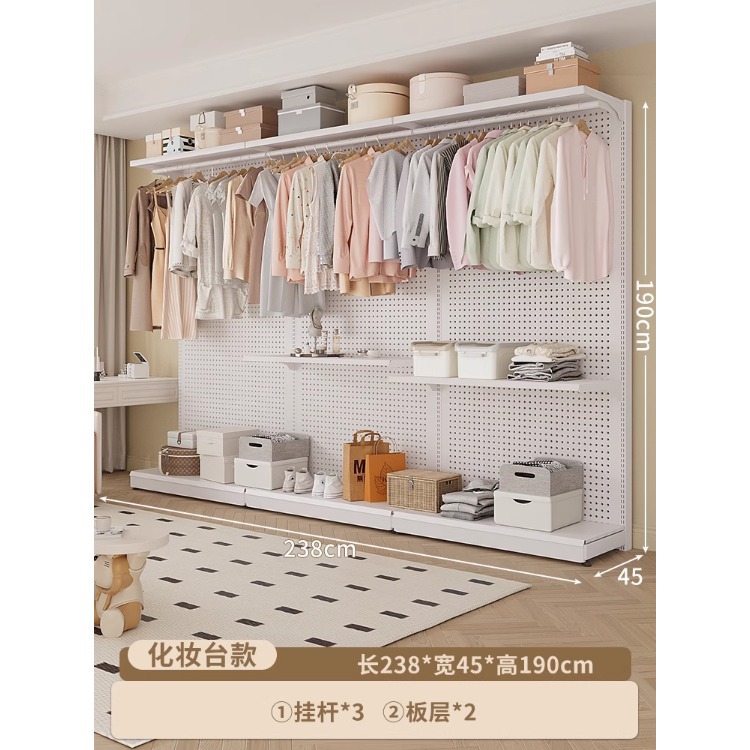 홀보드 옷장 금속 옷걸이 침실 워크인 오픈형 방진 커튼 옷장 조립식 선반 수납