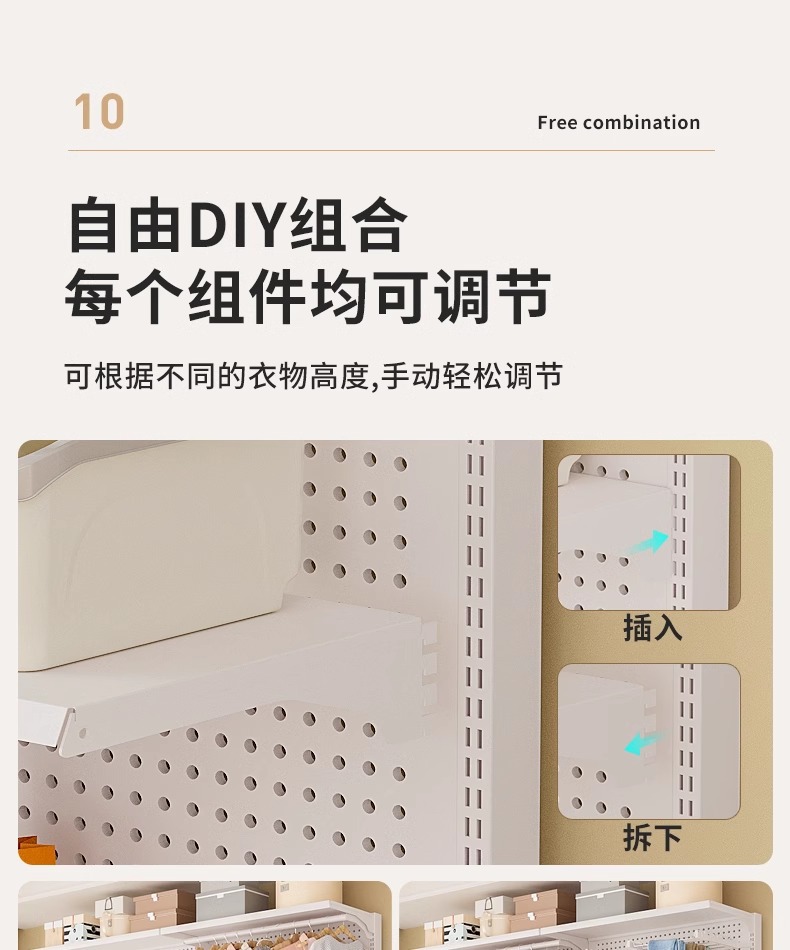 • [화이트 · 조절 가능한 레이아웃] 바지걸이 스타일 + 방진커튼 75*45*190