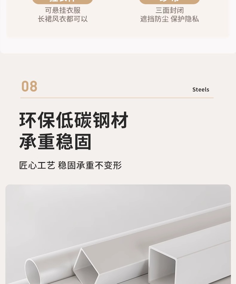 • [흰색 및 조절 가능한 레이아웃] 길이 270개 이상의 걸이 스타일 + 완전히 둘러싸인 방진 커튼