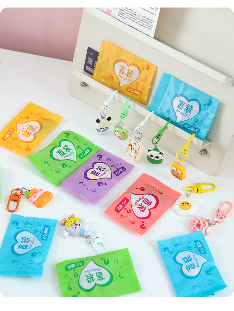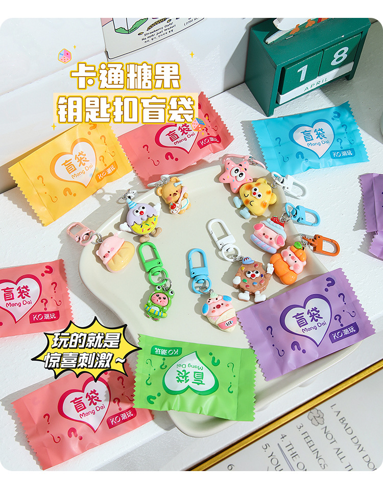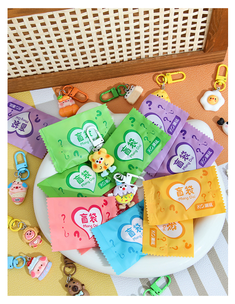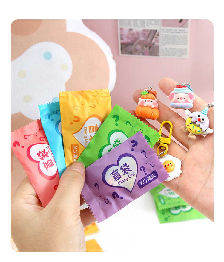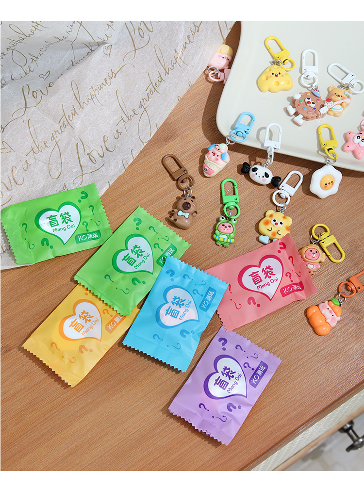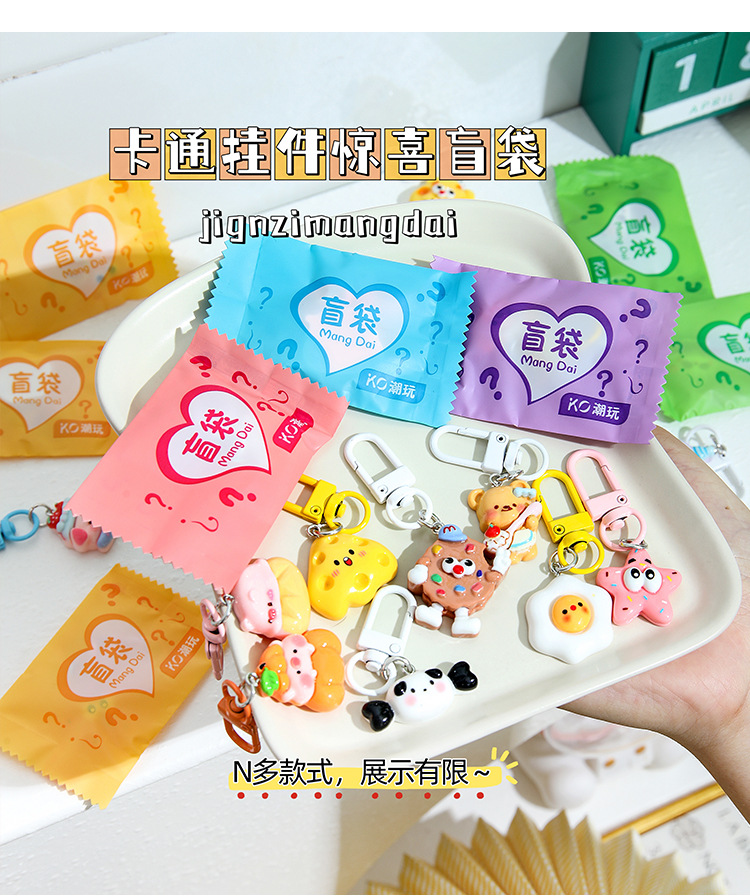 트렌디한 랜덤 키체인, 귀여운 만화 레진 펜던트, 어린이 선물, 학생 선물, 키체인 장식품 도매