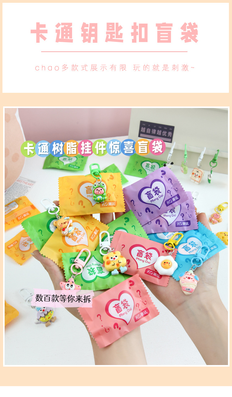 트렌디한 랜덤 키체인, 귀여운 만화 레진 펜던트, 어린이 선물, 학생 선물, 키체인 장식품 도매스토어 가기