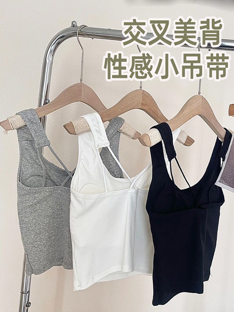 여름용 여성용 뷔스티에 탑, 가슴 패드 내장, 크로스백 디자인, 가슴을 감싸주는 이너웨어, 아우터로도 착용 가능