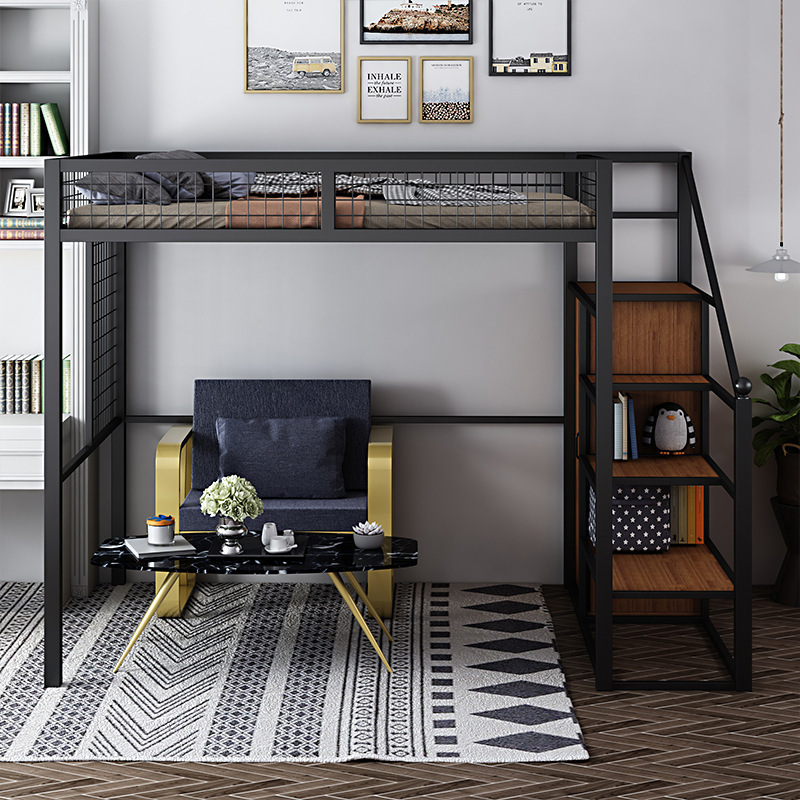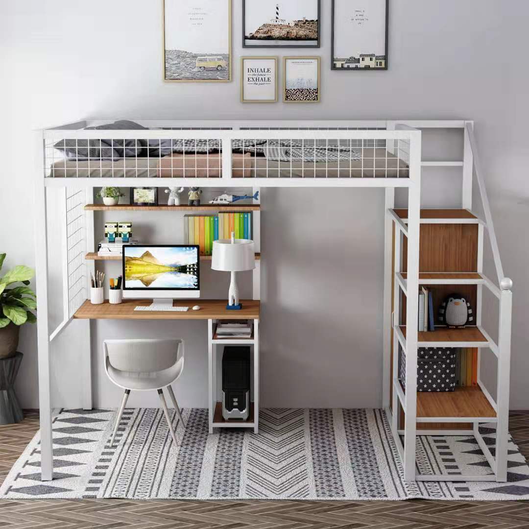 간단한 침실 아이언 로프트 침대 학생 기숙사 침대 낮은 테이블 침대 작은 아파트 로프트 침대 높고 낮은 침대