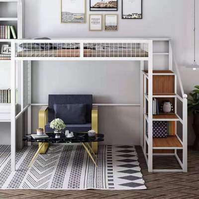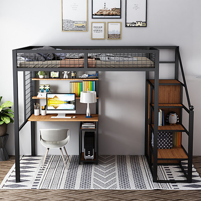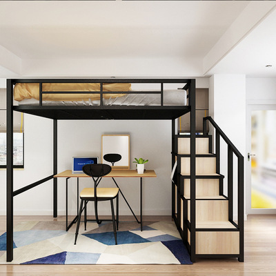 간단한 침실 아이언 로프트 침대 학생 기숙사 침대 낮은 테이블 침대 작은 아파트 로프트 침대 높고 낮은 침대스토어 가기