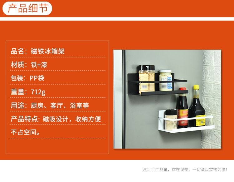 천공되지 않은 단일 층 자기 흡수 냉장고 저장 랙 자기 세탁기 사이드 랙 주방 용품 벽걸이 스토리지 랙