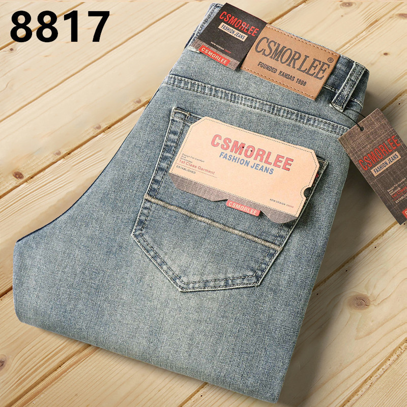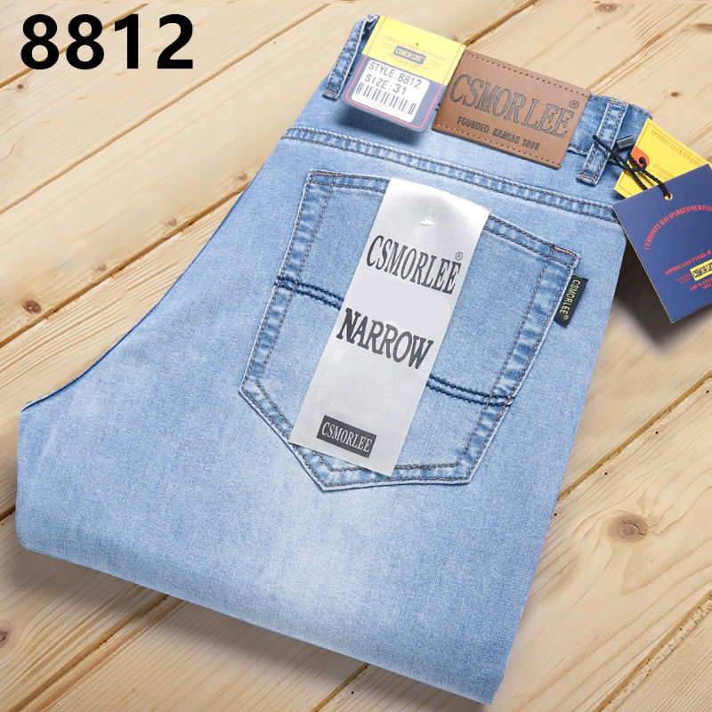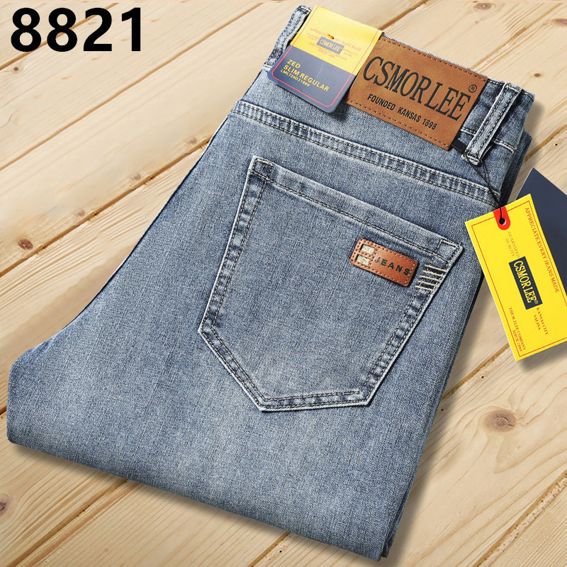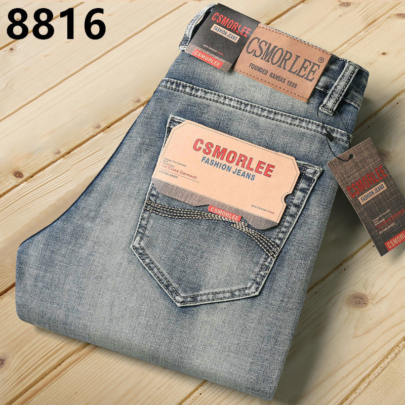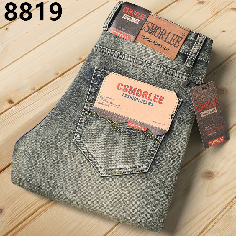 대외 무역 유럽 역 남성 자수 슬림 핏 스트레이트 청바지 아메리칸 레트로 라이트 라이트 럭셔리 헤비 품질 남성용 바지