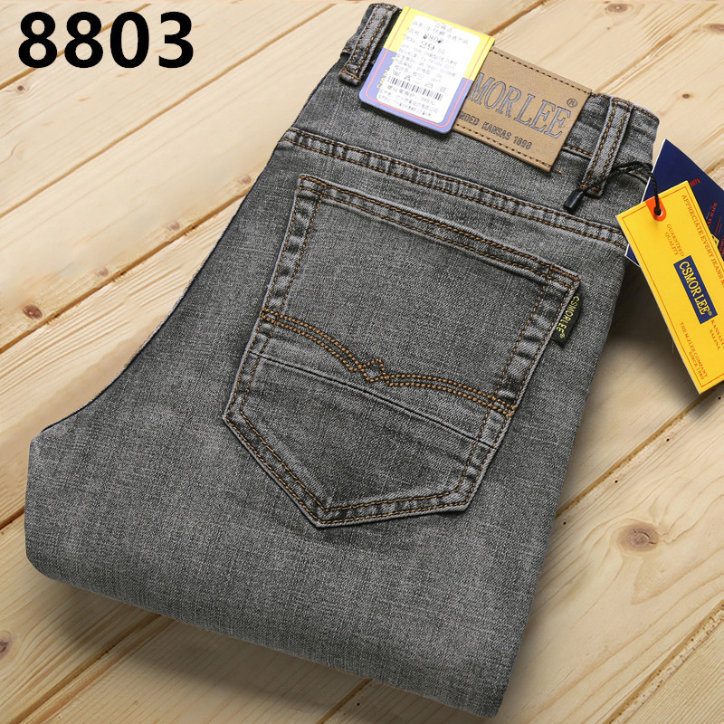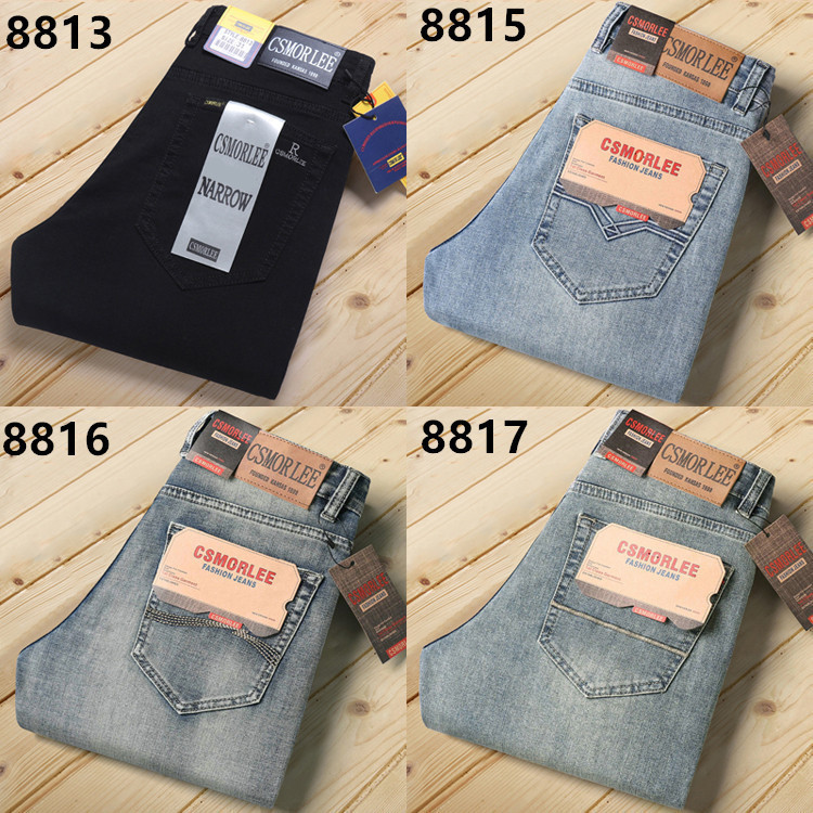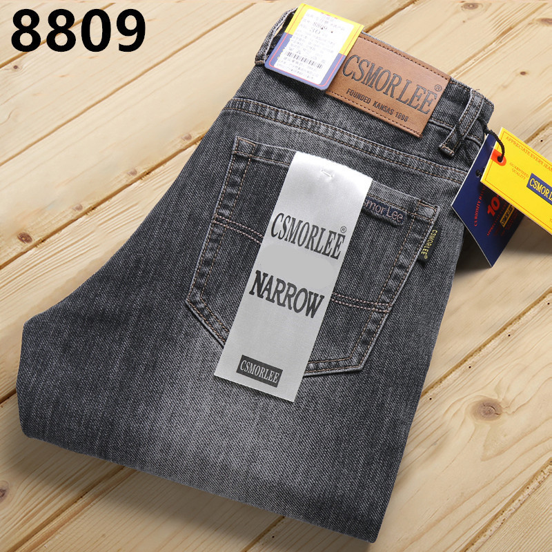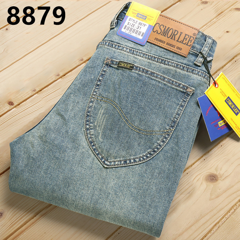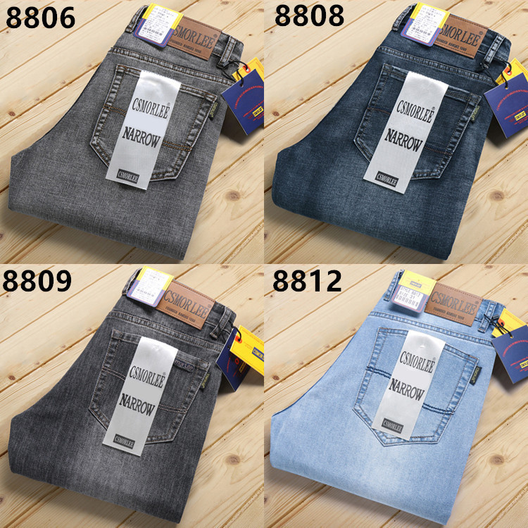 대외 무역 유럽 역 남성 자수 슬림 핏 스트레이트 청바지 아메리칸 레트로 라이트 라이트 럭셔리 헤비 품질 남성용 바지