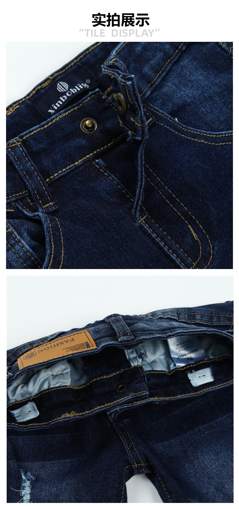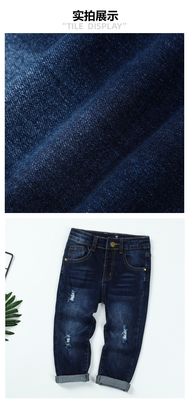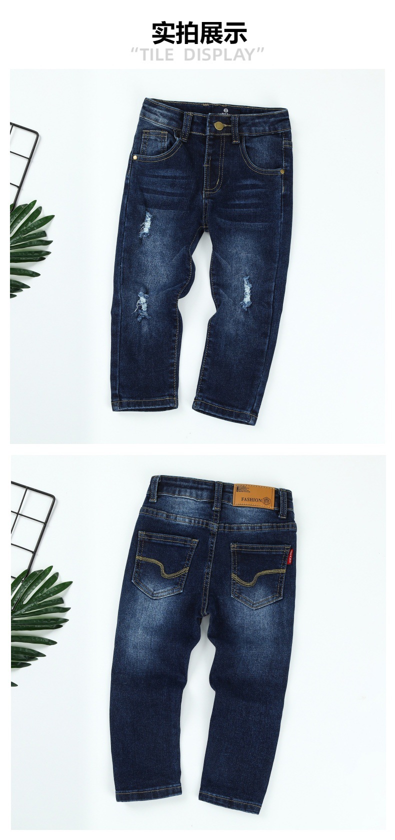 대외 무역 아동복 청바지 공장 도매 가죽 구멍 조수 브랜드 소년 바지 봄과 가을 어린이 씻은 데님 바지스토어 가기